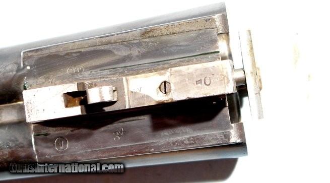 Description: ORIGINAL PARKER BROTHERS VH GRADE 28 GAUGE SHOTGUN CIRCA 1909. 26” Vulcan Steel barrels choked Improved Cylinder and Improved Cylinder. 2 ½” chambers. Double triggers and automatic safety. “O” frame gun serial numbered in the 152,xxx range for 1909 production. All matching serial numbers. All original as professionally and nicely re-finished overall with excellent high grade walnut re-stocked butt done in the factory original manner (14 ¼” pull. 1 ½”, 2 ½” drop). Original “Parker” logo hard rubber butt plate and “Parker” pistol grip cap. Original forend. Excellent overall with 99% plus and all the stock finish and very nice and crisp checkering. Perfect working order. Bores pitted but may clean better. Very scarce original Parker 28 gauge. Weighs 6 pounds, 4 ounces. SOLD Curio/Relic: Yes |