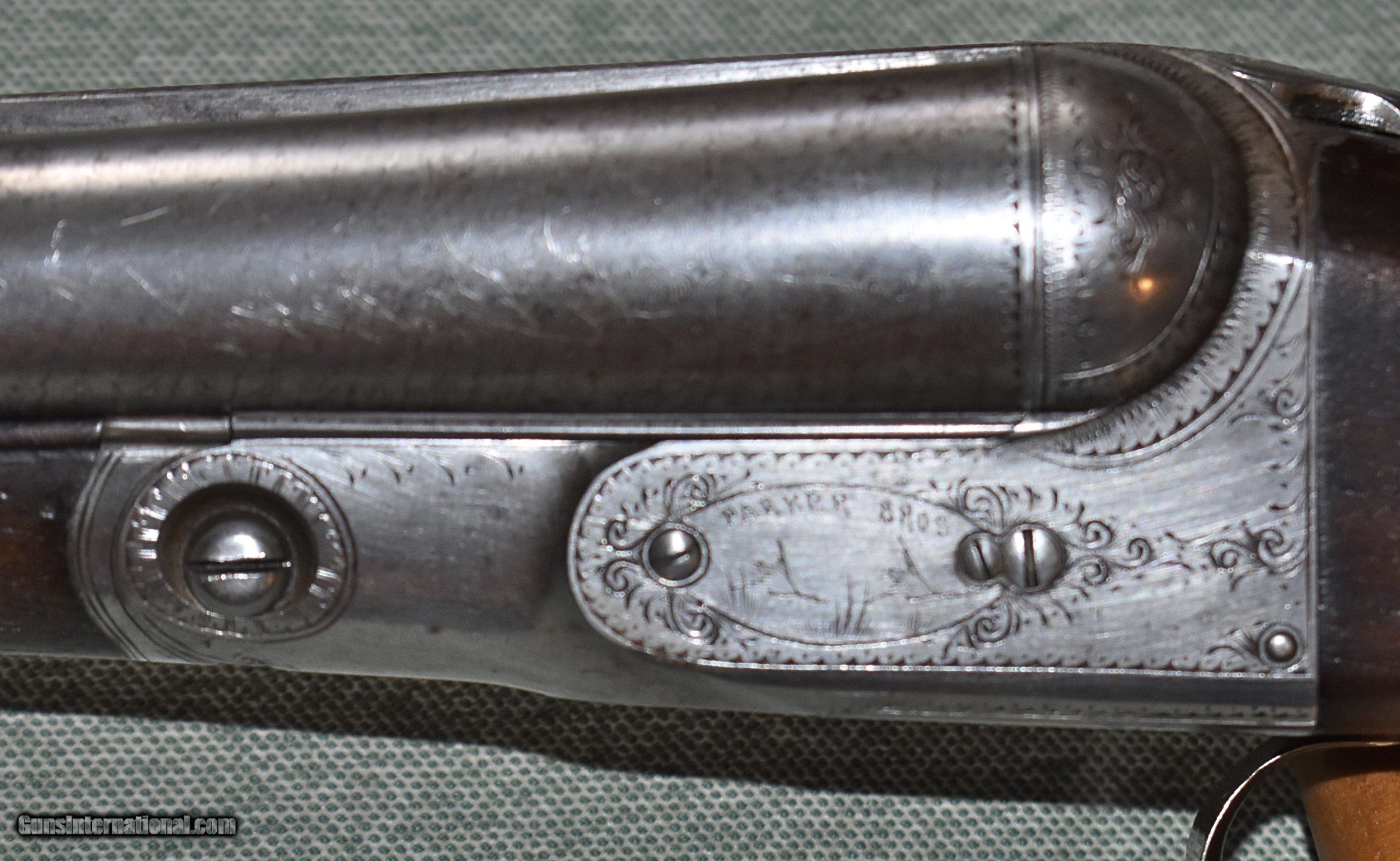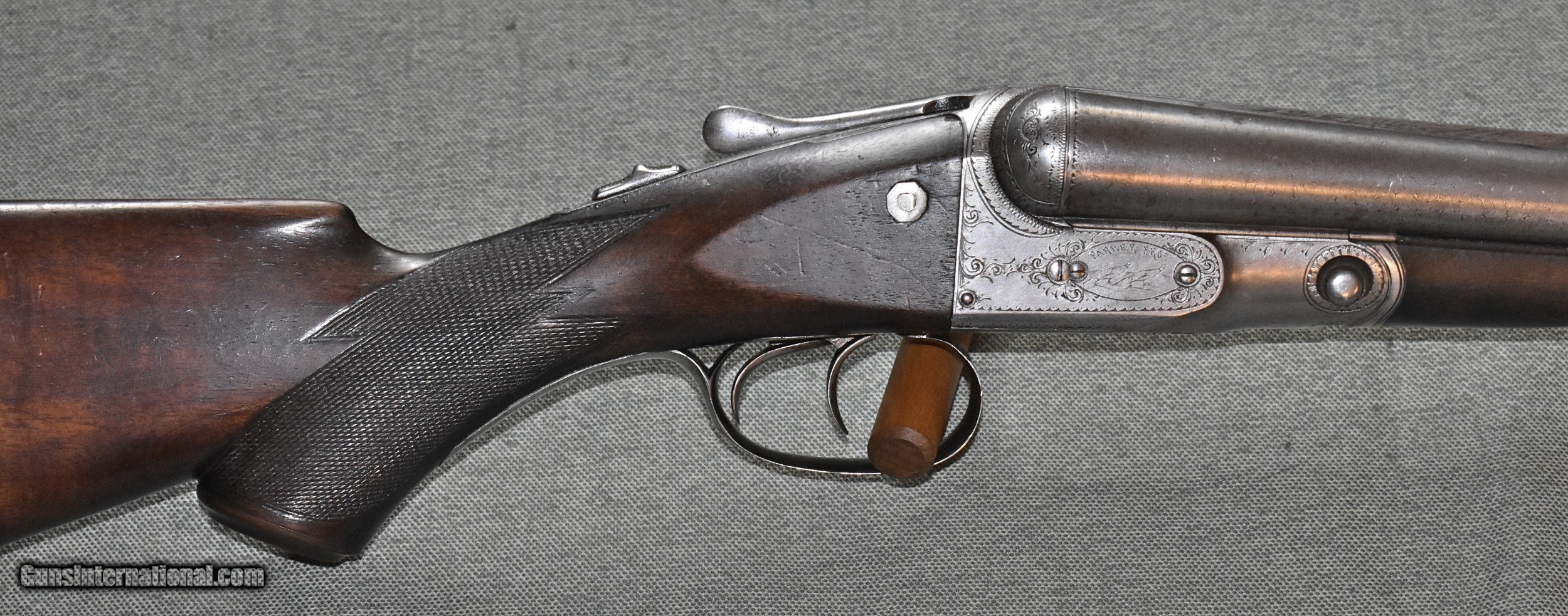 Description: Parker Bros. 12 gauge GH grade built in 1903. This gun has 30" damascus barrels choked full and full. The barrels have good bores with no dents or pits. The stock has been professionally repaired with a crossbolt through the side panels. The gun retains traces of case color in protected areas and 70% of the damascus pattern remains. The gun still retains the original dogs head buttplate. Built on a #2 frame. Very good wall thickness with a minimum of .028" at the muzzle. A very useable Parker with light loads. C&R eligible. " SOLD Curio/Relic: Yes Shotgun Gauge: 12 Gauge Manufacturer: Parker Bros. Model: GH Serial Number: 122973 Barrel Length: 30 Chambers: 25/8 Ejectors: ex Condition: Good Metal Condition: good Wood Condition: Good Bore Condition: Good Barrel Type: damascus steel Action: double barrel Triggers: double Butt Pad: Factory Dog's Head Buttplate Manufacture Date: 1903 Choke Left: full Choke Right: full Engraving: GH pattern Minimum Wall Thickness Left: .028 Minimum Wall Thickness Right: 028 |