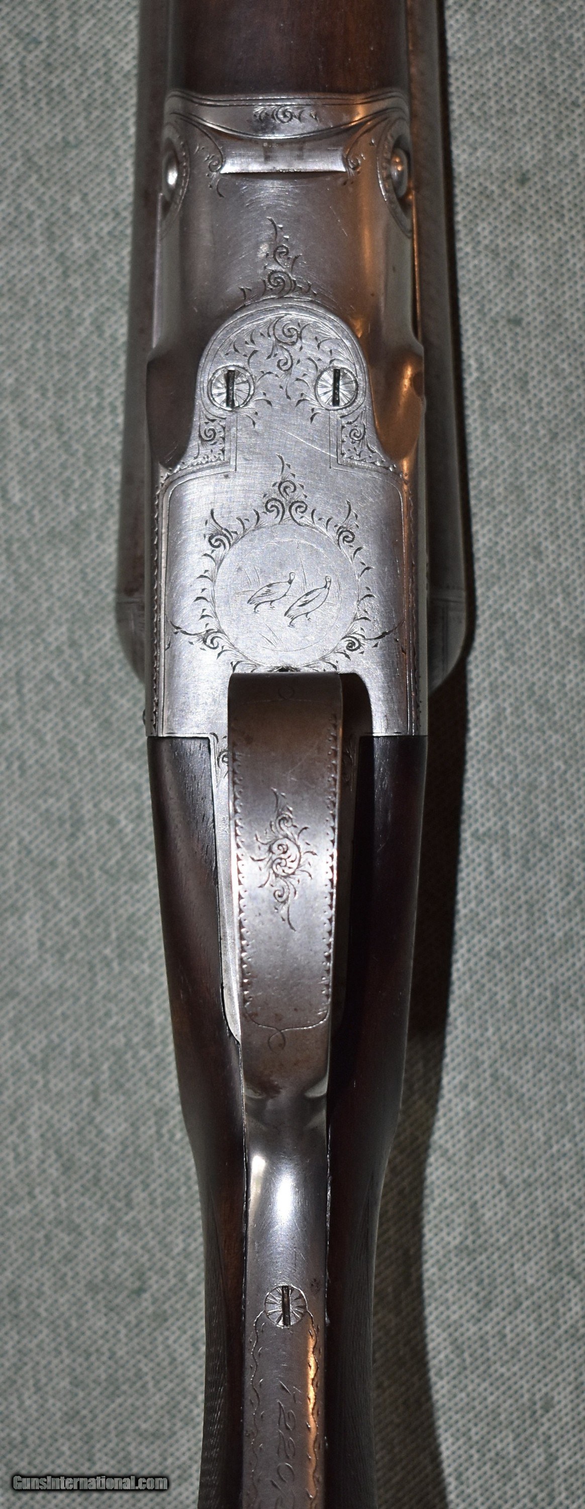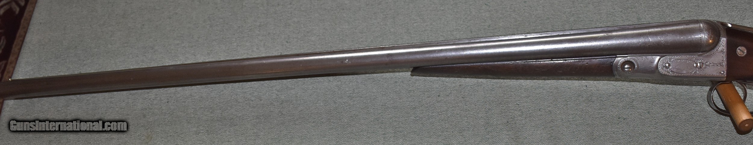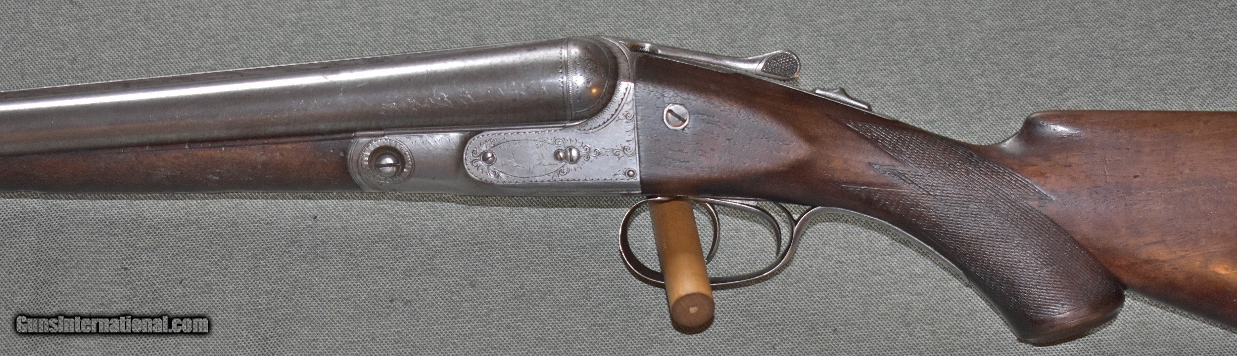 Description: Parker Bros. 12 gauge GH grade built in 1903. This gun has 30" damascus barrels with excellent bores and wall thickness. The barrels are choked full and full. The gun retains traces of the case color and 60% of the damascus finish. The barrels are on face. The stock has been professionally repaired. It retains the original dogs head buttplate. Built on a #2 frame. C&R eligible. SOLD Curio/Relic: Yes Shotgun Gauge: 12 Gauge Manufacturer: Parker Bros. Model: GH Serial Number: 122073 Barrel Length: 30 Chambers: 25/8 Ejectors: extractors Condition: very good Metal Condition: very good Wood Condition: very good Bore Condition: excellent Barrel Type: damascus steel Action: double barrel Triggers: double Butt Pad: Factory Dog's Head Buttplate Manufacture Date: 1903 Choke Left: full Choke Right: full |