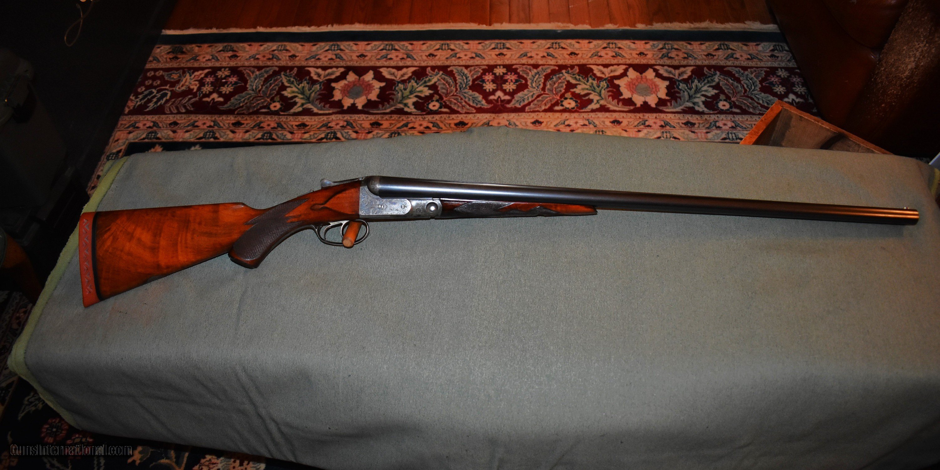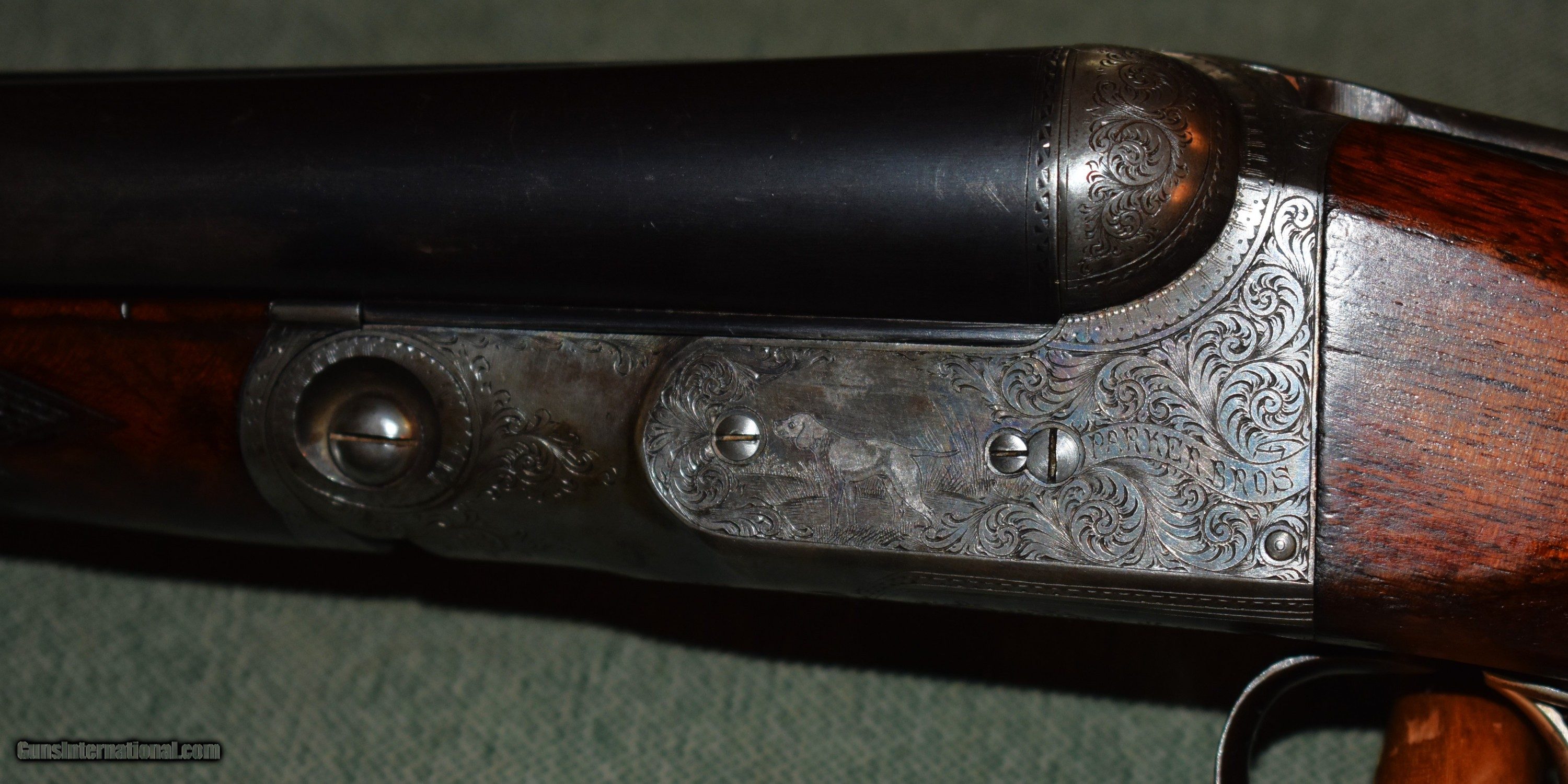 Description: Parker Bros 12 gauge DHE grade built in 1927. This gun is in excellent original condition retaining 60% of the original case colors and 98% of the original barrel blue. It has 28" Titanic steel barrels choked modified (>016") and full (.033"). the ejectors are strong and perfectly timed. The barrels are on face and lock up with no play. The engraving is truely outstanding and firer detailed than most other DHEs that I have seen. The gun is built on a 11/2 frame and weigh 6-14. The stock is sound with no cracks of damage and has a 133/4"LOP over a period correct Hawkins pad. Price includes shipping to your FFL. C&R eligible. SOLD Curio/Relic: Yes Shotgun Gauge: 12 Gauge Manufacturer: Parker Bros. Model: DHE Serial Number: 221368 Barrel Length: 28 Chambers: 23/4 Ejectors: Yes Condition: excellent Metal Condition: excellent Wood Condition: excellent Bore Condition: mint Barrel Type: Titanic Steel Action: Double Barrel Triggers: Double Butt Pad: Hawkins Pad Manufacture Date: 1927 Choke Left: Full (.033") Choke Right: modified (.016") Engraving: DHE |