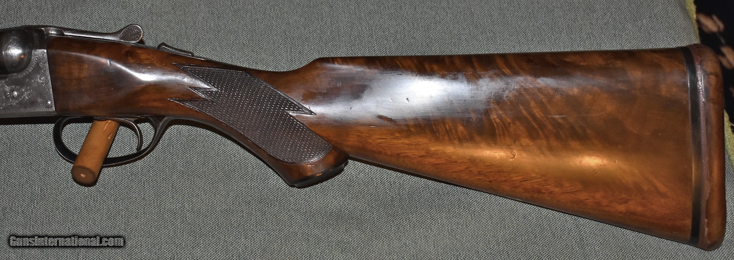 Description: Parker Bros. 12 gauge GHE grade built in 1935. This gun is in excellent original condition. It retains 60% of the original case colors,95% of the original barrel blue,and 98% of the original wood finish. It has 30" Parker Special Steel barrels choked full and full. The chambers are 23/4". The gun is built on a 11/2 frame and weighs 7-4. The stock dimensions are 141/2" LOP over a leather covered pad, 15/8" at comb,and 212" at heel. The gun has a Parker selective single trigger and ejectors. the engraving is sharp and crisp and the screws are timed and clean. A great Parker that would make a great trap,pheasant, or turkey gun or a nice addition to any collection. C&R eligible. SOLD Curio/Relic: Yes Shotgun Gauge: 12 Gauge Manufacturer: Parker Bros. Model: GHE Serial Number: 239995 Barrel Length: 30 Chambers: 23/4 Ejectors: yes Condition: excellent Metal Condition: excellent Wood Condition: excellent Bore Condition: mint Barrel Type: Parker Special Steel Action: double barrel Triggers: single selective Butt Pad: leather covered pad Weight: 7-4 Manufacture Date: 1935 Choke Left: full Choke Right: full |