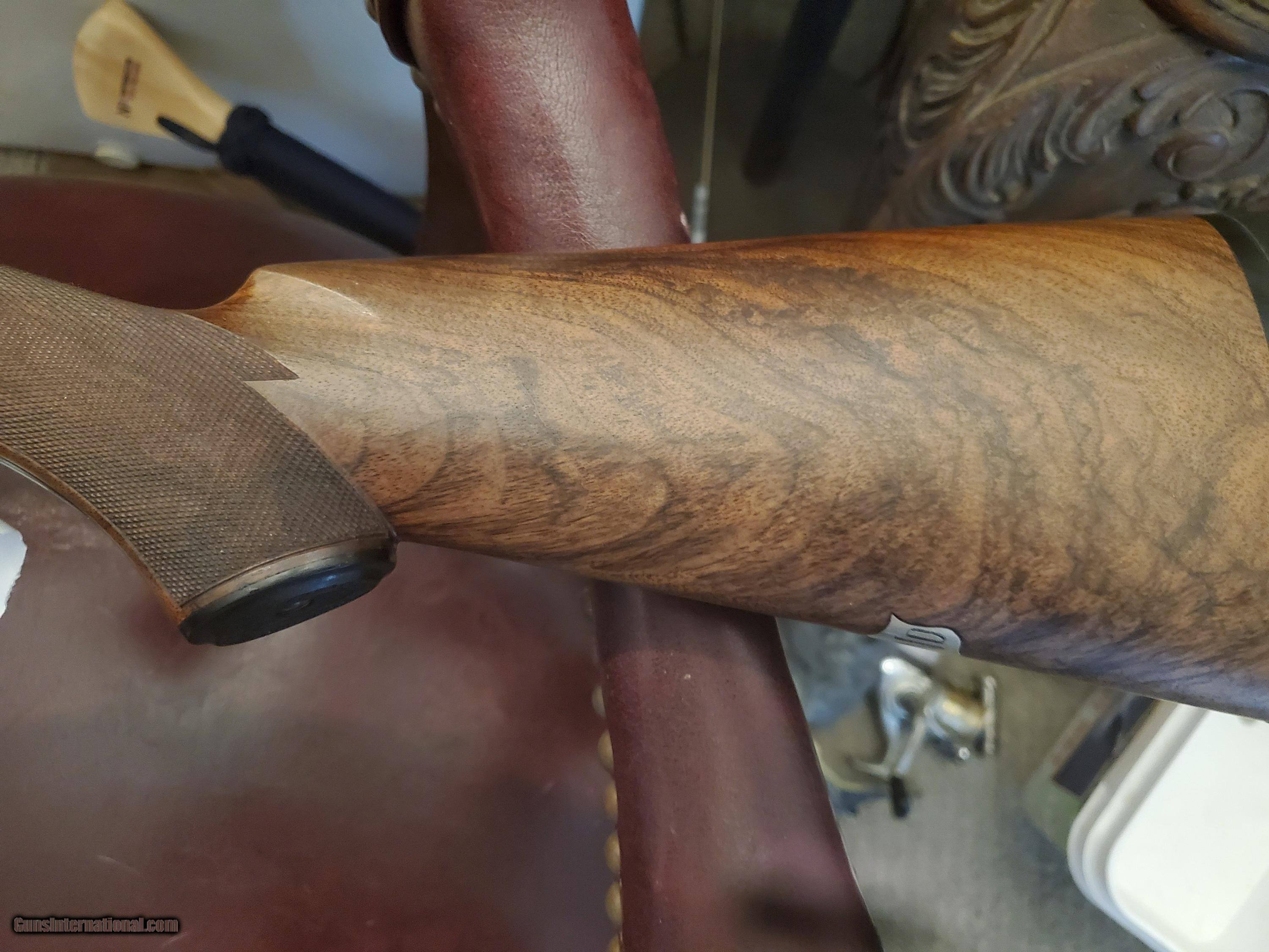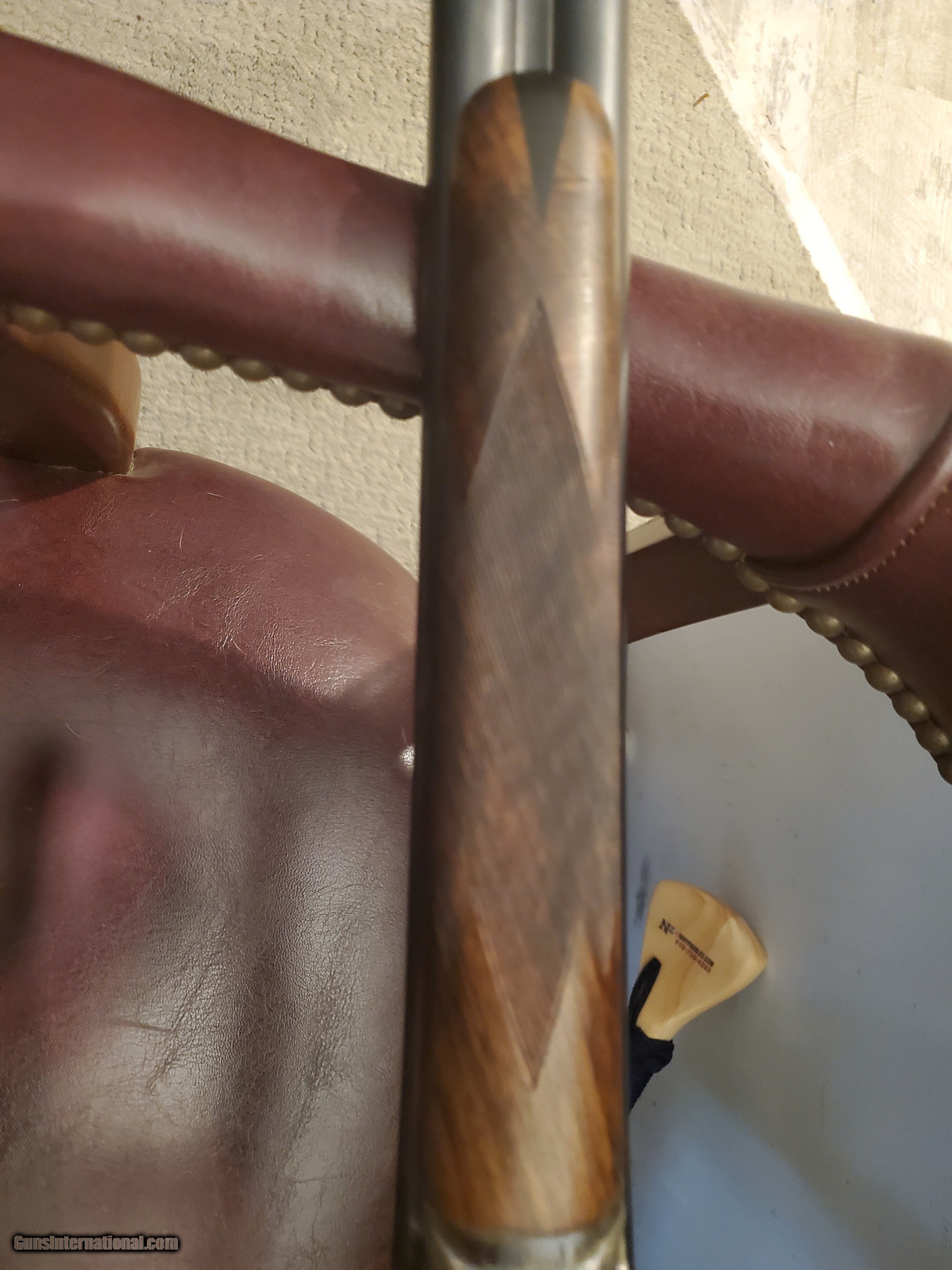 Description: The following taken from ad when I bought the gun 3 yrs ago or so... This is one of the best executed upgrades I have ever seen and with a somewhat unlikely candidate – a Parker Trojan 16 from the early years of its production. The case coloring and barrel bluing were professionally well done. The outstanding engraving was done by the late Jack Jones of Forest, VA. The result is a handsome and nice handling bird gun in 16 gauge with quick-on-the-target 26” barrels. Great for fast moving gamebirds like grouse, quail and woodcock. This Parker, number 169152, was manufactured in 1915 on the Number 1 frame. Auto safety and double triggers. Weighs just 6lb 6oz. Handsome and lethal this Parker is ready to do what it was designed to do --- scratching down gamebirds in America’s beautiful uplands. *** The quick handling 26” barrels are chambered for 2-3/4” shotshells and have extractors. The rib is inscribed “Parker Brothers. Makers. Meriden, Conn Trojan Steel”. The right barrel is bored 0.662 and has a constriction of 0.003 for Skeet choke. The left barrel is also bored 0.662 and has a constriction of 0.018 for Modified choke. *** The pistol grip stock and splinter forearm were restocked by Ferlach trained master gunmaker Gunter Pfrommer of Rocky Mount, VA in highly figured American walnut with a matte finish. The checkering is crisp. The forearm sports an ebony wedge. The pistol grip has its original factory pistol grip cap. Stock dimensions are 14-1/8” including a 3/4” recoil pad by 1-5/8” by 2”. Cast off for the righthanded shooter. *** I am an FFL and will need a signed copy of your dealer’s FFL license. The photographs are part of the description. Not for sale where prohibited by state or local laws. Buyer is responsible for all shipping, insurance, and any other related charges. I give a 3-day non-firing inspection period and will only accept returns at buyer’s expense. $5200 plus shippin US 48 no Calif Shotgun Gauge: 16 Gauge Price: $5,200.00 Buy Now Contact Seller |