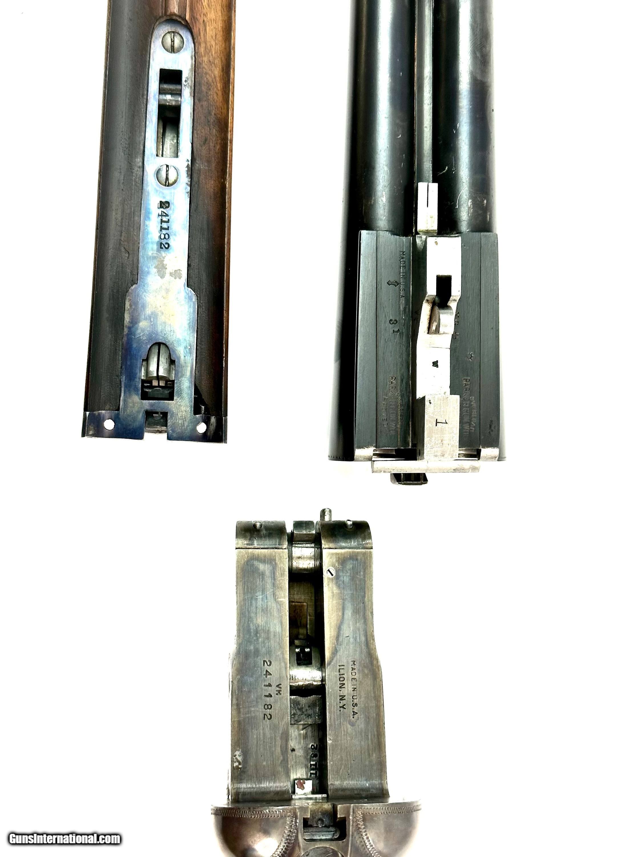 Description: This is a very nice Parker in VH grade chambered in 16 Ga barrel is marked for 2-3/4" shells. The stock is a beautufull piece of wood unfortunately it looks like some gun cleaner or solvent has crinkle the finish and made it soft at some point in the past. This did not affect the wood in any way just the finish. The case coloring is vibrant and approximately 90% still intact with most all the noticeable wear on the underside. The bluing is 95-98 % coverage. There is some freckling on the trigger guard but the barrels are excellent. The screws are indexed properly and all are sharp and havent been rounded over by improper screwdriver use. Has auto ejectors. Mirror like bore. Very nice parker overall that could be excellent with a proper wood refinishing. Maine residents add 5.5% sales tax Shipping is a flat fee of $45.00 If you would like insurance added it will be at an additional cost. Alaska or Hawaii will have an extra fee Price reflecs a cash discount of 3.5% SOLD Shotgun Gauge: 16 Gauge Manufacturer: Parker Model: VH Grade Serial Number: 241182 Barrel Length: 26 Chambers: 2-3/4 Ejectors: Yes Condition: Very |Good Metal Condition: Very Good-Excellent Wood Condition: Good- Very Good. Has a finish issue Bore Condition: Excellent Action: Break Open Triggers: Double Stock Drop: 2-1/2 Stock Comb: 1-1/2 Butt Pad: 5-1/8 LOP: 13-3/4" from front trigger Finish: Blued / Case Colored Engraving: Yes Extras: Ejectors, Engraving Item Location: Buxton Maine |