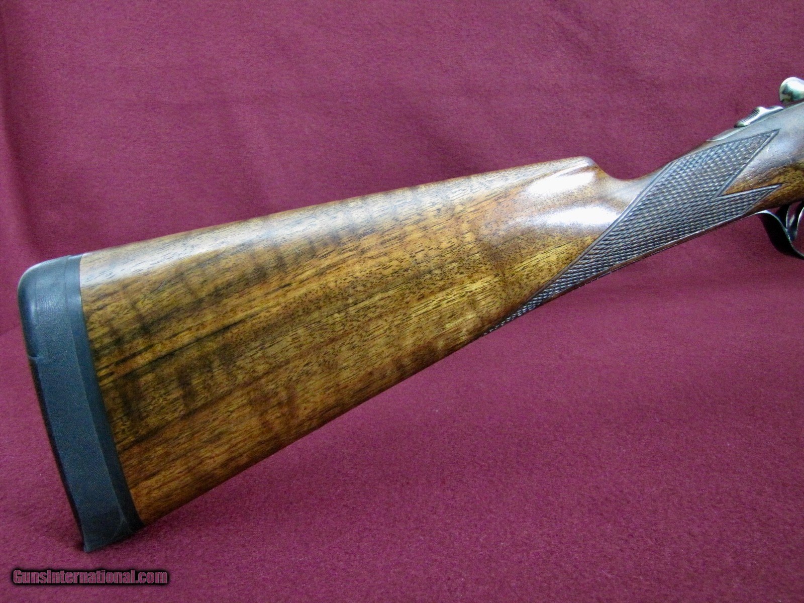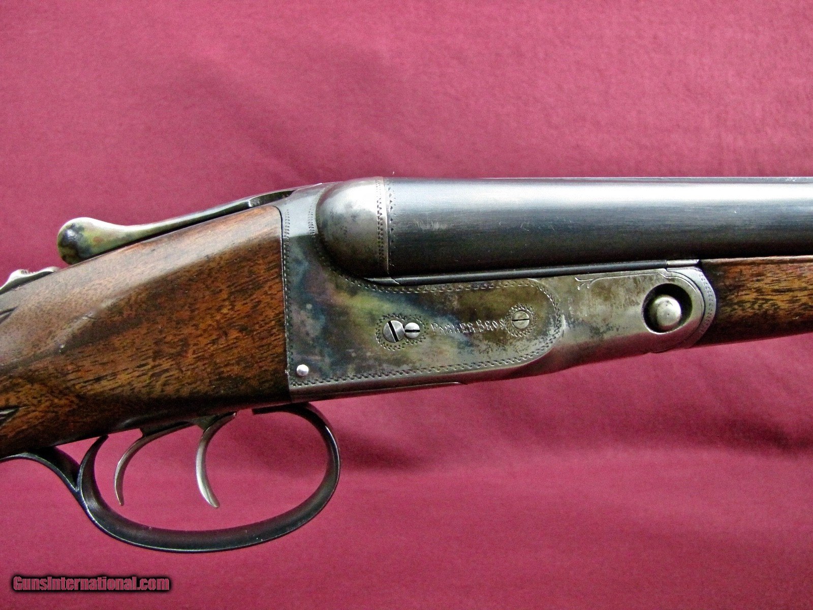 Description: I have for sale a nice Parker built in 1908. This gun is a "O" frame 16 gauge with 28 inch barrels. The gun was originally a capped pistol grip gun but was sent to Brad Bachelder before his passing and converted to a straight, English grip gun. At that time the gun was completely gone over by Brad and anything that needed to be done was done. Gun has all matching numbers, correct long trigger guard, and nice case coloring. Top lever is dead center and gun is very tight on face with or without the forend attached. Stock dimensions are 1 1/2 X 2 3/4 X 14 3/16 over a black one inch pad. Cast of stock is neutral. Bores in both barrels measure .668 with .003 constriction in right barrel (skeet) and .005 in the left (loose IC). Chambers are 2 3/4 inches. Weight of the gun is 6 pounds 1 ounce. Serial number is 149000 and it is listed in the Serialization book as 28 inch barrels with capped pistol grip. Condition of the gun is very nice with good barrel bluing and good case coloring. Screws are very nice, wood is also solid and nicely done. If you would like to bird hunt with a vintage gun this may be just the ticket for you. Price of the gun is $3000 plus $50 shipping to your FFL. As always there is a three day non-firing inspection period with the buyer paying shipping charges if returned. Contact me at with any questions. SOLD Shotgun Gauge: 16 Gauge Manufacturer: Parker Model: VHE 0 Frame Barrel Length: 28 Chambers: 2 3/4 Ejectors: Selective Well Timed Condition: Very Good Triggers: Double Stock: Straight English Stock Comb: 1 1/2 Stock Heel: 2 3/4 Stock Cast: Neutral - no castl Fore End: Splinter LOP: 14 3/16 Weight: 6 pounds 1 ounce Manufacture Date: 1908 Choke Left: .005 Improved Cylinder Choke Right: .003 Skeet |