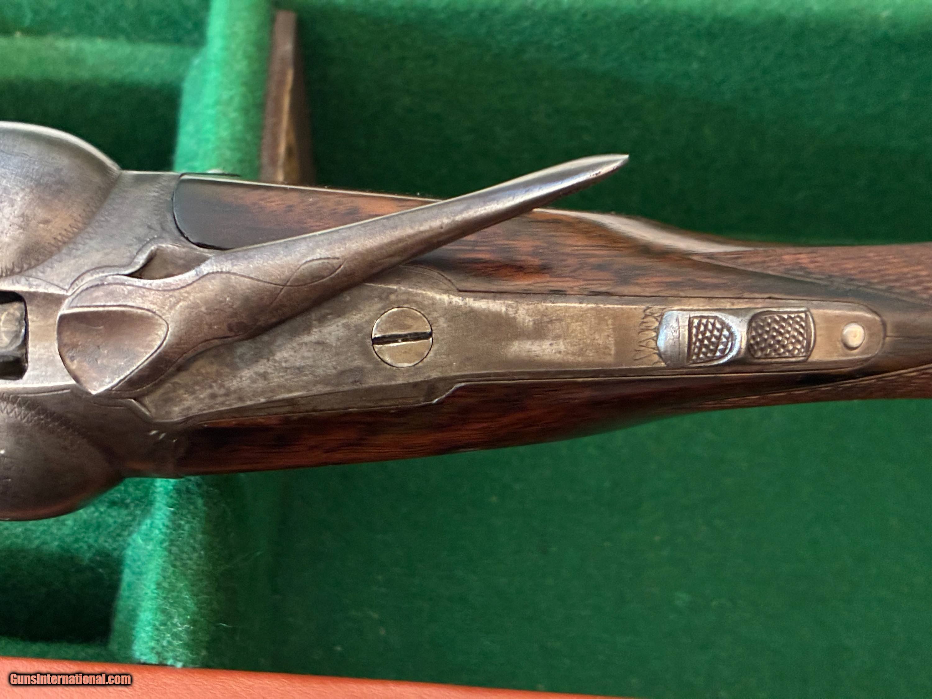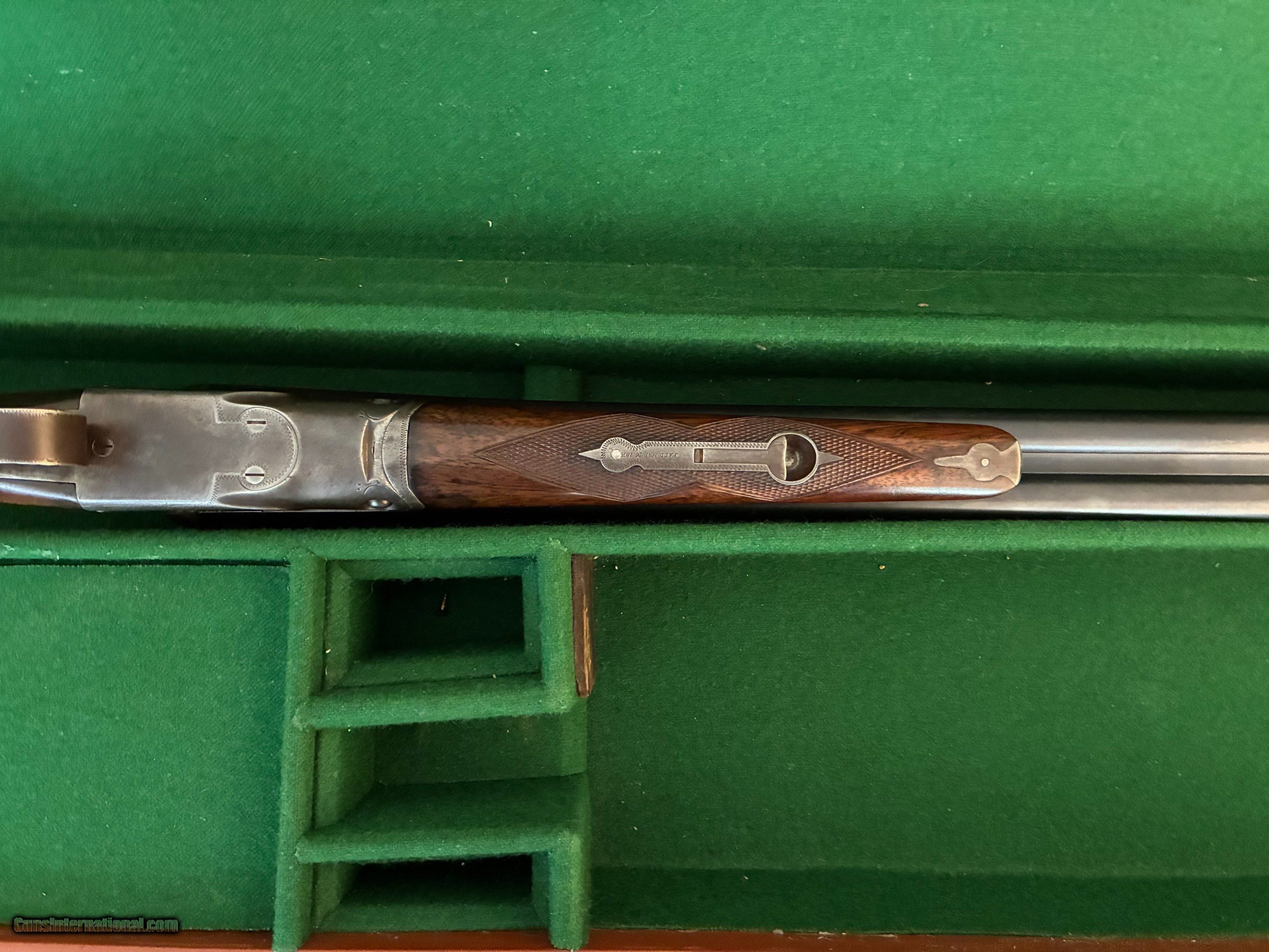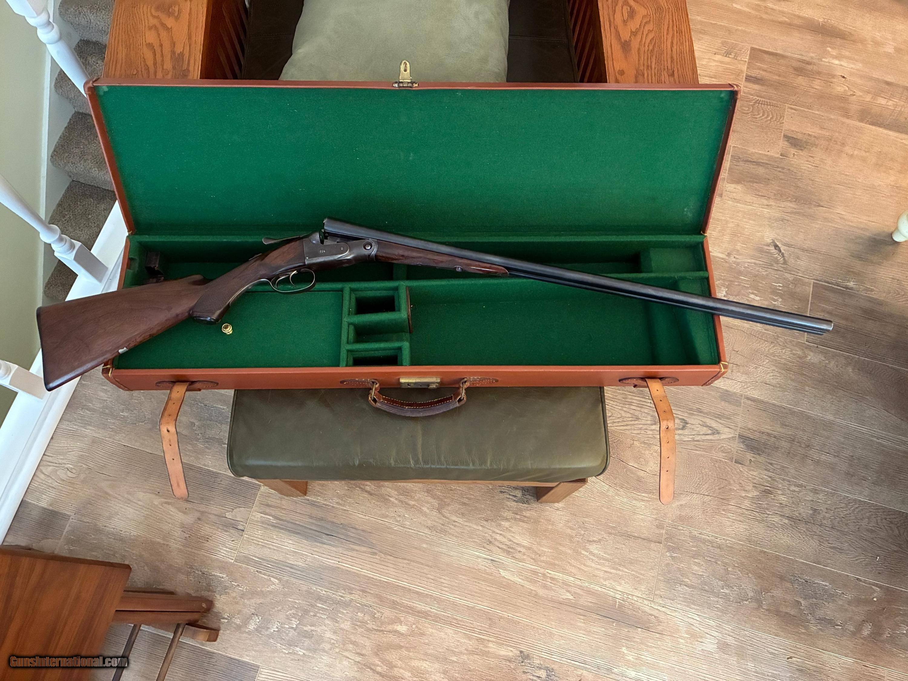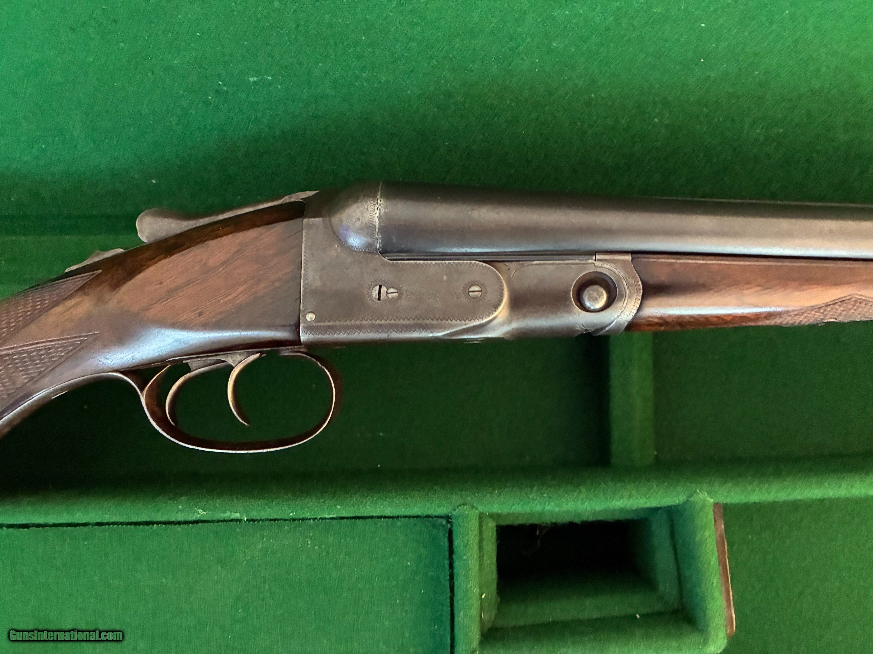 Description: I am offering for sale a nice Parker original VH grade 20 gauge with 30" barells. The gun appears to be all original with no stock modifications. I understand that 30" barells in 20 gauge are somewhat rare. The wood is nice and has no cracks. Included is a nice period correct leather hard gun case, pictured in the add that is in very good condition and needs no repairs. The gun swings nice and smooth with the long barells.The trigger pulls are smooth and crisp. This gun must be shipped to your FFL unless we meet face to face for a sale with proper ID. I am betwee Cookville and Rockwood in East Central TN about 50 miles south of the Kentucky border. Feel free to contact me with questions and I will respond through GI. I am not a dealer and this gun is from my personel inventory and not listed otherwise. This is a nice clean original Parker and would make a great hunting or sporting clays gun. It is tight on face and is solid in every way. Don't think too long as not many 20 gauge 30" Parkers are available in original condition. SOLD Shotgun Gauge: 20 Gauge Manufacturer: Parker Model: VH Serial Number: 128110 Chambers: 2 5/8 Ejectors: no Condition: Very Good Metal Condition: very Good Wood Condition: Very Good Bore Condition: Very Good Barrels: Blue steel Action: SxS Triggers: Double Stock: Pistol Grip Stock Comb: 1 3/4 Stock Heel: 2 7/8 Fore End: Splinter Butt Pad: Original Dog's Head Parker LOP: 13 3/4 Rib: Concave Finish: Blue Weight: 6.4lbs. Sights: Single Front Bead Chokes: Fixed Choke Left: Full .025 Choke Right: Modified .015 Engraving: Standard Case: Period All Leather Item Location: Tennessee Proof:Nitro: Yes |