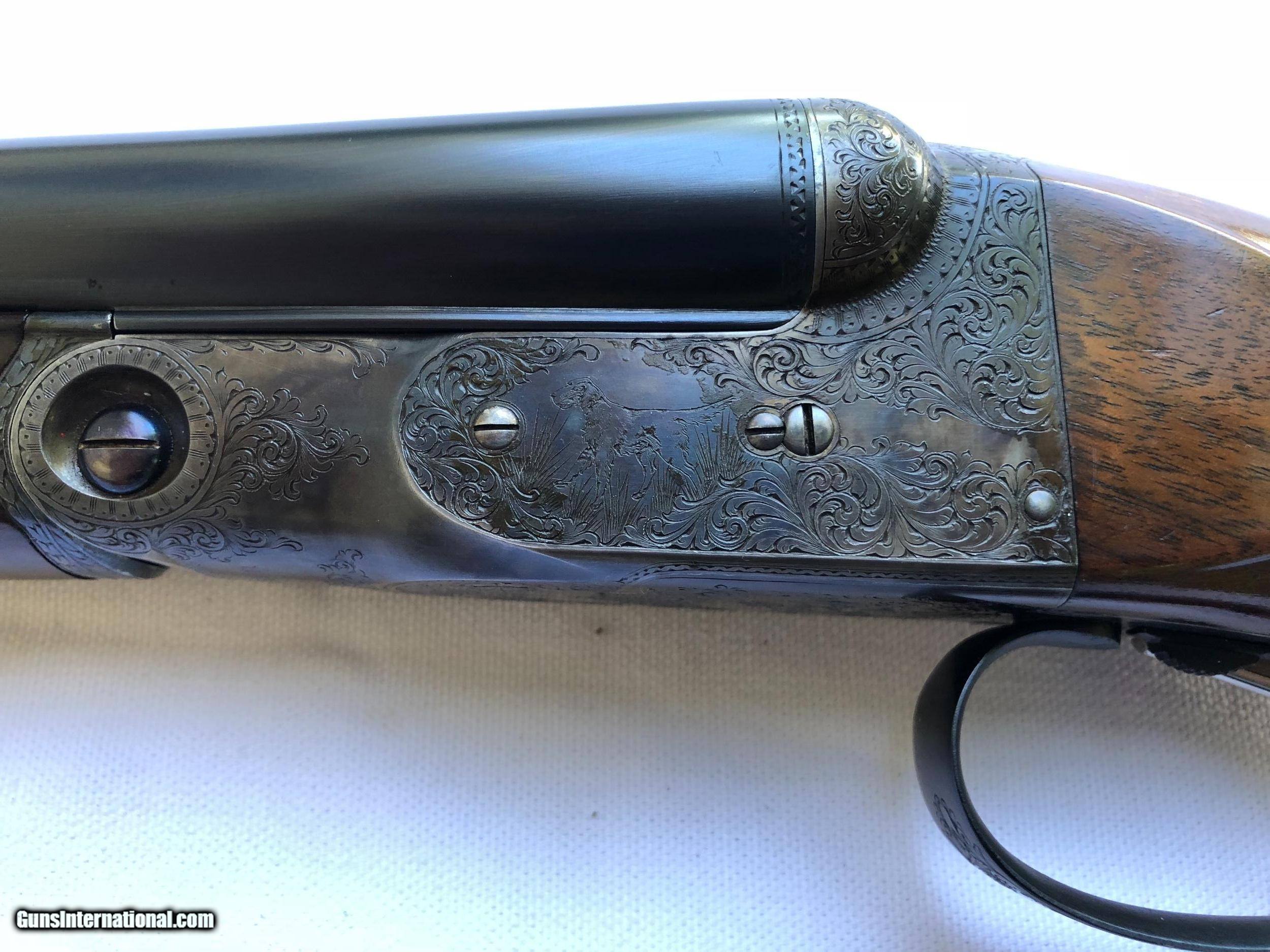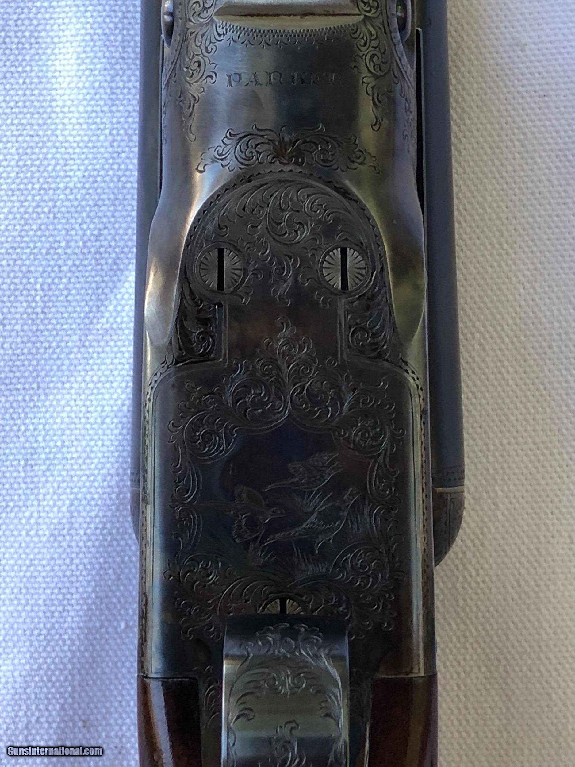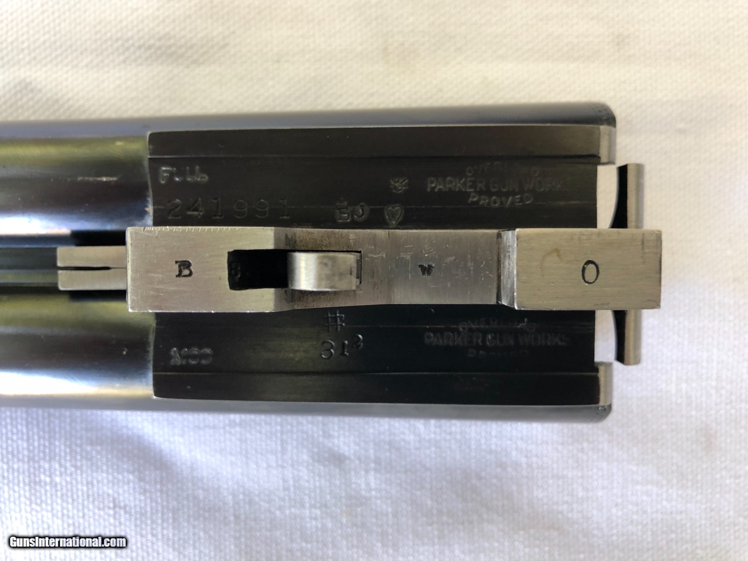 Description: Parker DHE 20ga Single Selective Trigger DHE 20ga 28” Barrels Ejectors Trigger: Single Selective Trigger Weight: 6.85 Pounds Length of Pull: 13 7/8” Drop at Comb: 1 ½” Drop at Heel: 2 1/8” Chokes: Right: Modified Left: Full Late Remington Parker 20ga 0 Frame. Shotgun is in high overall original condition. There are minor safe marks on the gun stock. The wood is typical grain for Parkers of this era. The shotgun shows little to no field use. Barrels are high original condition with no dents or dings. They ring true and show no signs of corrosion. The ejectors are in time and function properly. The action shows minimal use and has high original case color. All screws are in time, untouched and show case color. The trigger guard has high original bluing with no scratches or scrapes. Single selective trigger works properly. Skeleton steel butt plate is in high condition and shows minimal use with original bluing. There are minimal scrapes on the metal of the butt plate. If you are looking for a high original condition Parker of any era, this is the shotgun you’ve been waiting for. We are a licensed FFL. If you live within Missouri, we must charge sales tax. We offer a Seven day no hassle return. This gun cannot be fired during that time period. If there are any signs of abuse, improper handling, tear down, or improper packaging for return, refund will be declined. Buyer pays return shipping. Buyer pays actual shipping and insurance cost and are quoted at time of sale. SOLD Manufacturer: Parker Model: DHE |