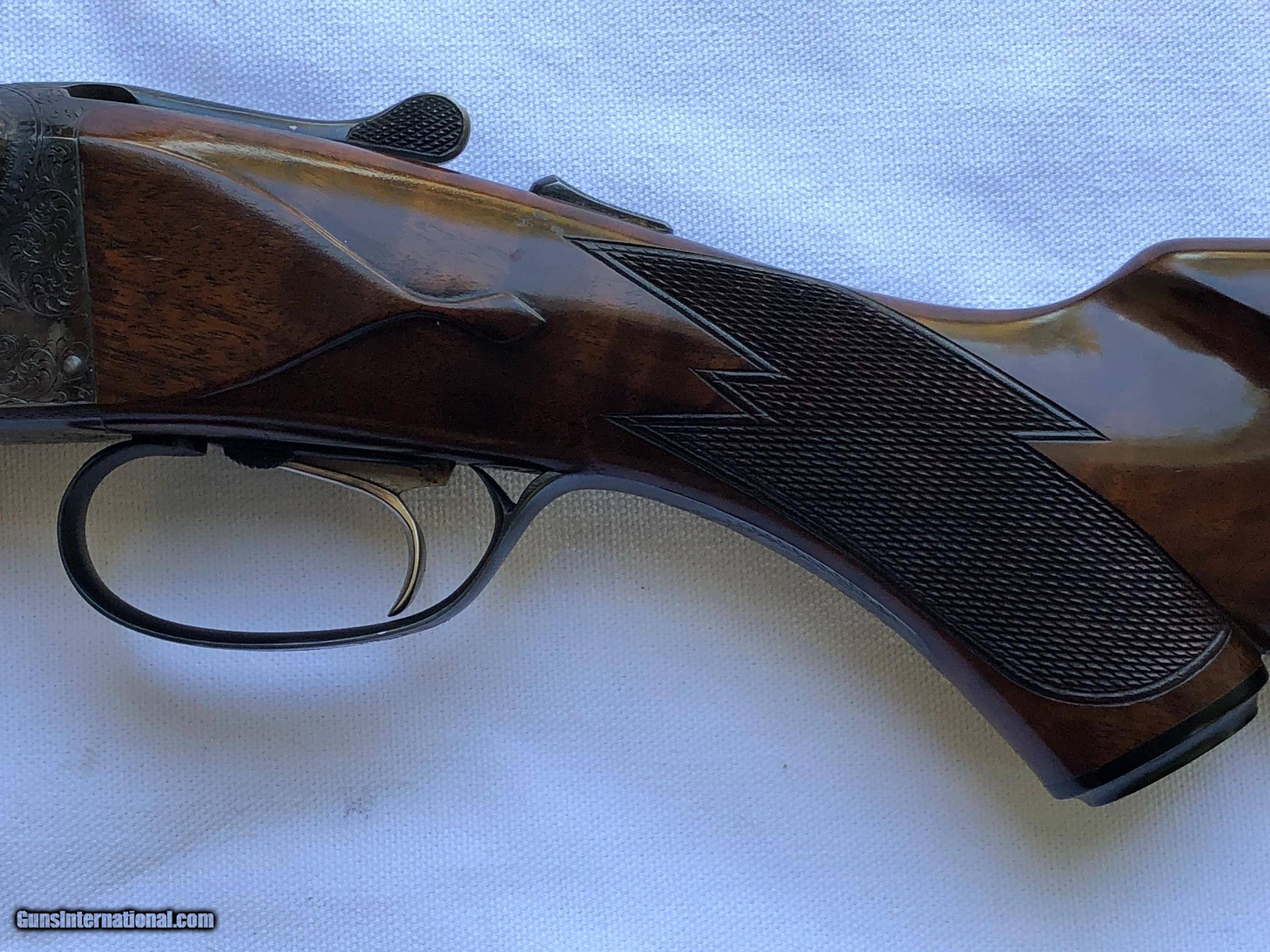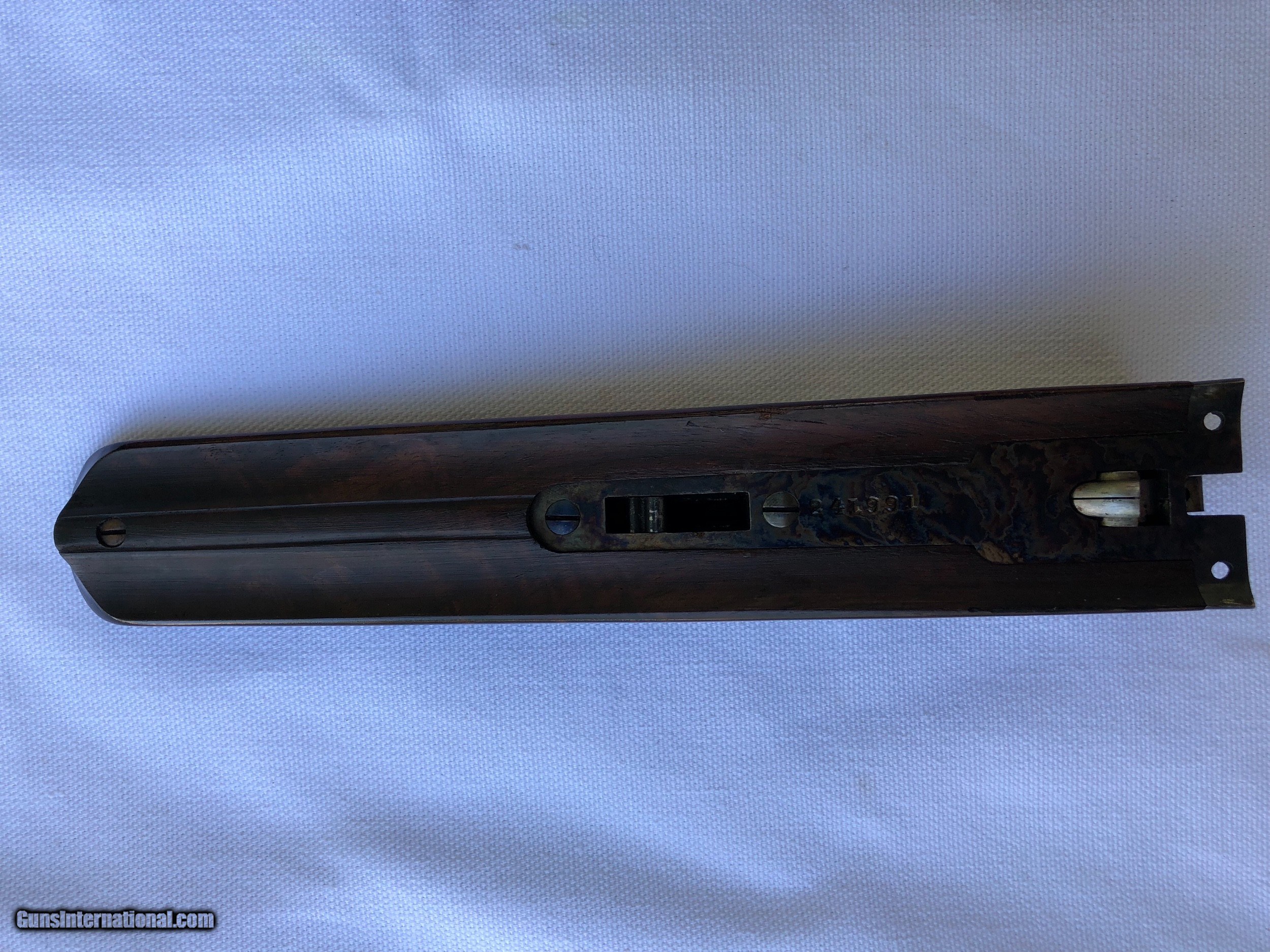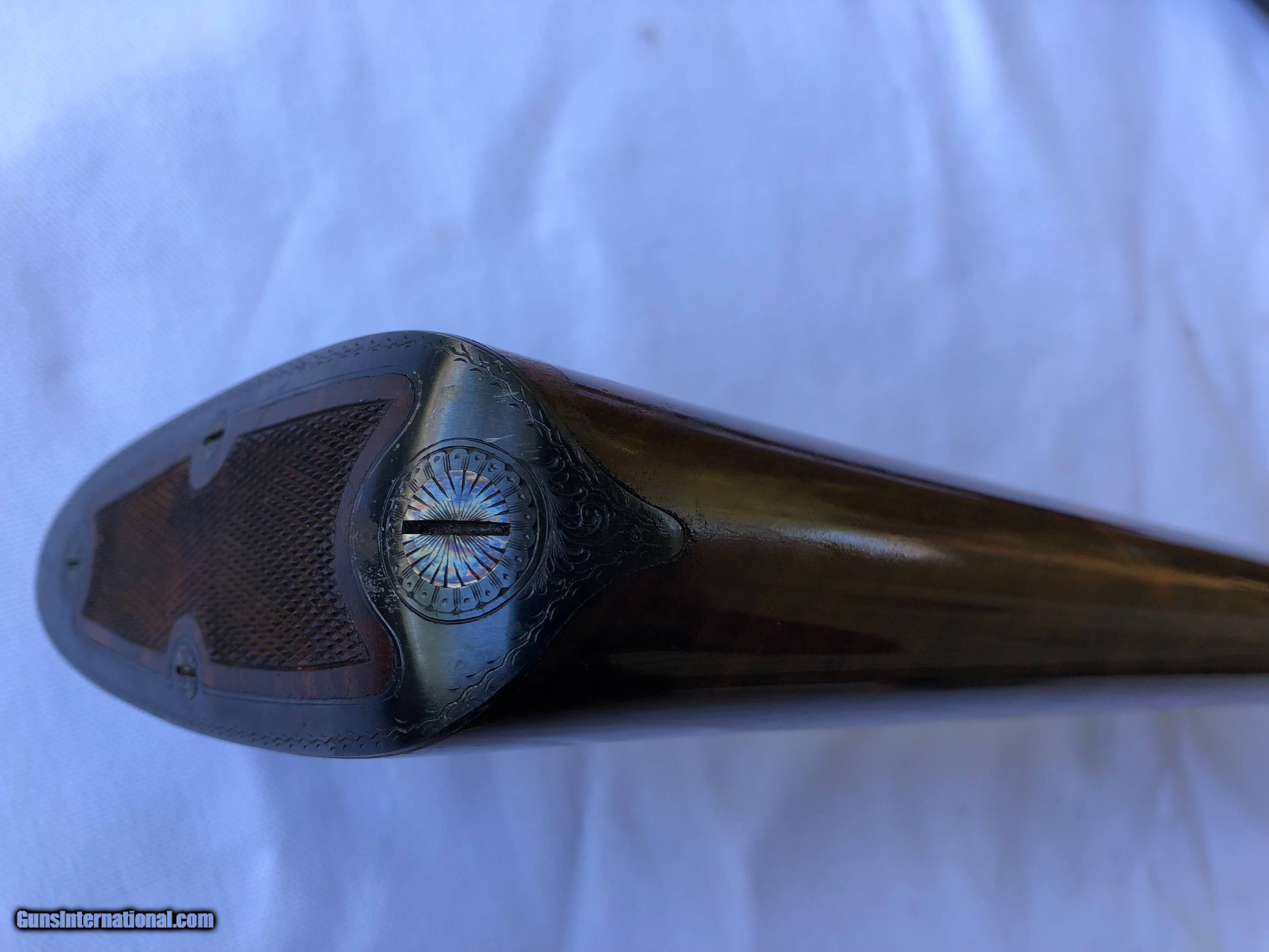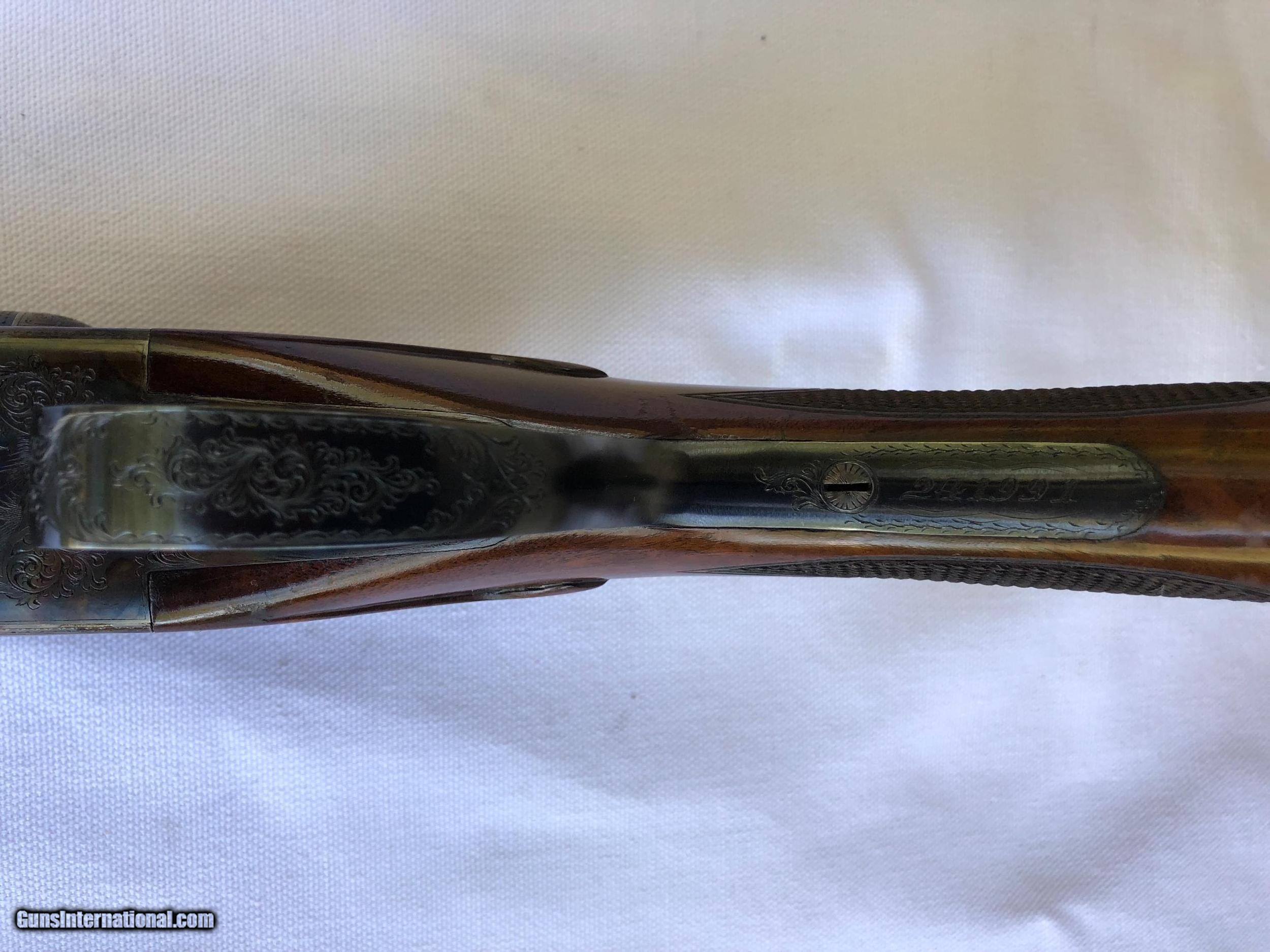 Description: Parker DHE 20ga Single Selective Trigger DHE 20ga 28” Barrels Ejectors Trigger: Single Selective Trigger Weight: 6.85 Pounds Length of Pull: 13 7/8” Drop at Comb: 1 ½” Drop at Heel: 2 1/8” Chokes: Right: Modified Left: Full Late Remington Parker 20ga 0 Frame. Shotgun is in high overall original condition. There are minor safe marks on the gun stock. The wood is typical grain for Parkers of this era. The shotgun shows little to no field use. Barrels are high original condition with no dents or dings. They ring true and show no signs of corrosion. The ejectors are in time and function properly. The action shows minimal use and has high original case color. All screws are in time, untouched and show case color. The trigger guard has high original bluing with no scratches or scrapes. Single selective trigger works properly. Skeleton steel butt plate is in high condition and shows minimal use with original bluing. There are minimal scrapes on the metal of the butt plate. If you are looking for a high original condition Parker of any era, this is the shotgun you’ve been waiting for. We are a licensed FFL. If you live within Missouri, we must charge sales tax. We offer a Seven day no hassle return. This gun cannot be fired during that time period. If there are any signs of abuse, improper handling, tear down, or improper packaging for return, refund will be declined. Buyer pays return shipping. Buyer pays actual shipping and insurance cost and are quoted at time of sale. SOLD Manufacturer: Parker Model: DHE |