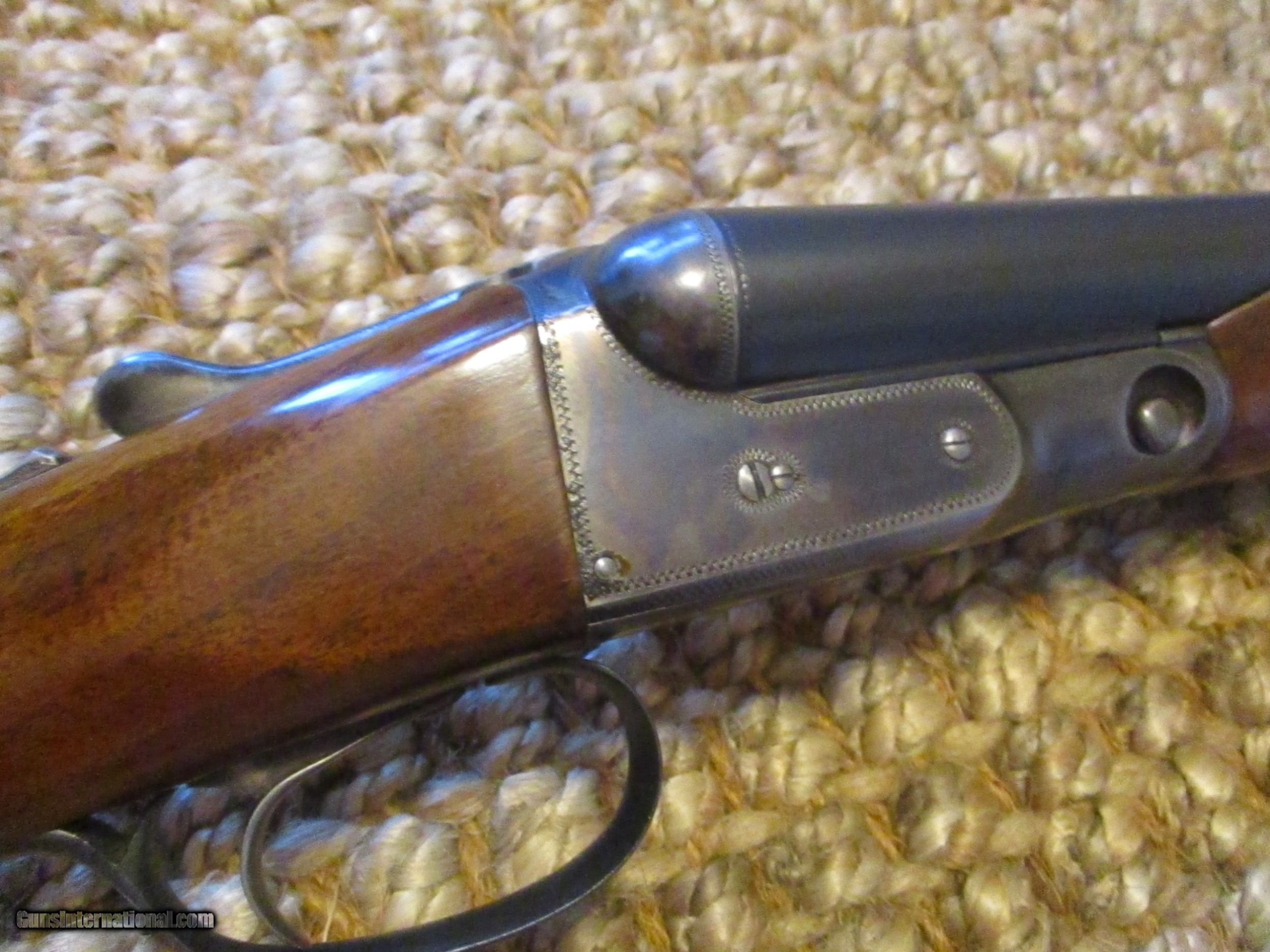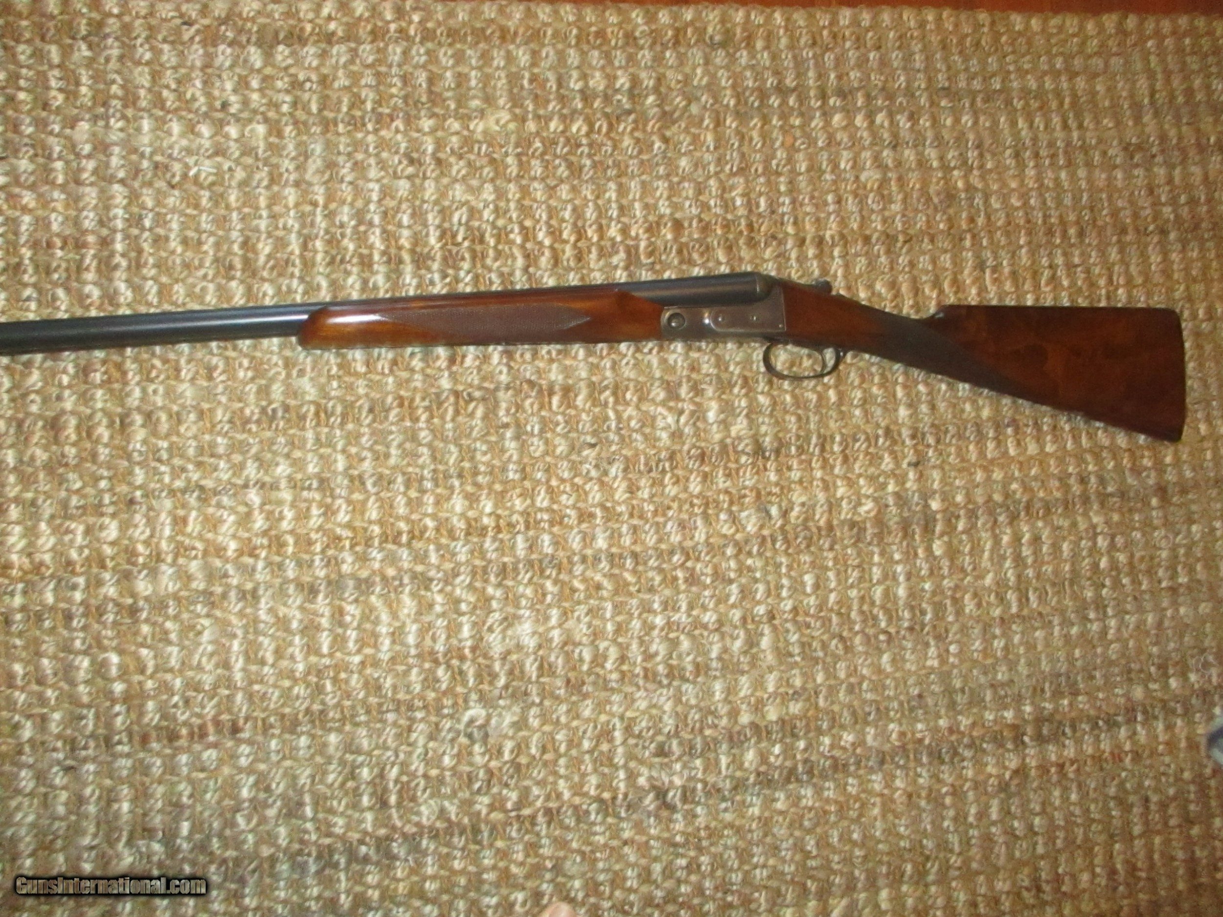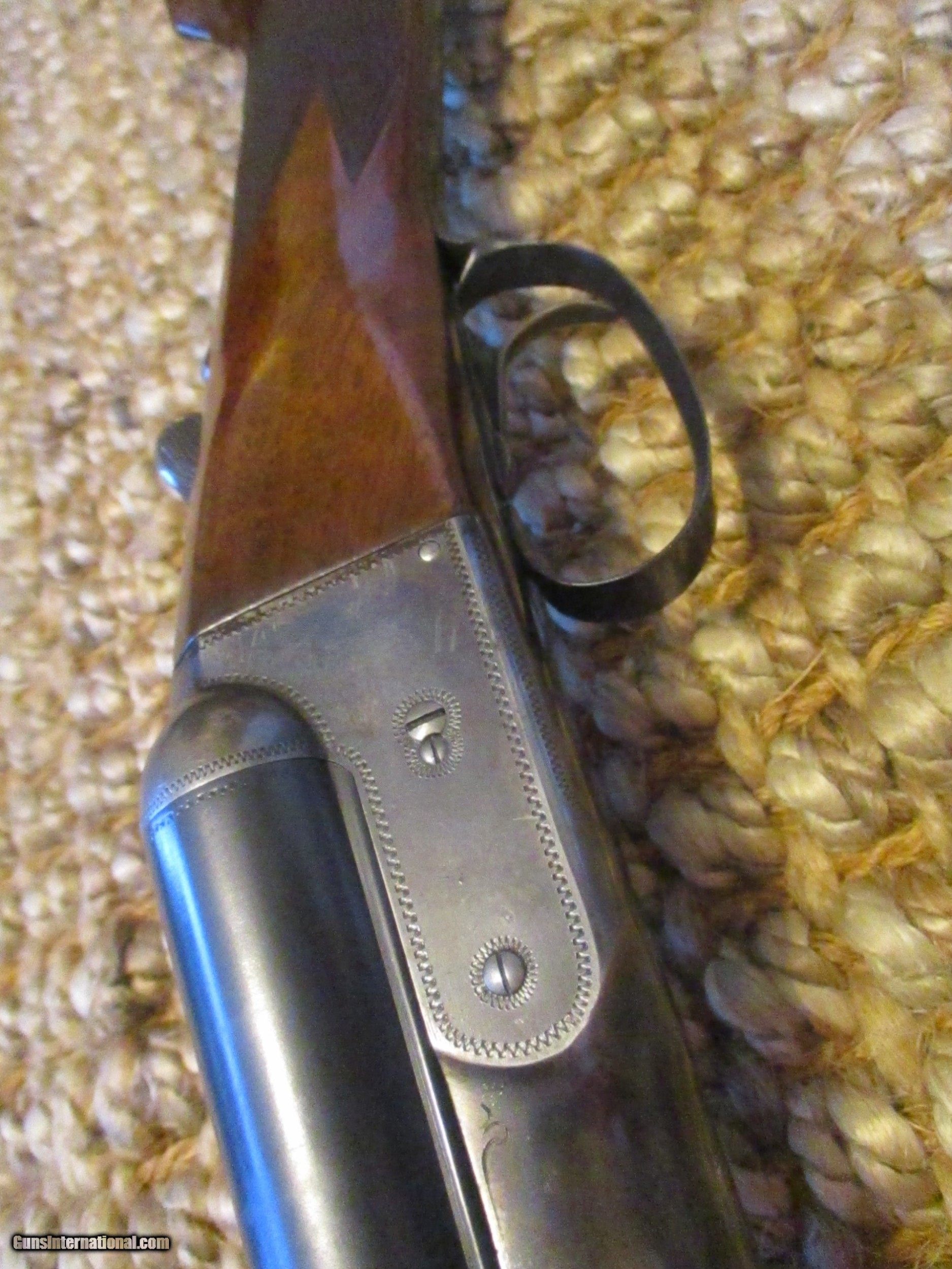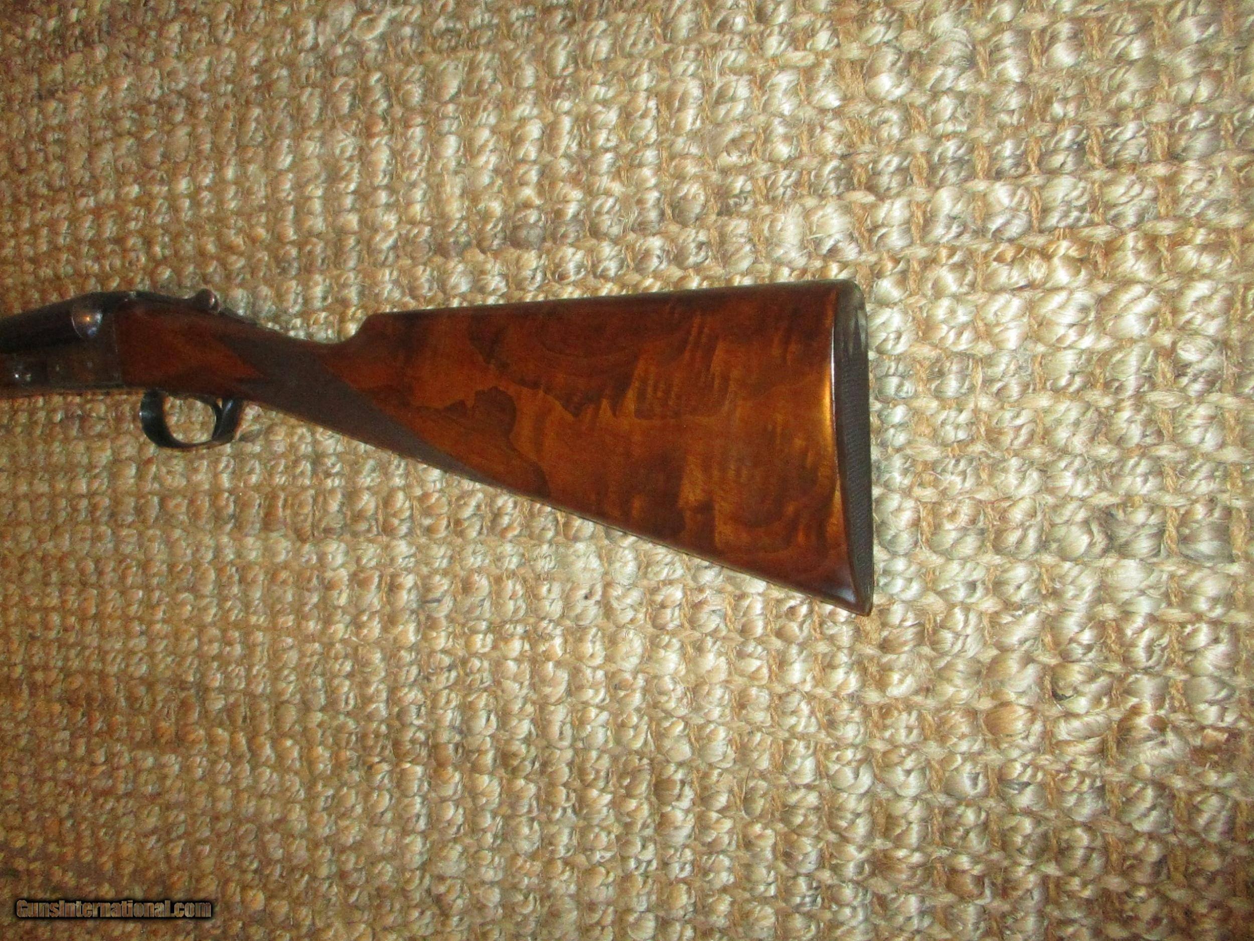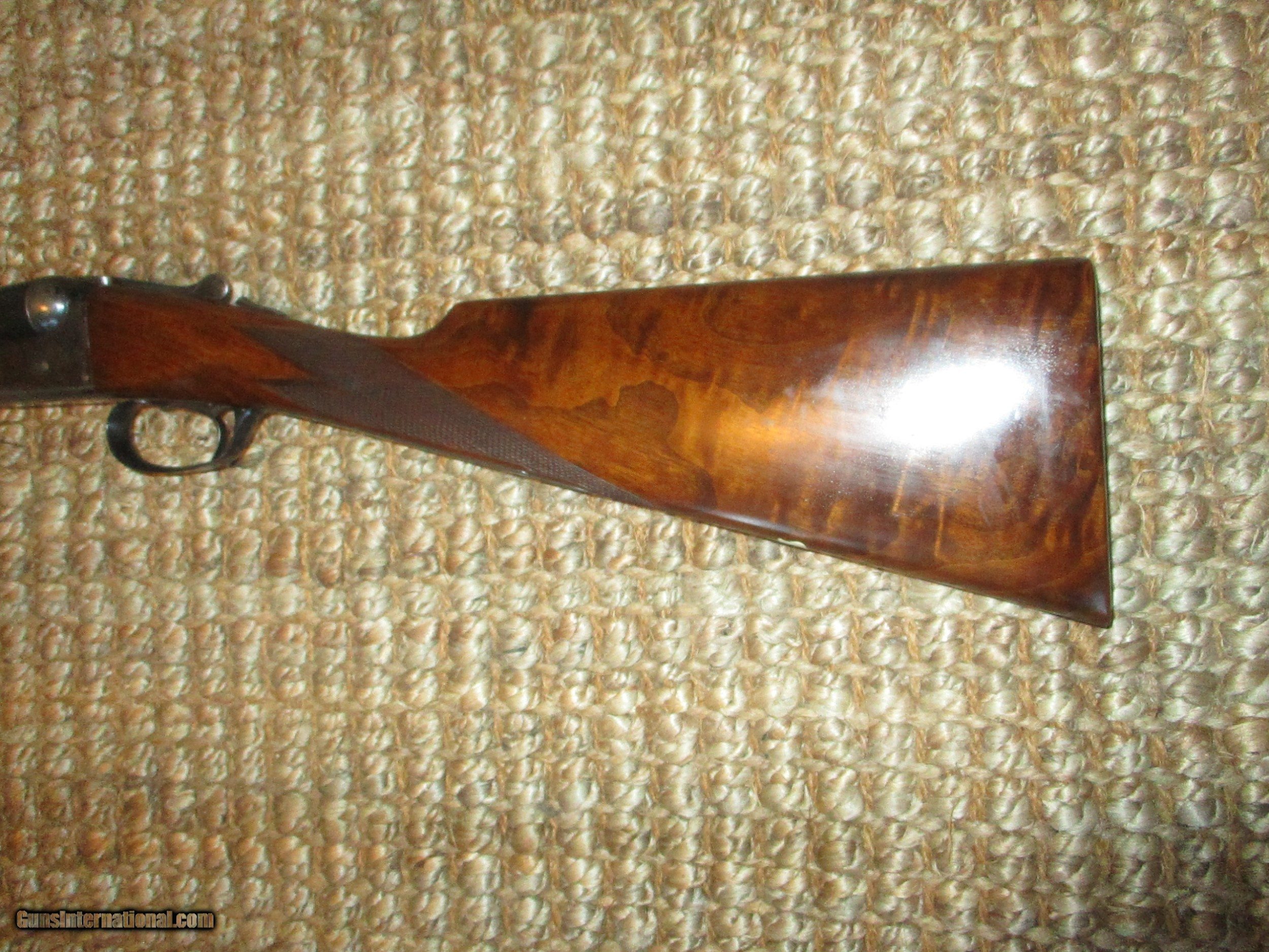 Description: 26" M/IC, Vulcan steel bbls., twin ivories, checkered med. rib, factory single select trigger, ejectors, American select eastern walnut, checkered straight stock, checkered butt, beavertail forearm, 65%-70% solidly covered case color, 14 1/8" LOP over checkered butt, 1 1/2" DAC - 2 3/8" DAH, 7lbs., 95% OA with only minor handling, a very scarce original skeet grade gun ready for use! SOLD |