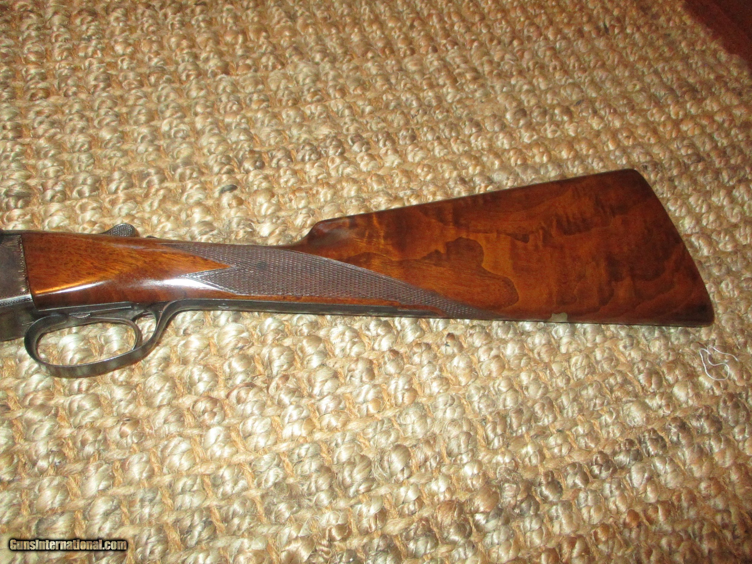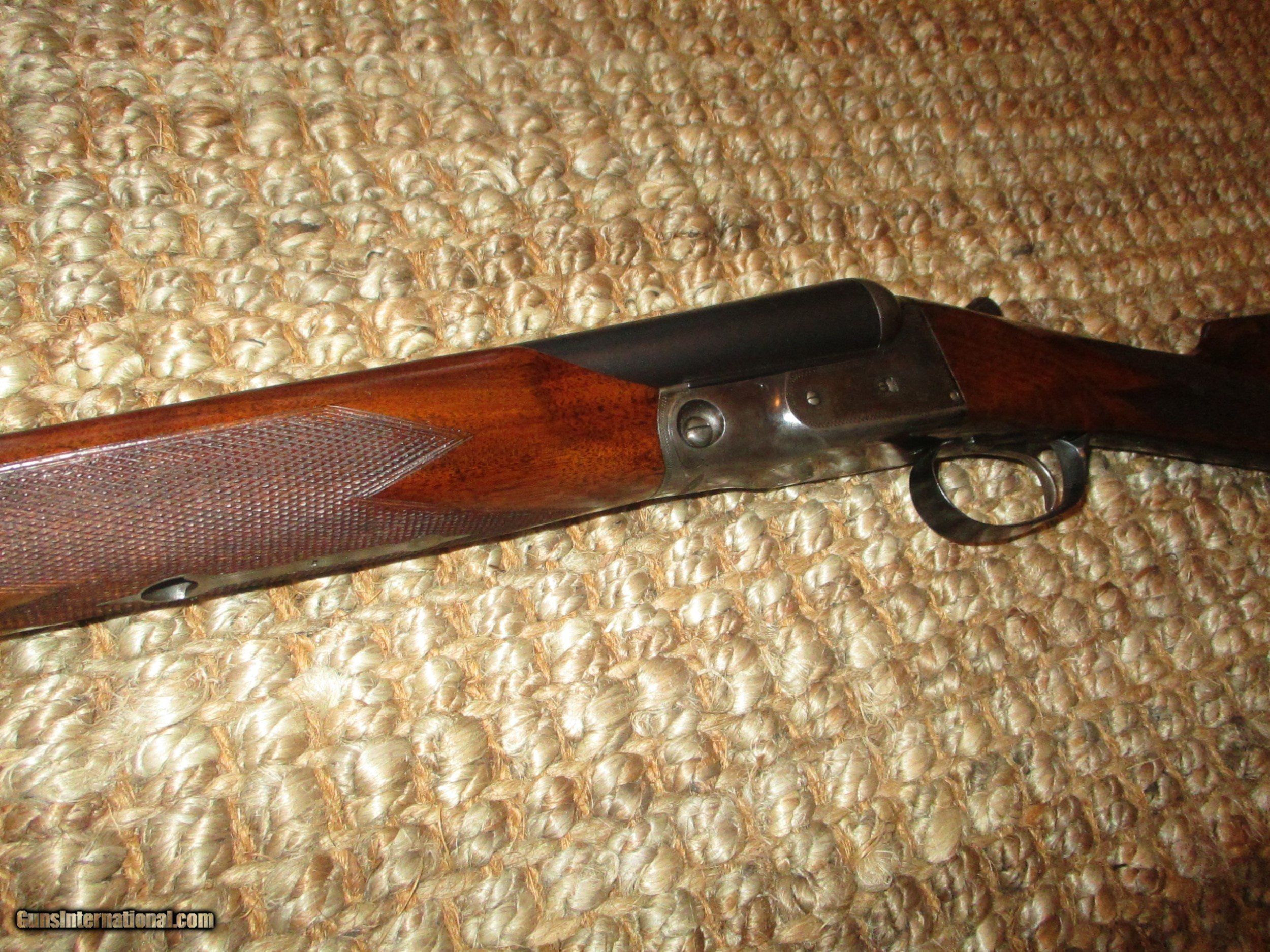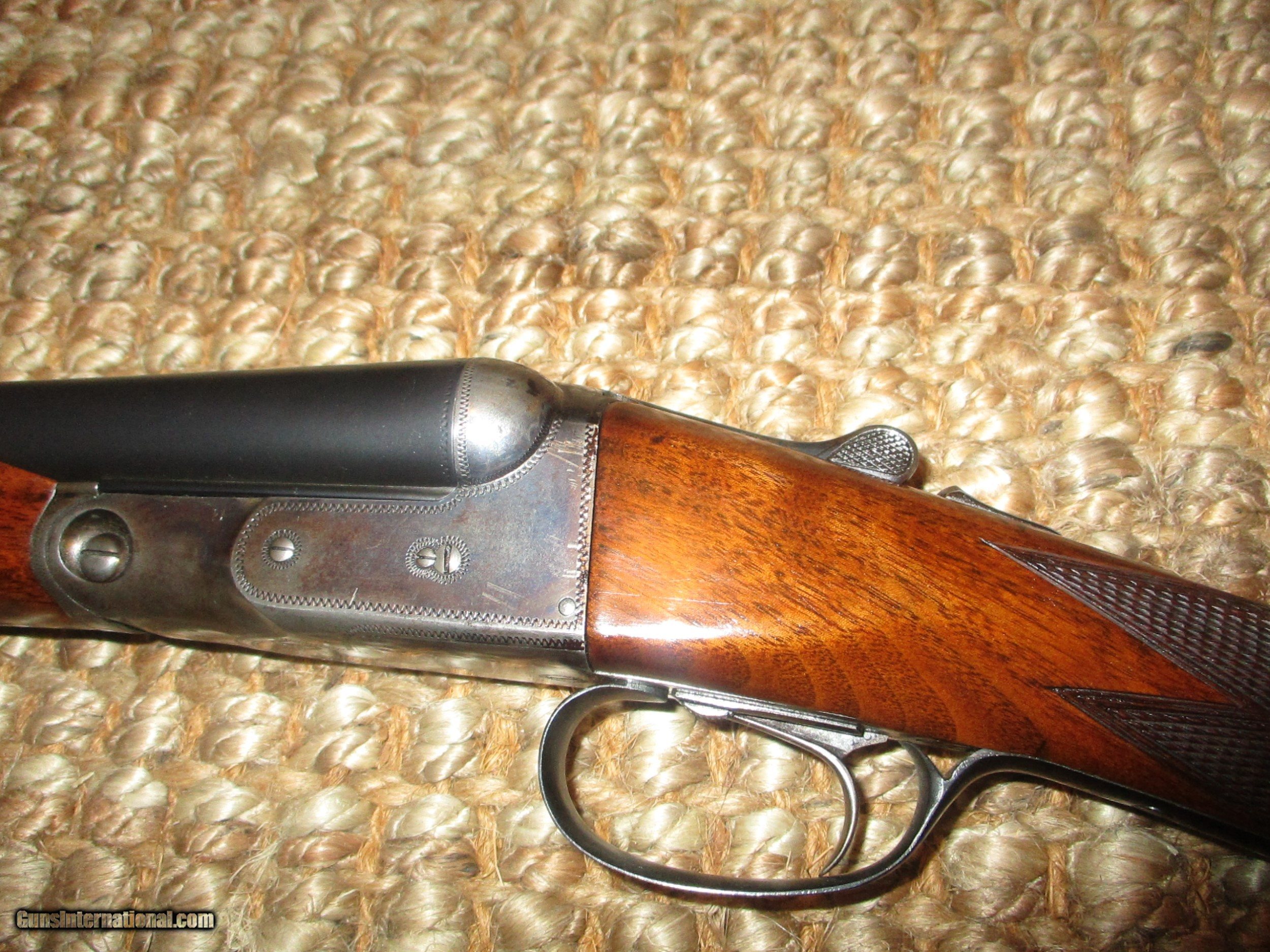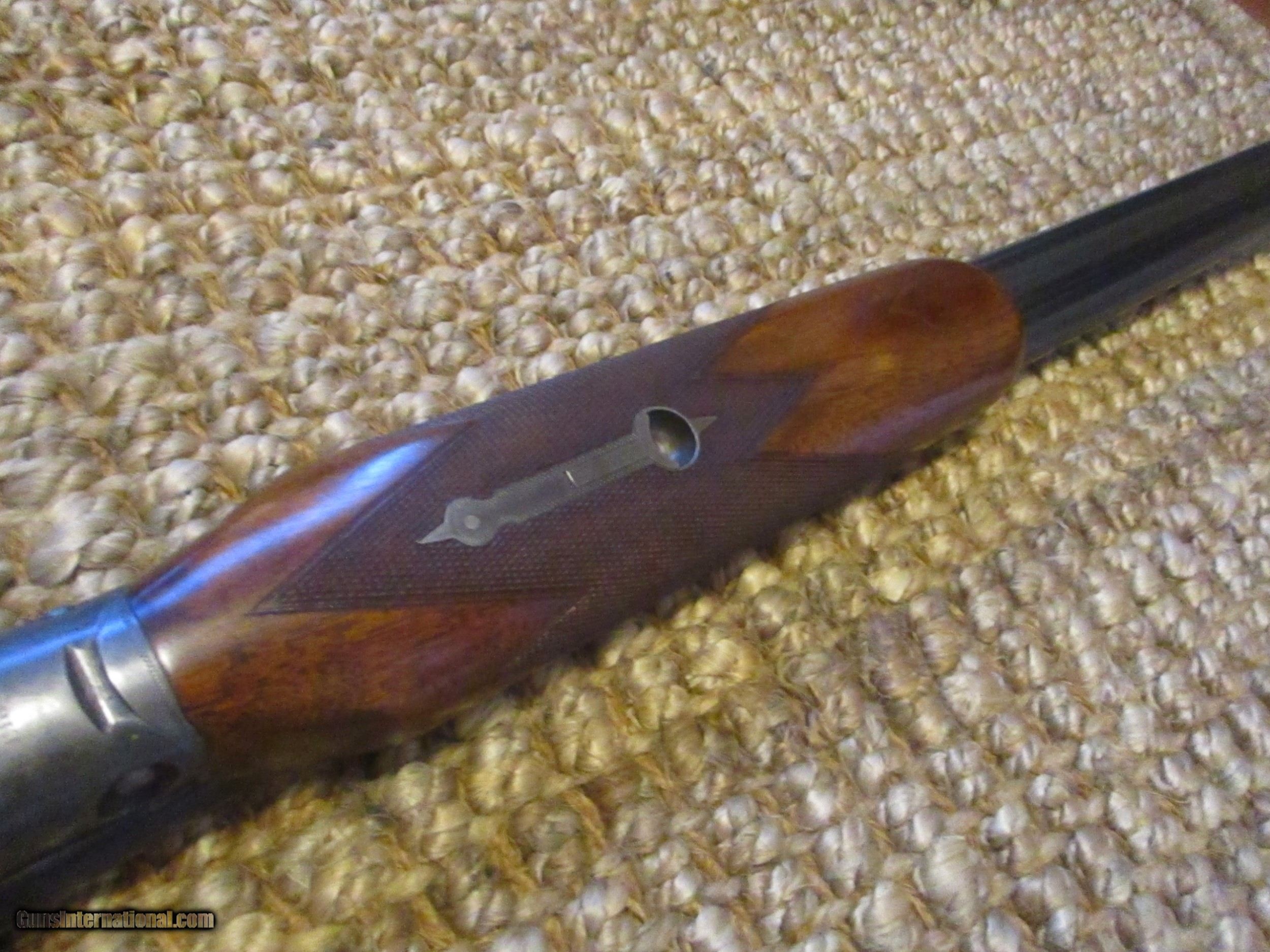 Description: 26" M/IC, Vulcan steel bbls., twin ivories, checkered med. rib, factory single select trigger, ejectors, American select eastern walnut, checkered straight stock, checkered butt, beavertail forearm, 65%-70% solidly covered case color, 14 1/8" LOP over checkered butt, 1 1/2" DAC - 2 3/8" DAH, 7lbs., 95% OA with only minor handling, a very scarce original skeet grade gun ready for use! SOLD |