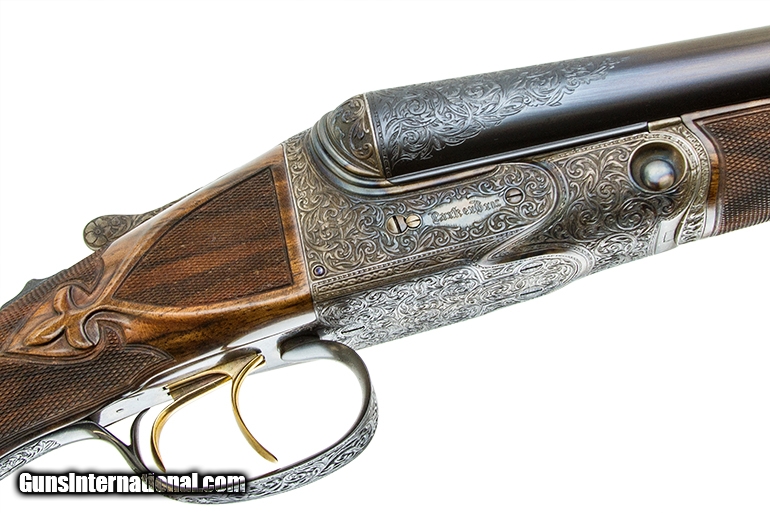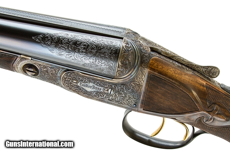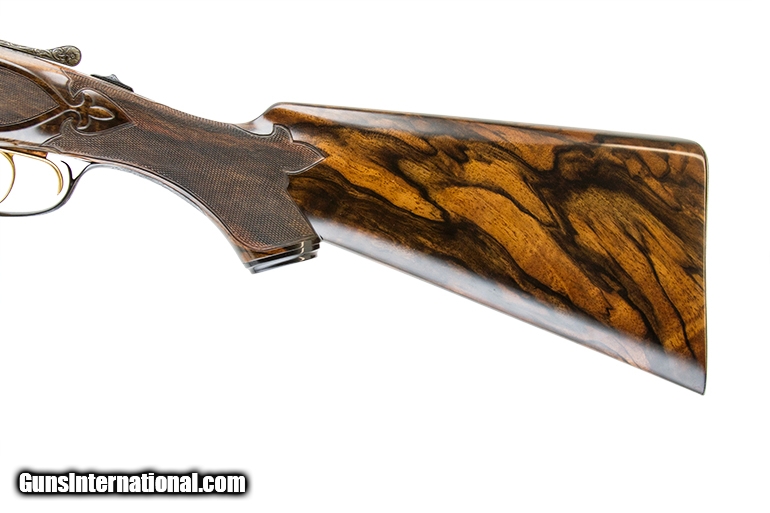Description: 100% PROFESSIONAL RESTORATION AND OUTSTANDING NEW WOOD 32"IC AND FULL 2 3/4 DOUBLE TRIGGER EJECTORS SPLINTER FOREARM PISTOL GRIP UNFIRED SINCE RESTORATION 7LBS 13 OZ X 2 9/16 X 1 1/2 X 14 1/4 TO SKELETON BUTT PLATE SOLD |