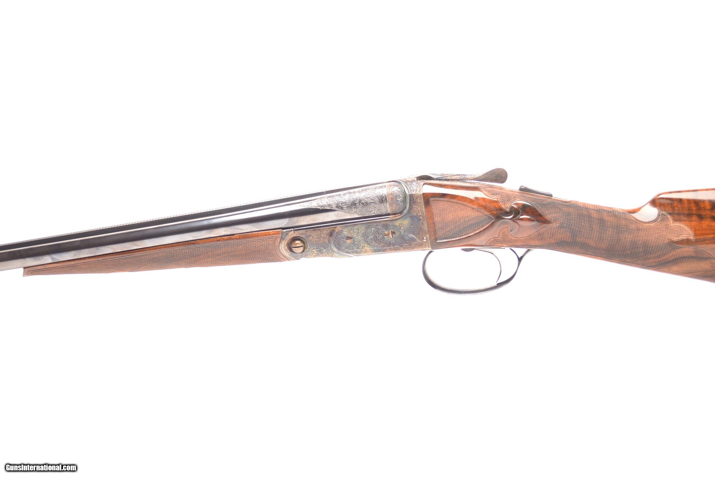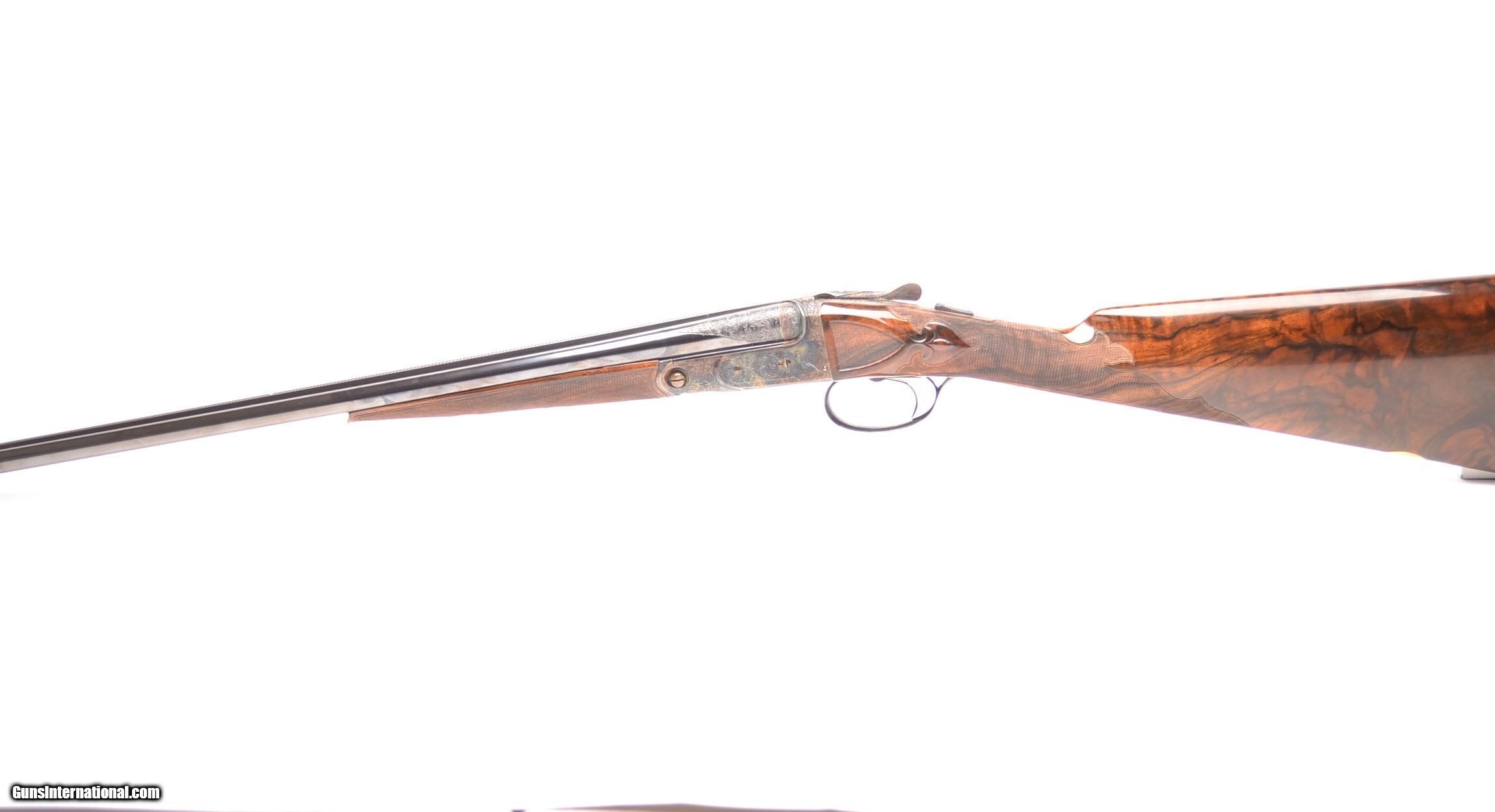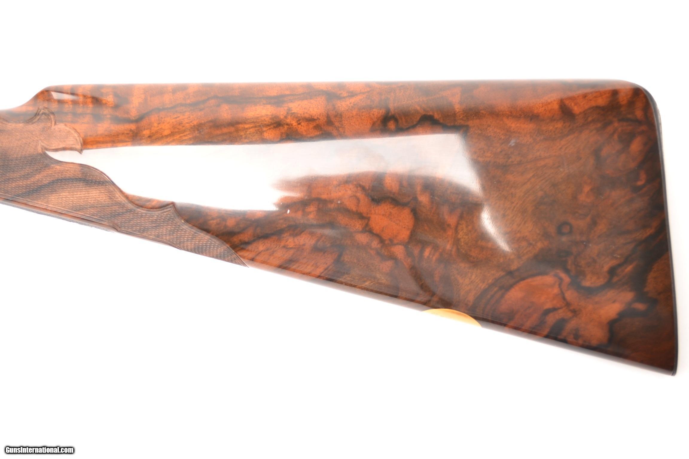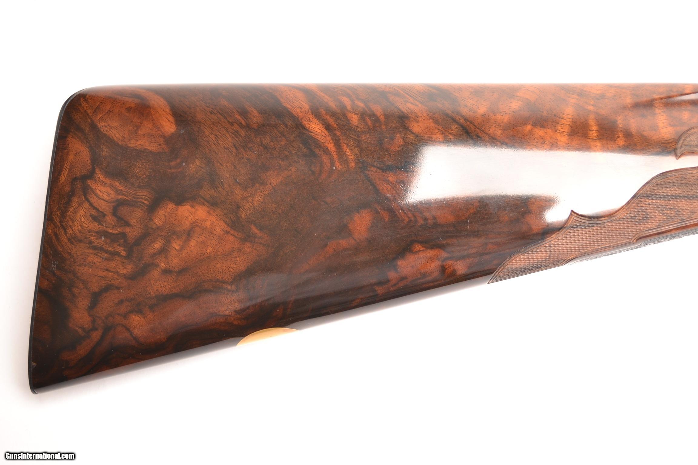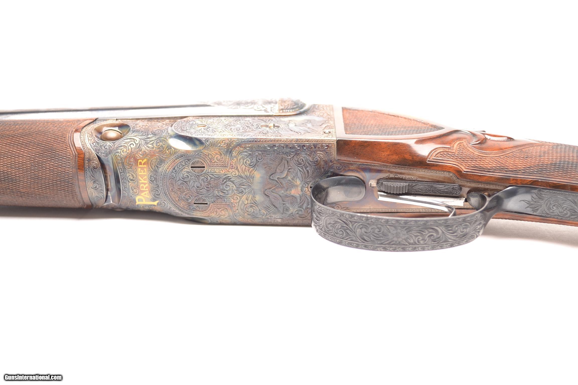 Description: PARKER – AAHE, 28ga., 28” IC/M, exhibition Turkish walnut straight grip stock, skeleton butt, gold oval, single selective trigger, automatic safety, fluer-de-lis checkering, splinter forend, 00 frame, AAHE engraving pattern, 100% brand new and unfired, oak and leather case, available for immediate delivery. Inv# 23516 14 ½” x 1 ½” x 2 3/8” 5 lbs 12 oz $49,995.00 SOLD |