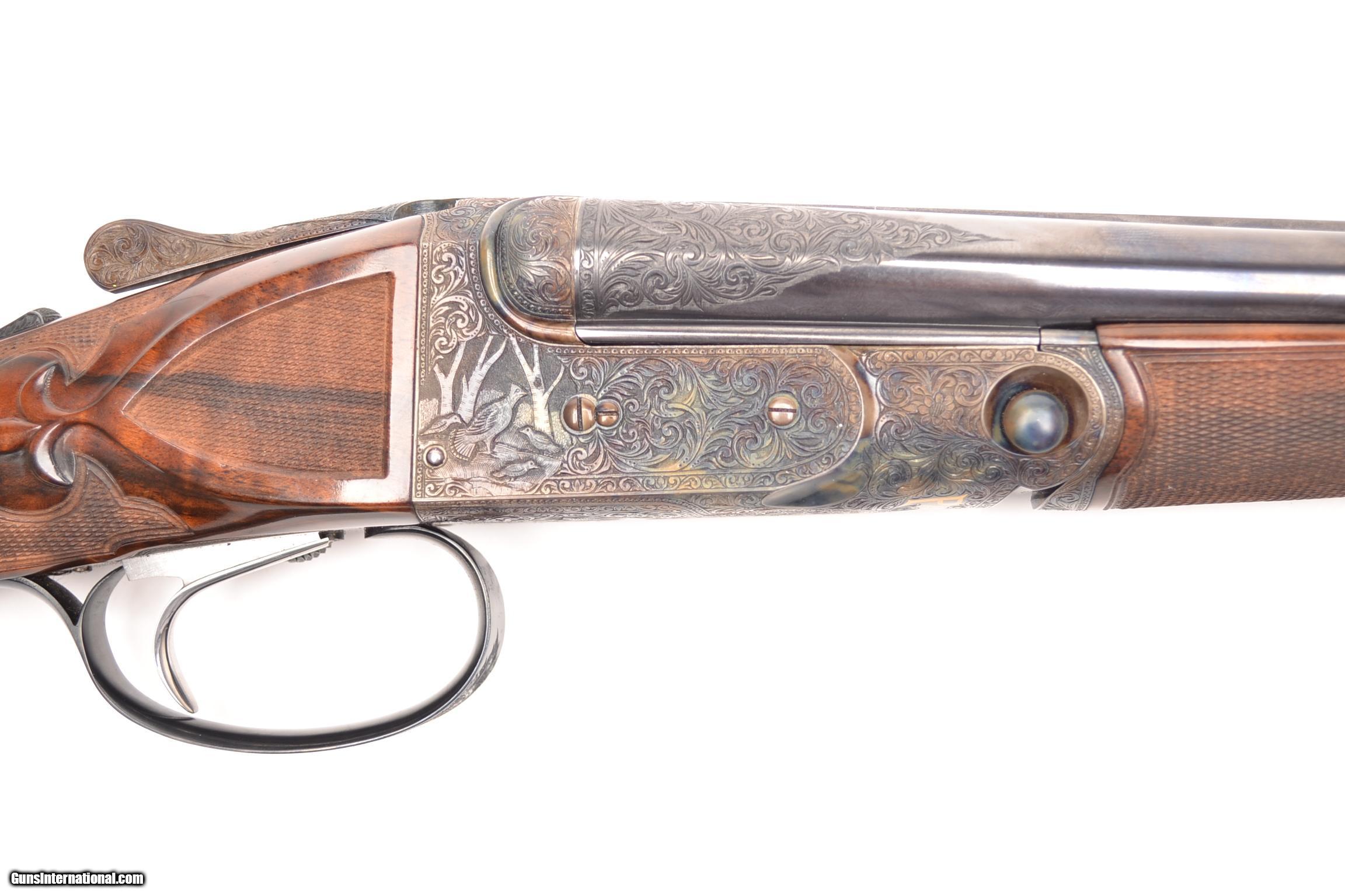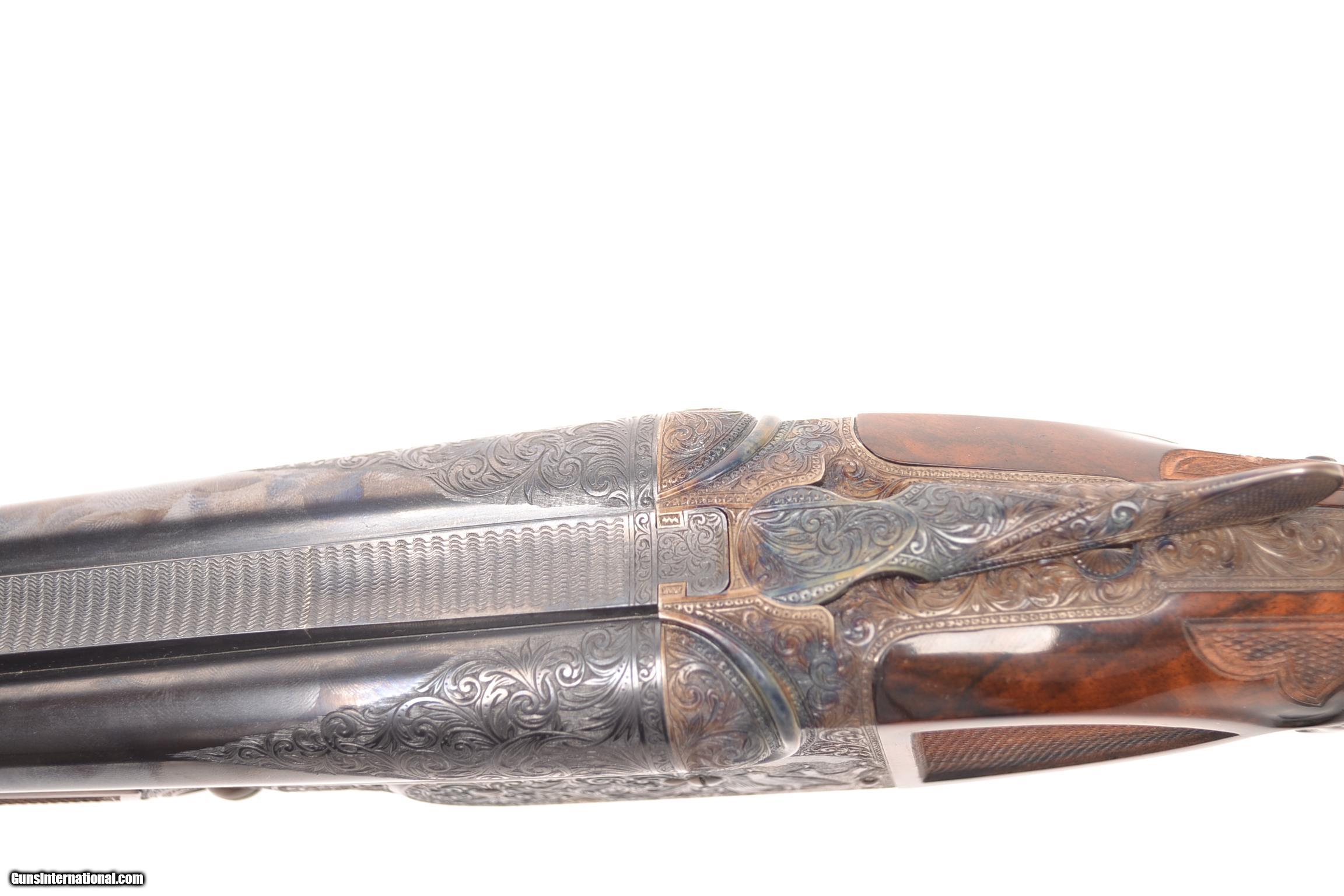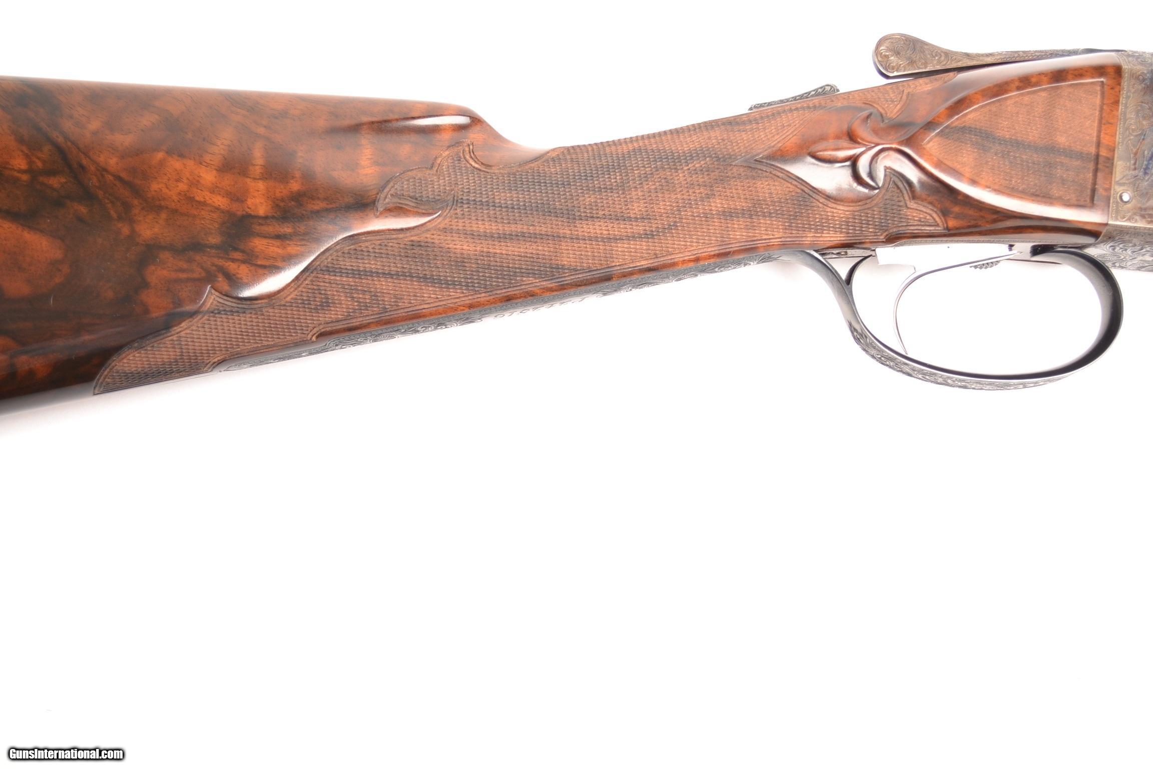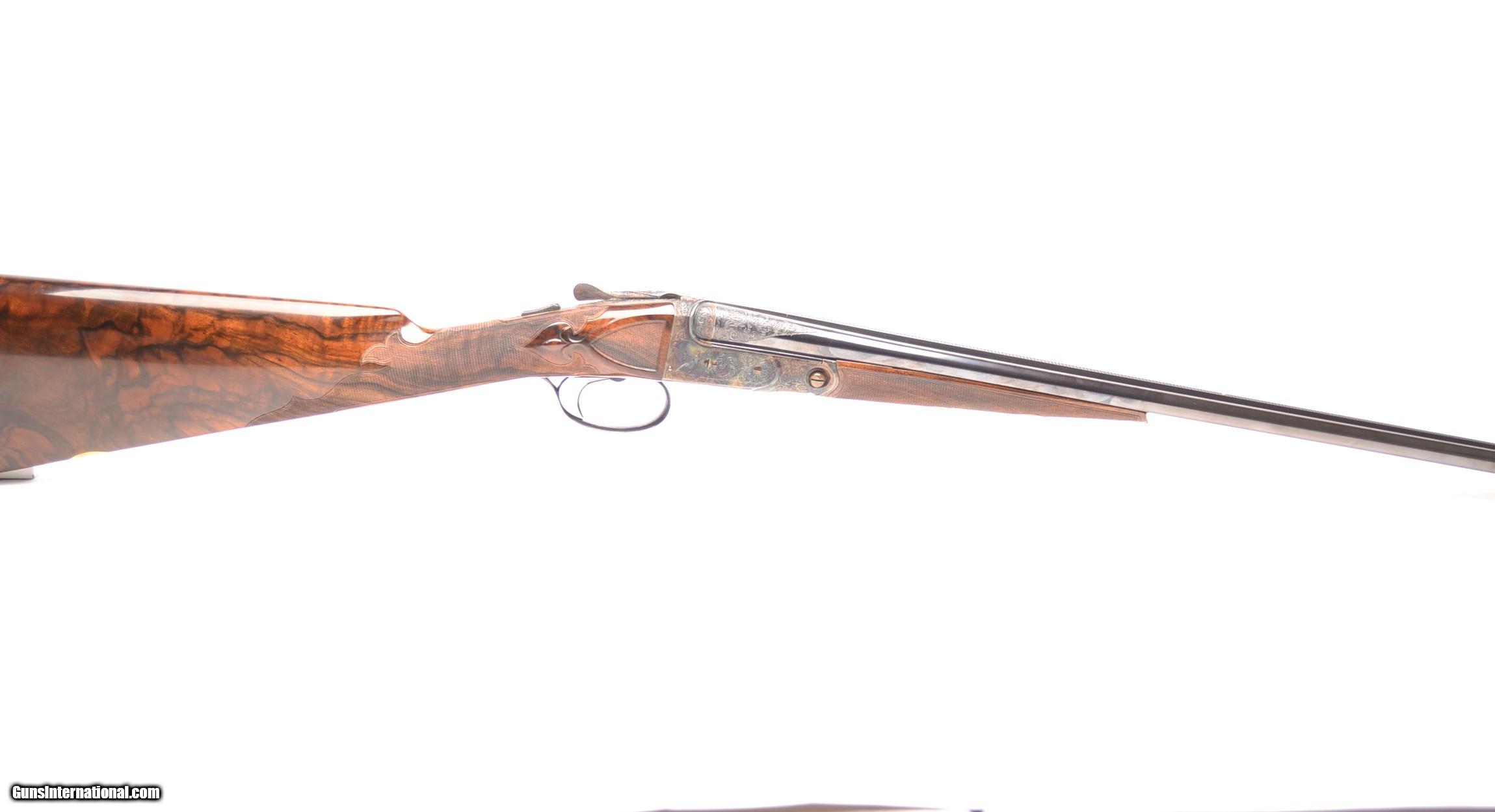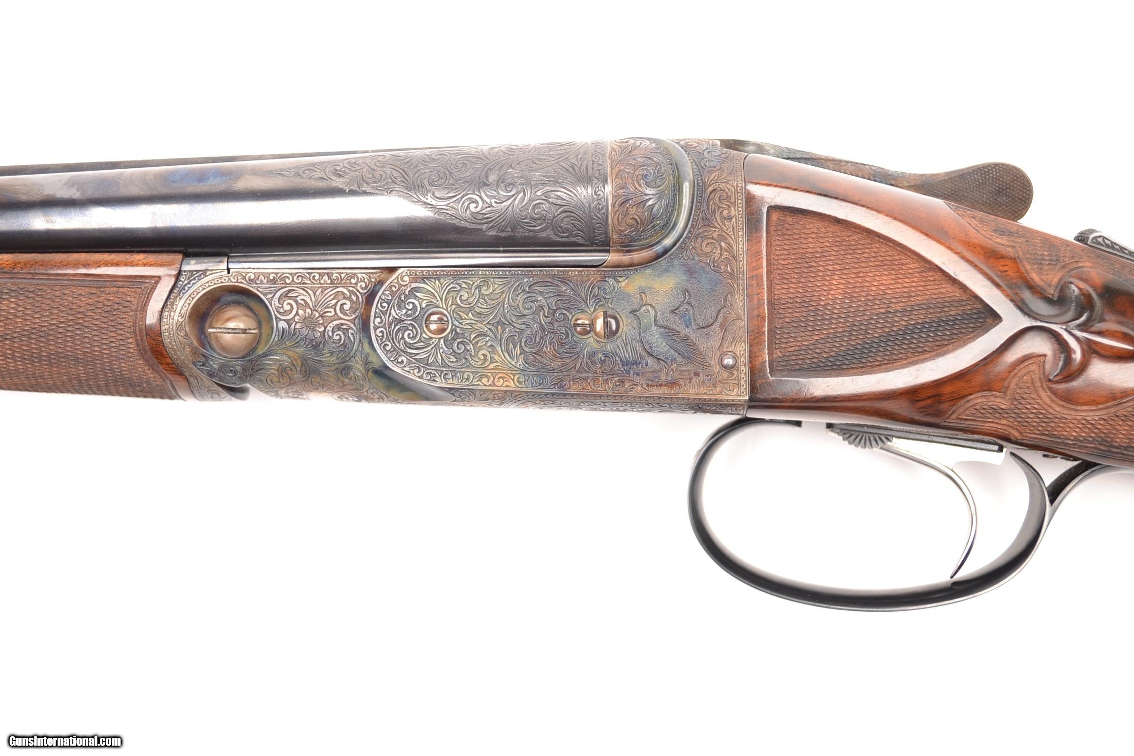Description: PARKER – AAHE, 28ga., 28” IC/M, exhibition Turkish walnut straight grip stock, skeleton butt, gold oval, single selective trigger, automatic safety, fluer-de-lis checkering, splinter forend, 00 frame, AAHE engraving pattern, 100% brand new and unfired, oak and leather case, available for immediate delivery. Inv# 23516 14 ½” x 1 ½” x 2 3/8” 5 lbs 12 oz $49,995.00 SOLD |