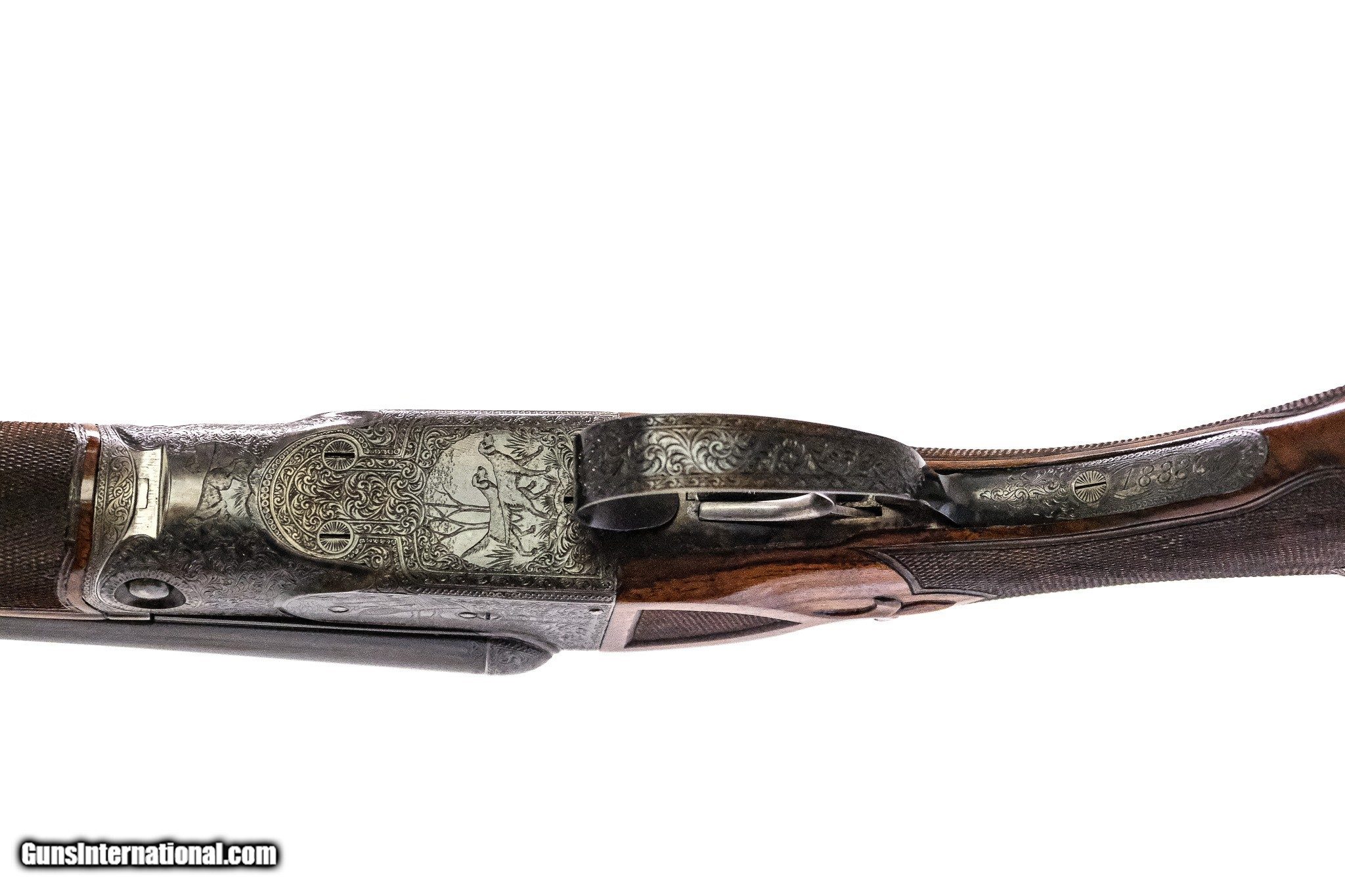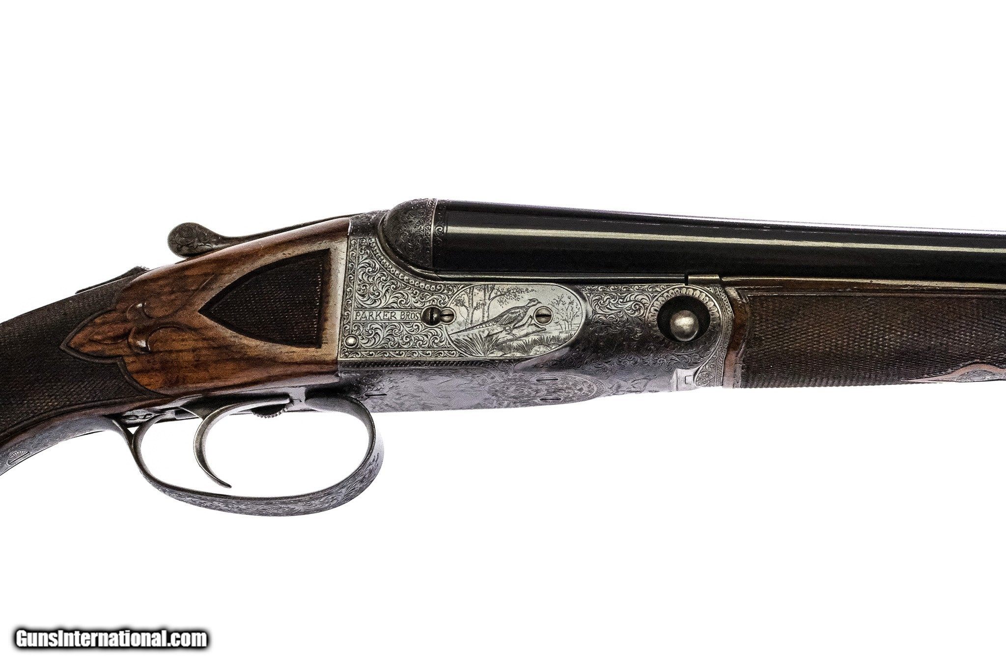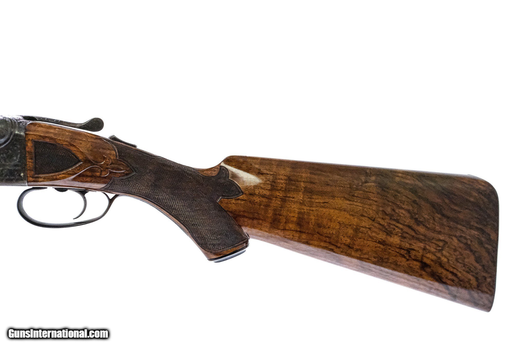 Description: Parker - AHE Grade, SxS, 20ga. 28" Barrels Choked IM/F. Solid rib, acme steel in rib, 2 ¾ in chambered, retains 99% of case color hardening, barrel blue, and wood finish, very elaborate A grade engraving that’s sharp, perfect, and untouched.. single selective trigger, manual safety, Turkish walnut, Rase Flour de Le, A Grade style checkering and side panels, skeleton butt, beautiful barrel engraving, This is an outstanding gun, it was originally sold by us a few years ago with all the pictures of the previous owner holding the gun! It has been miscategorized in the past but this is a outstanding AHE Small bore that we believe is the highest condition 20GA AHE that has come to market. Inv: 74543 6 lbs. 4 oz. 14 3/16" x 1 ½" x 2 ¾" P.O.R. SOLD |