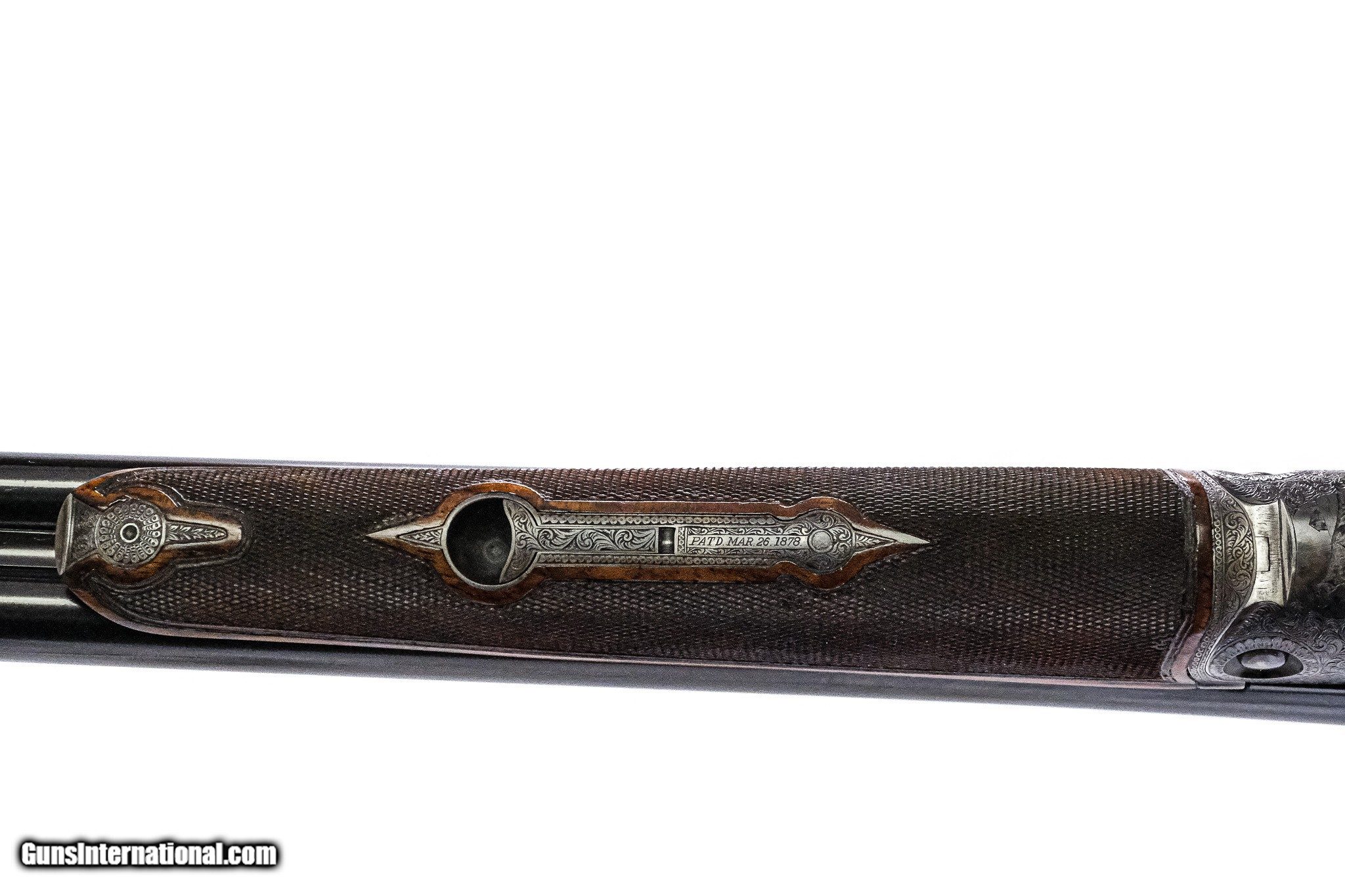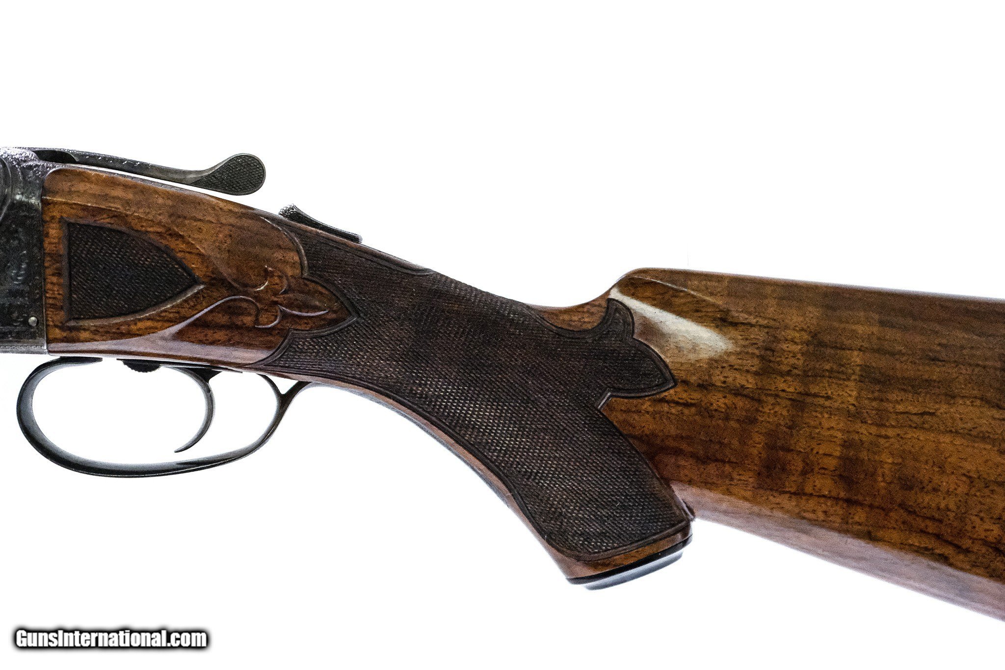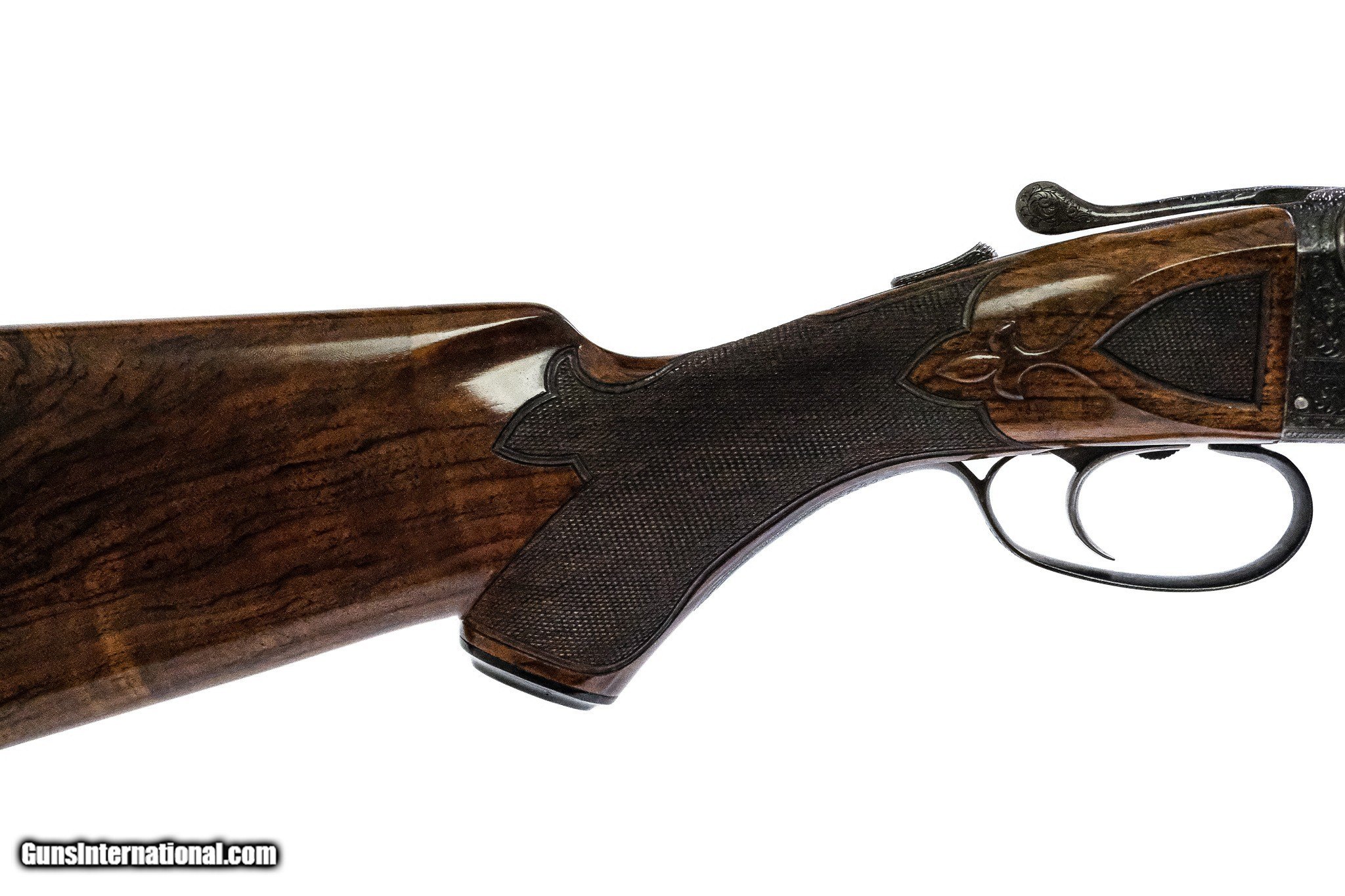 Description: Parker - AHE Grade, SxS, 20ga. 28" Barrels Choked IM/F. Solid rib, acme steel in rib, 2 ¾ in chambered, retains 99% of case color hardening, barrel blue, and wood finish, very elaborate A grade engraving that’s sharp, perfect, and untouched.. single selective trigger, manual safety, Turkish walnut, Rase Flour de Le, A Grade style checkering and side panels, skeleton butt, beautiful barrel engraving, This is an outstanding gun, it was originally sold by us a few years ago with all the pictures of the previous owner holding the gun! It has been miscategorized in the past but this is a outstanding AHE Small bore that we believe is the highest condition 20GA AHE that has come to market. Inv: 74543 6 lbs. 4 oz. 14 3/16" x 1 ½" x 2 ¾" P.O.R. SOLD |