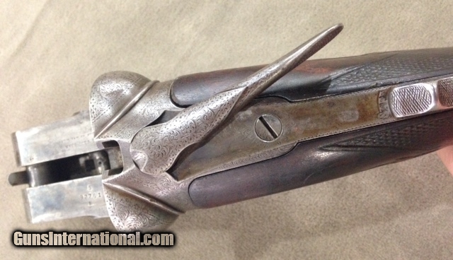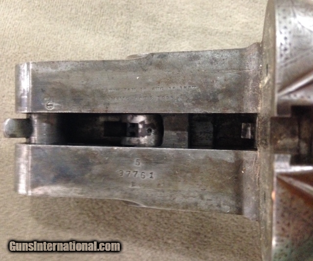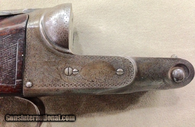 Description: An all original Parker BH Grade damascus 12 Ga shotgun, circa 1901, with 30 inch full & full damascus pattern barrels with most all original pattern and browning, and 2&3/4 inch chambers. Action mostly a brown patina without much finish but with no pits and absolutely wonderful very fine engraving. High grade stock and forend are original and worn with checkering pattern visible, crack in wrist that is an early repair, stock cut and pad improperly fitted bringing length of pull to 13.5 inches with the pad, sliver out of forend, etc. At one time one hell of a fine firearm and certainly a prime candidate for restoration, especially at the price offered. SOLD Curio/Relic: Yes |