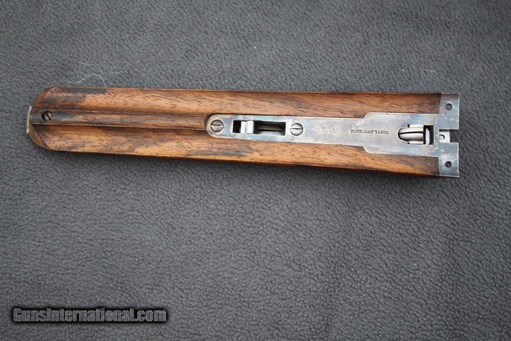 Description: SOLD! Parker BHE 12ga on a 2 frame with 28" Acme steel barrels choked F/F. The metal finishes are original and the wood has been refinished. The engraving and case colors are very nice and overall the gun does not show much use. The barrel blue does have some frecking on the bottom near the muzzle. Meaurements below match the factory letter. Special instructions in factory letter state; Full choke, Dark curly stock, 2 5/8" chambers, Engrave shield, and target 3 1/2 drams 1 oz. #6 shot. Please see pictures for accurate description and condition. Grade – BHE Weight – 7lb 7oz LOP – 13 3/4” DOC – 1 3/4” DOH – 3” Bore/Choke Right - .729 / .039 Bore/Choke Left - .729 / .039 SOLD |