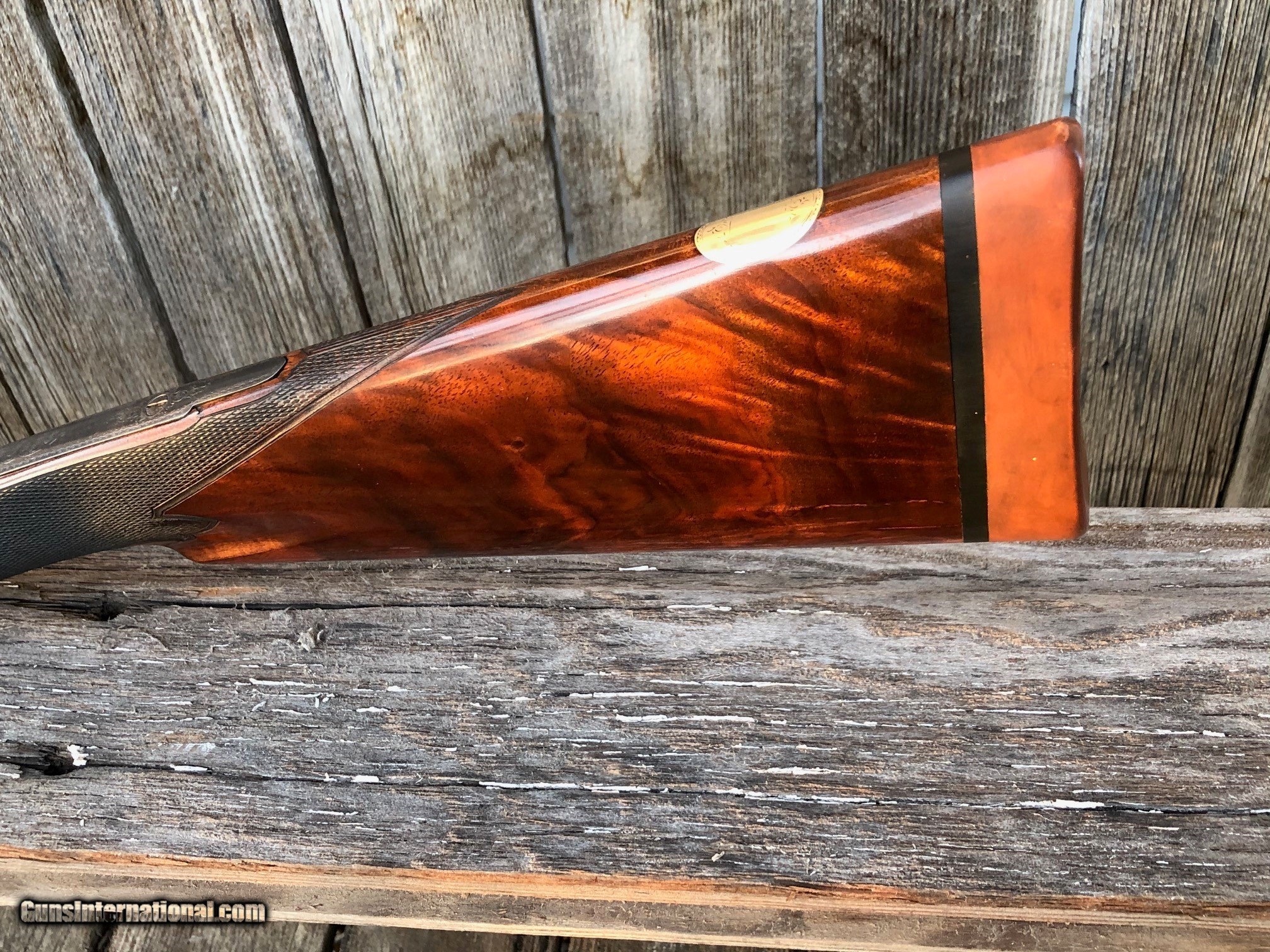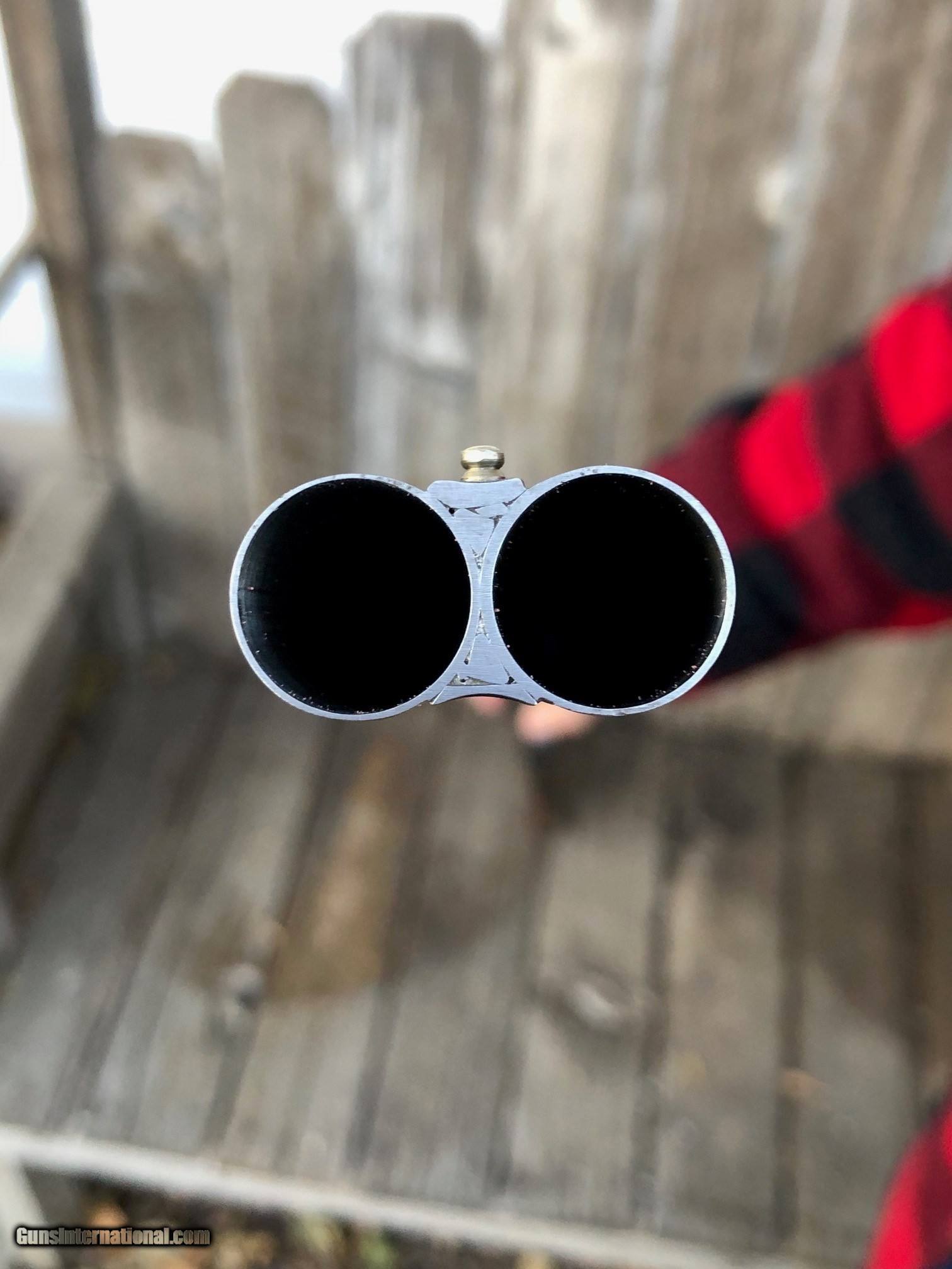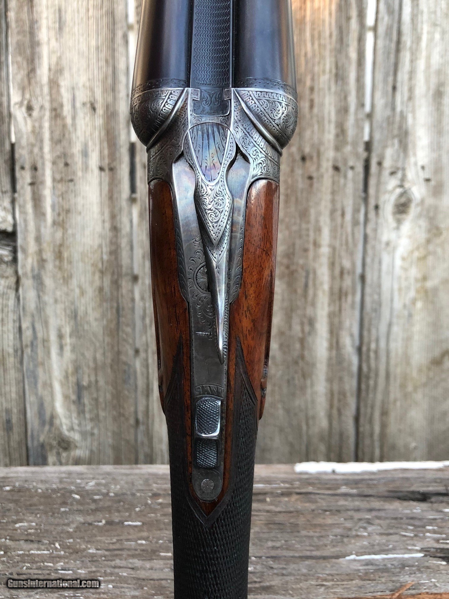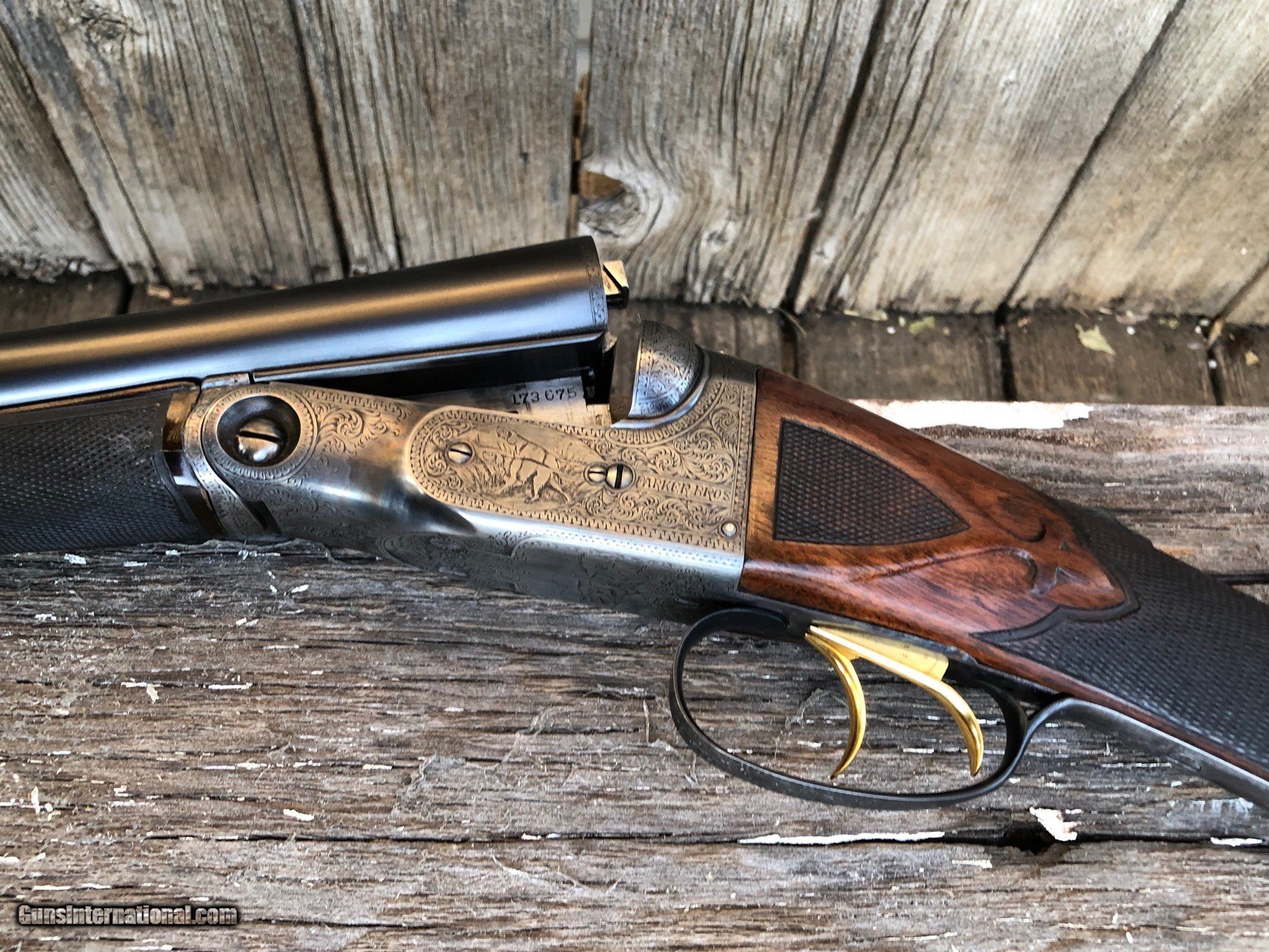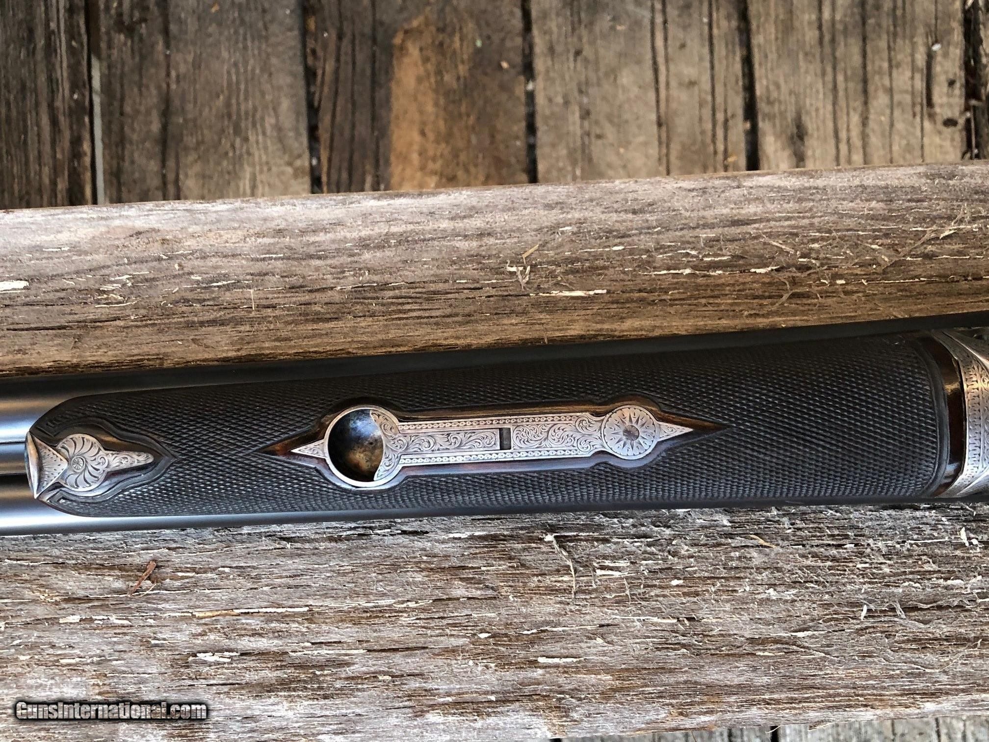 Description: Author Doug Stewart's Parker BHE 20 gauge. This beautiful Parker is featured on pages 158, 159, and 160 of his book "The Traditional Side by Side". This iconic gun is also featured on the front cover of his second book. DESCRIPTION: Parker BHE 20 gauge was made in 1916. The little Parker has 28" bbls, light mod and improved mod (.012/.016) 2 1/2" chambers. Straight stock 1 5/8 x 2 5/8 x 14 1/4 slight cast off. The gun has the most desirable features: straight, highly figured French walnut stock; gold plated triggers, fully checkered splinter forearm; classic dog scenes; light weight (5lbs 11 oz.). The gun is tight as new with 70% case colors and perfect finishes from Turnbull Restorations. Own one of Doug Stewarts classic Parkers! RARE-find another one! Price is FIRM SOLD |
