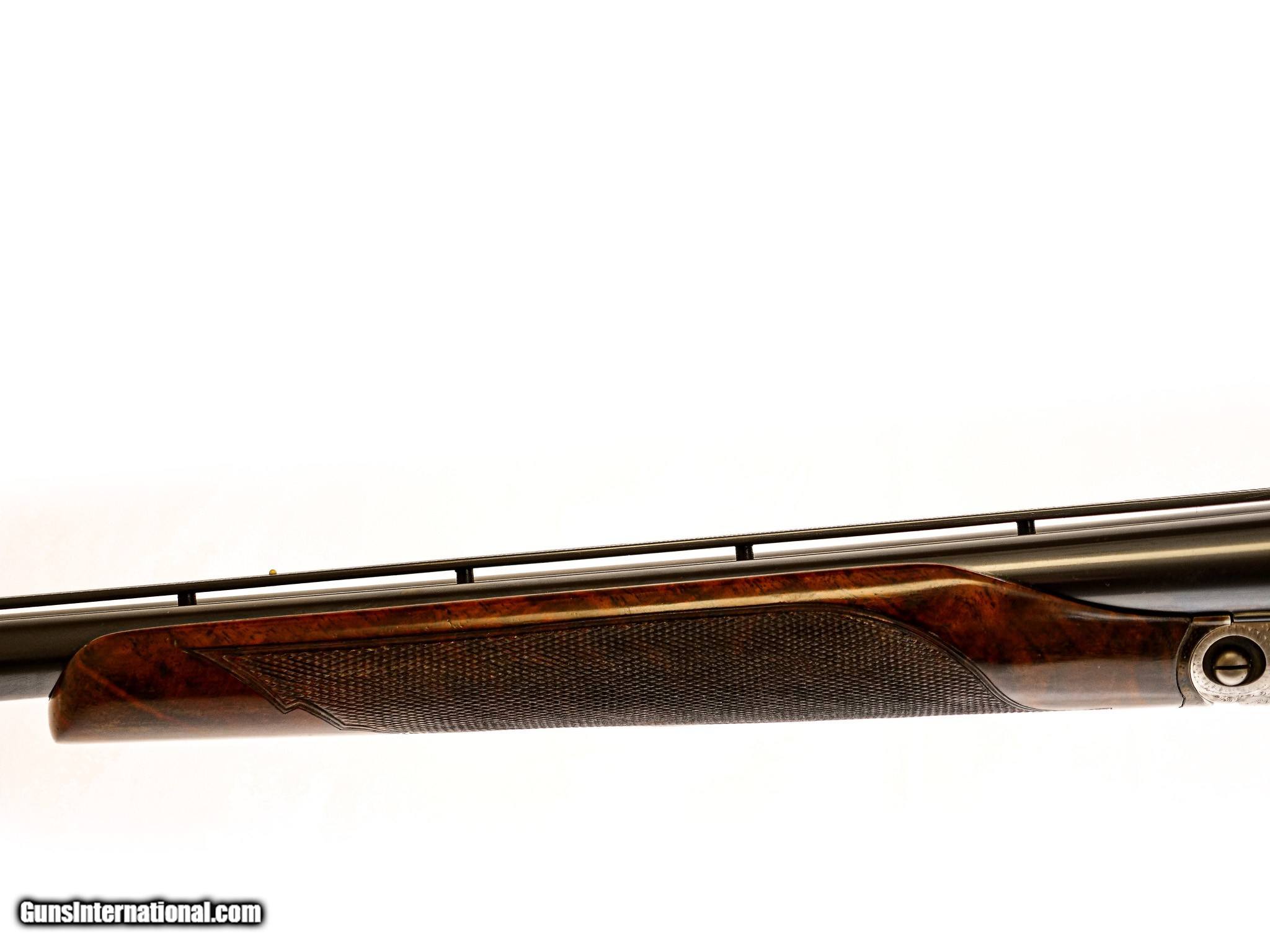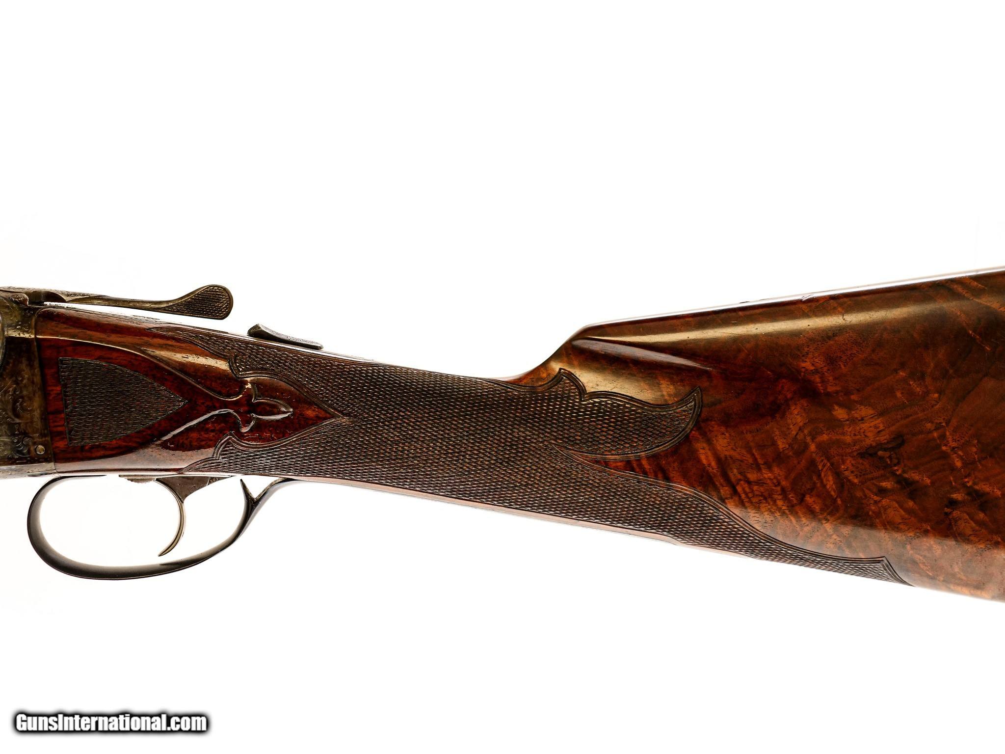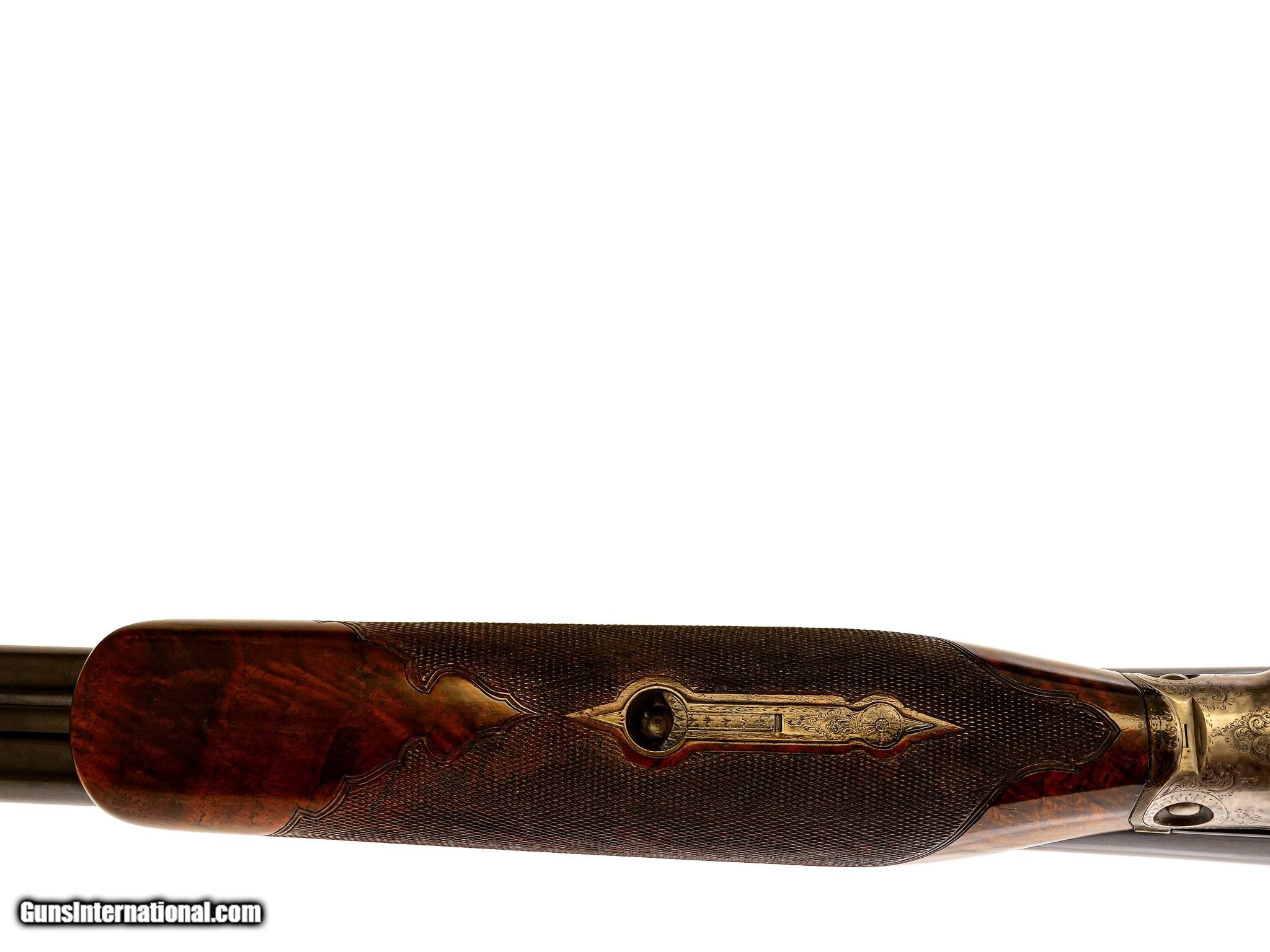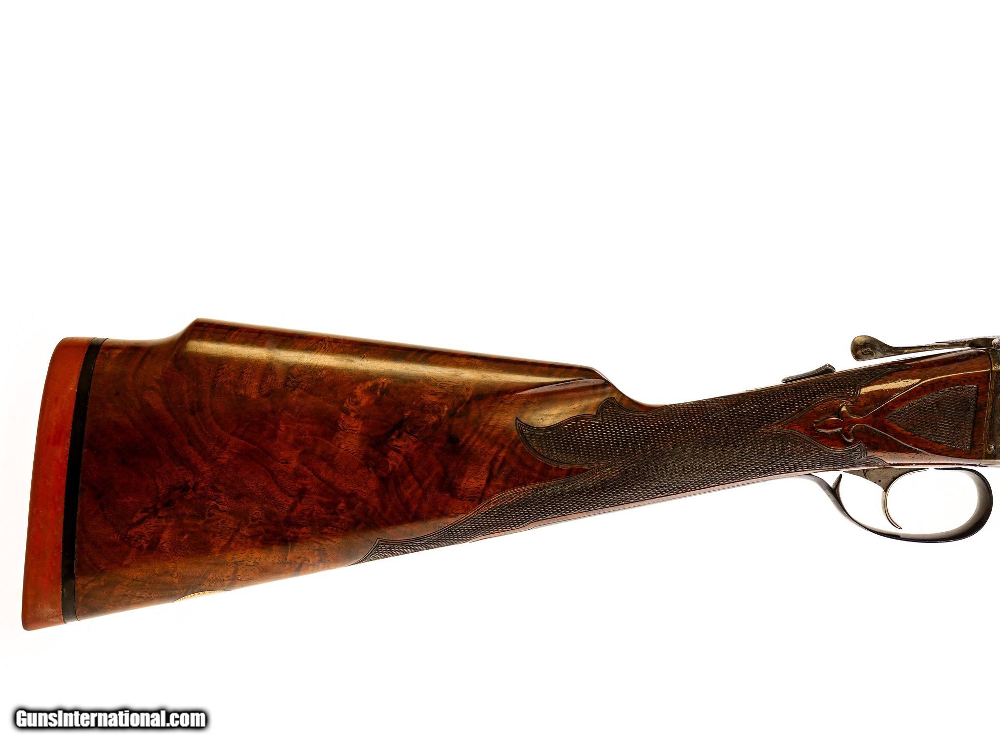 Description: Parker - BHE Grade, SxS, 12ga. 30" Barrels Choked M/F. Highly figured walnut straight grip Monte Carlo stock, period red recoil pad, beavertail forend with scalloped lug, factory ventilated rib, strong 75% case coloring, single selective trigger, automatic ejectors, gold oval, extremely clean gun and a super rare configuration, 232,xxx serial number Inv: 52230 8 lbs. 3 oz. 14 ¼” x 1 ¼” x 2" Monte Carlo $18,999.00 SOLD |