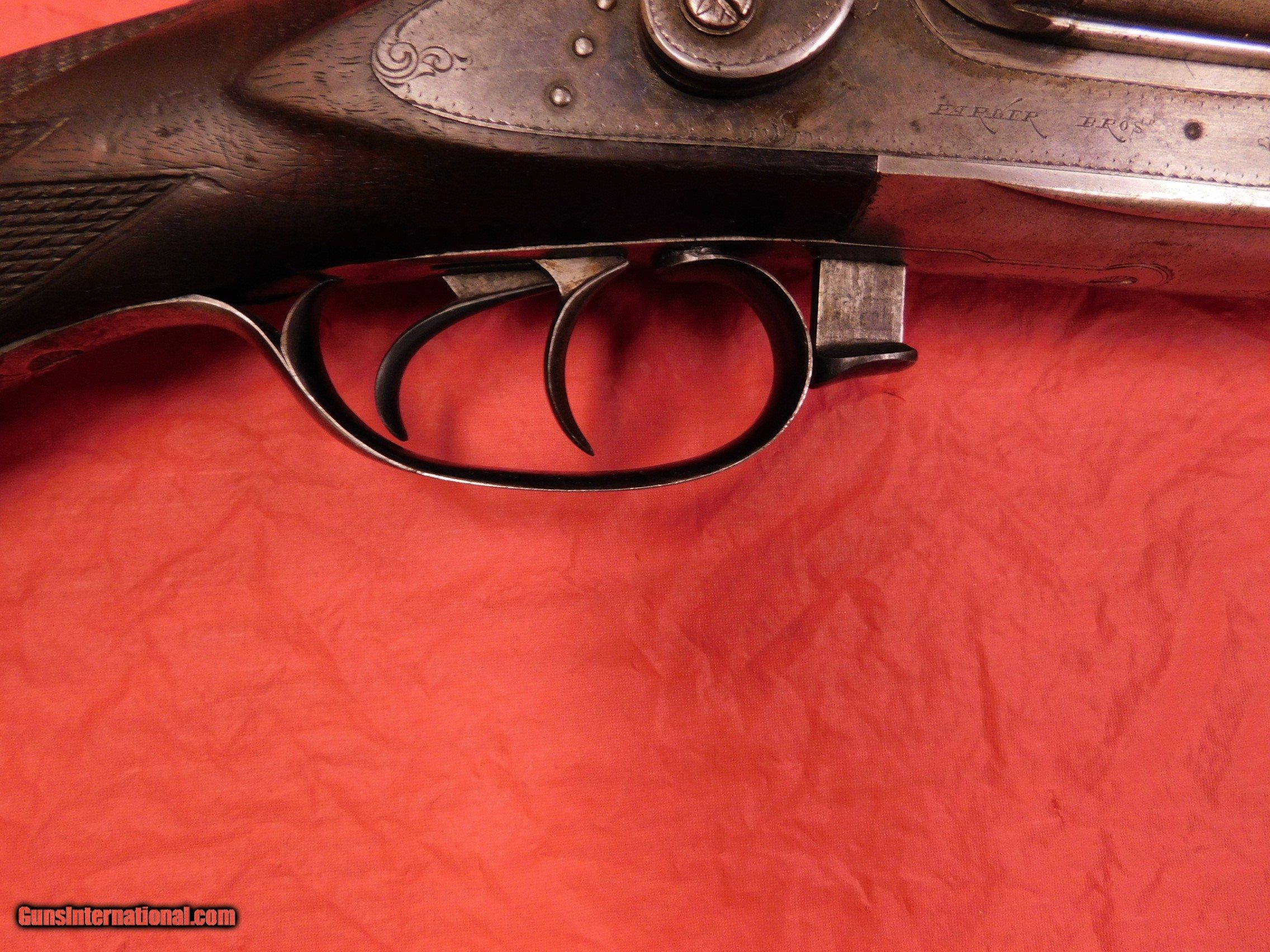 Description: parker bros hammer double, 10 gauge, 30" barrel, serial # 9284, three iron fine Turkish Damascus barrels, rare old side by side shotgun.The gun functions properly, the barrels are on face, hammers, triggers and locks work right, they pass the ring test, the bore does have pitting in areas but also some shine. A rare old side by side 10 gauge. Price $1000 and $45 shipping SOLD Manufacturer: parker bros Model: underlifter side by side Serial Number: 9284 Gauge Info: 10 |