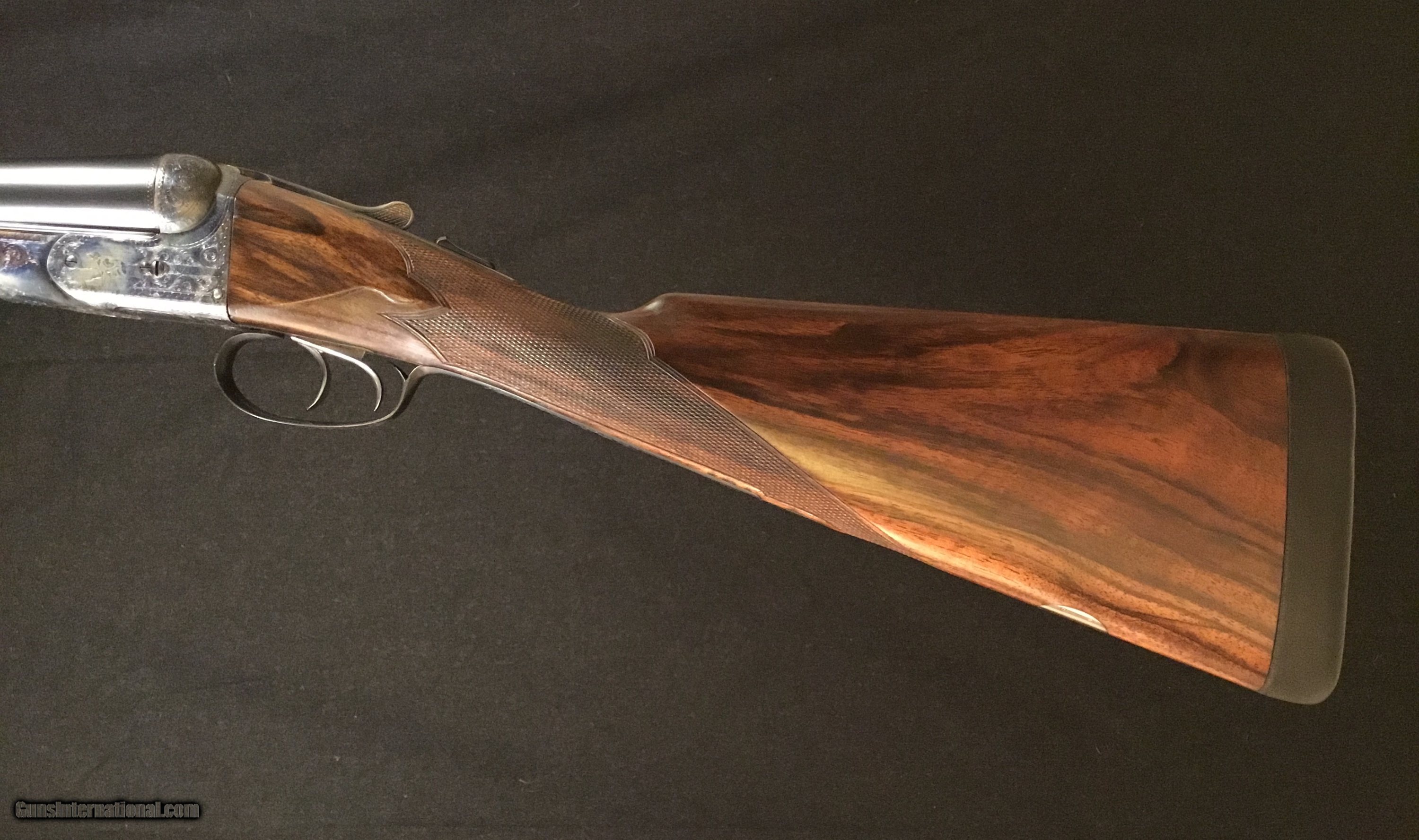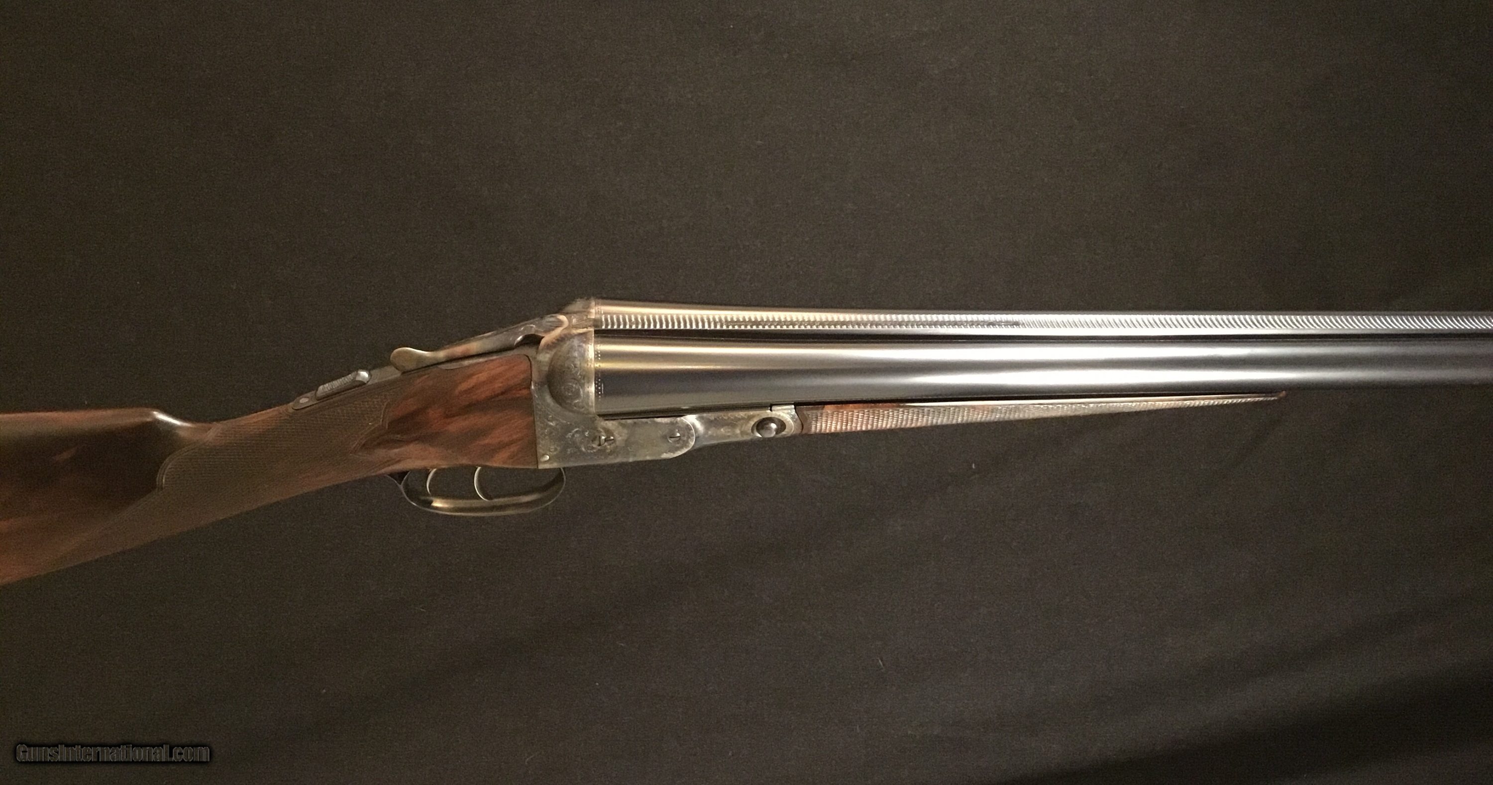 Description: Very nicely done refurbished Parker Bros. C grade. Great case colors and bluing, re-stocked with fantastic dimensions. Very tight lock-up, opened to 2 3/4” chambers and 32” barrels make this, nearly 100 year old gun ready to go another 100 years. SOLD Curio/Relic: Yes Manufacturer: Parker Bros. Model: CHE Serial Number: 208xxx Bore: .729 Both Barrels Chambers: 2 3/4” Ejectors: Yes Metal Condition: Excellent Wood Condition: Excellent Bore Condition: Mirror Barrels: 32” Barrel Type: SxS Action: Box Lock Triggers: Double Gauge Info: 12 Stock: Straight Hand Stock Comb: 1 9/16” Stock Heel: 2” Stock Cast: OFF 1/4” Heel and toe Fore End: Splinter Butt Pad: Leather Covered Pad LOP: 14 1/2” over a 1” LCP Rib: Filed Concaved Finish: Oil Weight: 7lbs 4oz Sights: Front Bead Manufacture Date: 1925 Chokes: Teague Screw-In Engraving: C Grade Pattern Case: Hard Leather Minimum Wall Thickness Left: .033 Minimum Wall Thickness Right: .030 |