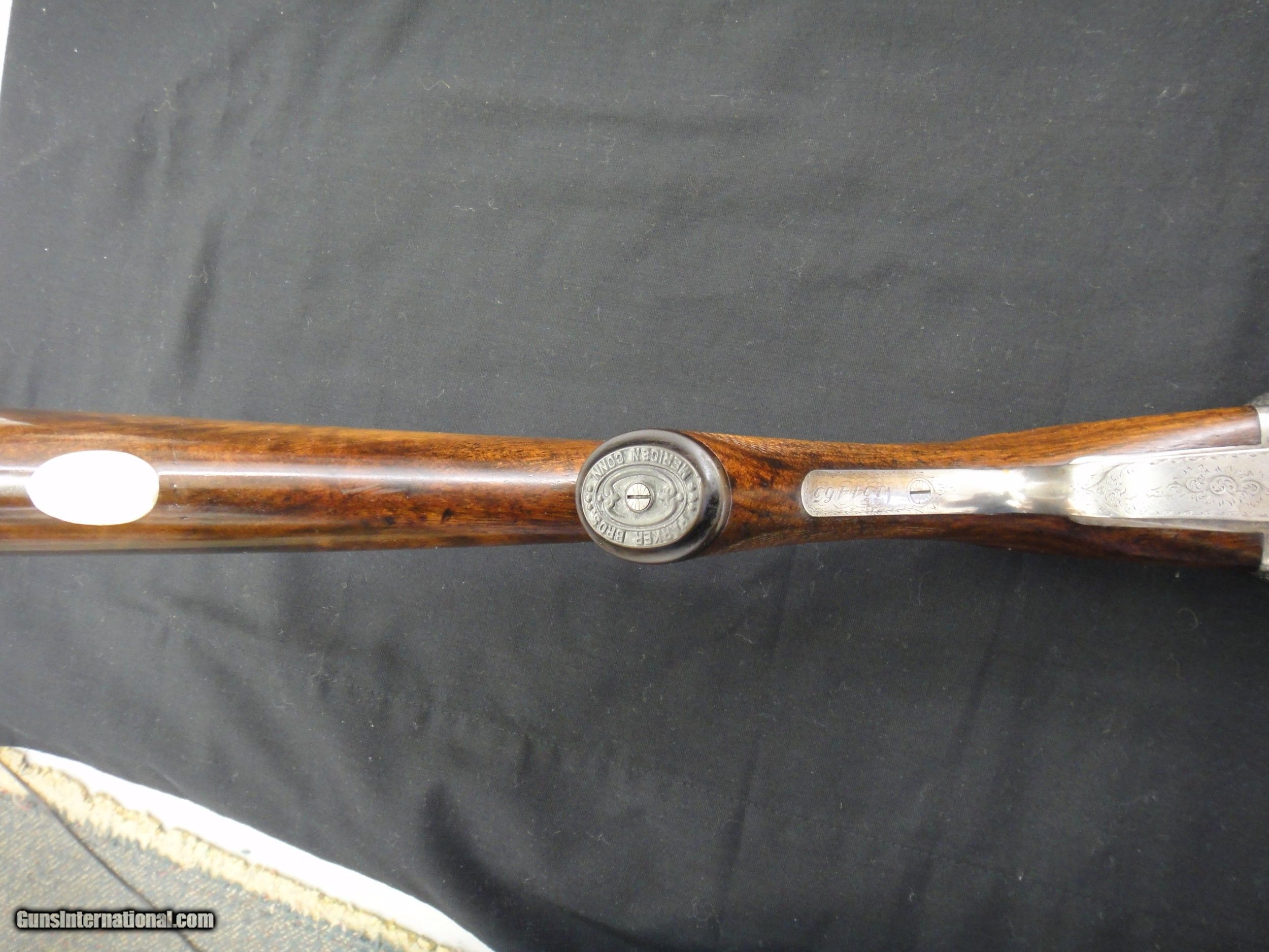 Description: Here we have a Parker DH 12 gauge, #2 frame with 28" damascus barrels choked IM/F. The bores are absoulutely immaculate and shine like mirrors, but they have never been honed. The barrels are exceptionally stout. The minimum wall thickness exceeds 40 thou on each tube. 2 5/8" chambers. She weighs in at a respectable 7 lbs 13 ozs. No dents, bulges or rust on either barrel. I do not see any evidence that a screw has been turned on this gun since it left the factory. Aside from hand rubbed oil finish maintenance to the stocks, this gun appears to be completely factory original. Steel skeleton butt plate. Lock up is perfectly tight with top lever just slightly left of center. Original Parker brass sighting bead. The wood to metal fit throughout is truly amazing for any gun, let alone a gun of this age. Case colors remaining only in protected areas. Engraving is still crisp and clear, and presents better in person than in the photos. Factory LOP is right about 14" and the DAC is a generous 1 3/4". If you prefer a vintage gun that has never been restored in any way, this is the one for you. Automatic safety works perfectly, as does every other mechanical function of this gun. I will let the photos tell the rest of the story. $60 insured priority mail shipping to lower 48. 3 day non-disassembly, non-firing inspection period runs from receipt by your FFL. Priced to sell; there is no better buy on a DH anywhere on the internet. Feel free to ask any questions. You may call or text me at 208-946-3917. SOLD Curio/Relic: Yes Manufacturer: Parker Bros Model: DH Caliber Info: 12 |