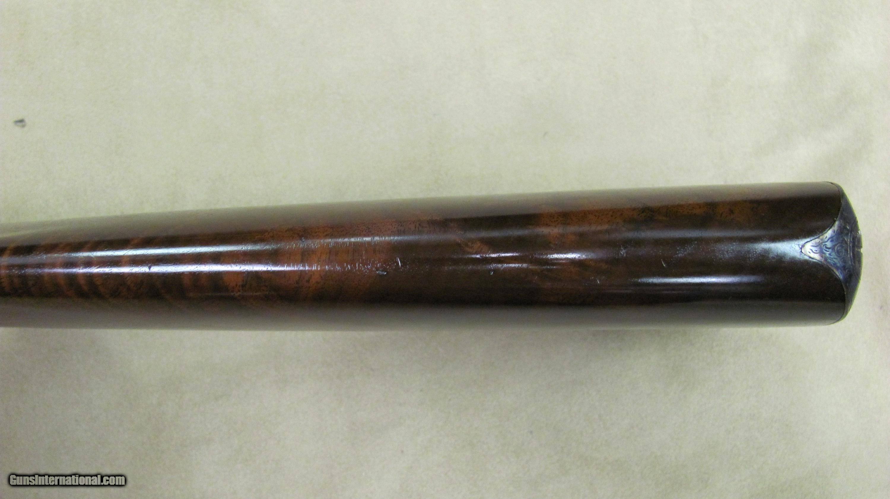 Description: Parker Bros. DHE grade double barrel shotgun that is on a number 1 frame. It was originally a 16 gauge gun that has been sleeved down to 20 gauge. The barrels are marked Titanic Steel. This Parker is in very good condition and the stock and forend wood have no cracks or chips. Barrels are 25" long, have excellent bores and are choked Imp. Cyl and Mod. Weight is 7.0 lbs., LOP is 14 1/4", DAC is 1 5/8" and DAH is 2 5/8". Barrel chambers are 2 3/4". SOLD Curio/Relic: Yes Manufacturer: Parker Bros. Model: DHE Serial Number: 225966 Chambers: 2 3/4 Ejectors: Yes Condition: Very Good Metal Condition: Excellent Wood Condition: Excellent Bore Condition: Excellent Gauge Info: 20 Gauge Stock Comb: 1 5/8 Stock Heel: 2 5/8 Fore End: Splinter Butt Pad: Skeleton Metal LOP: 14 1/4 Weight: 7.0 Lbs Choke Left: Mod. Choke Right: Imp. Cyl. Proof:Nitro: Yes |