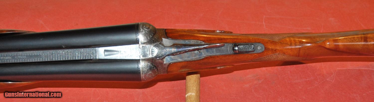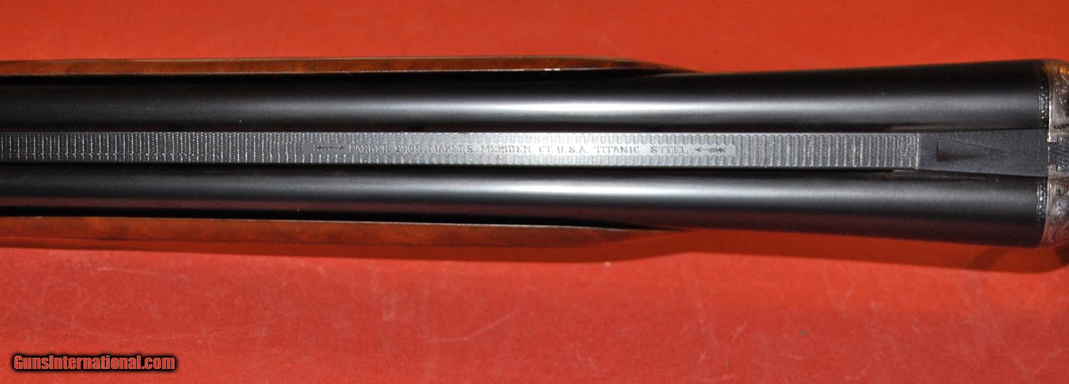 Description: Parker 16ga DHE grade with a rare factory ventilated rib.Built on a #1 frame,this gun has 30"barrels choked modified (.020") and full (.043").Other features include a pistol grip stock,single selective trigger,ejectors,a skelton buttplate and a factory beavertail forend.The gun retains 50%of the case colors and 98% of the blue from an old restoration,either factory or early Del Greco.The borea are bright and free of rust,dents,or pits.The barrels lock up tightly with the top lever to the right of center.This is a great dove,pheasant,or clays gun.Stock dimensions are 141/4"x 11/2" x21/4".Weight is 7-2.C&R eligible. SOLD Curio/Relic: Yes Manufacturer: Parker Model: DHE Serial Number: 222113 Chambers: 23/4 Ejectors: Yes Wood Condition: excellent Bore Condition: excellent Triggers: single selective Stock Dimensions: 141/4"x11/2"x21/4 Fore End: Beavertail Rib: factory ventilated Weight: 7-2 Choke Left: full (,043") Choke Right: modified (.020") |