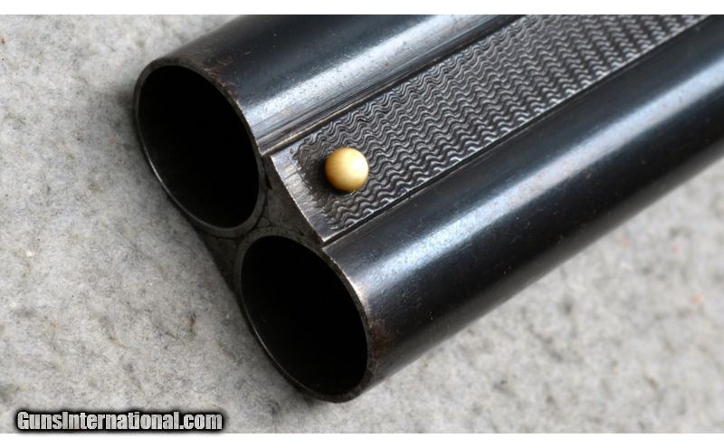Description: Parker GHE. Gun letters as a cancelled order with the PGCA. Some original case showing at upper receiver and lock plate. Appears original except for cold bluing and pad. The overall condition is good to very good with about 65% case coloring. The barrel appears to be intact. However, it has been cold blued over damascus. There is no evidence of pitting in the bores. SOLD Manufacturer: Parker sources indicate 1908 - 1910 production. Caliber Info: 16 Gauge. Chambers: Side by Side. Metal Condition: Very Good. Cold-Blued over Damascus. Wood Condition: Good, shows some finish wear from normal use and due to its age. Bore Condition: Good condition for the age of the gun. Barrels: 30 inch blued barrel with solid rib. Triggers: Double trigger. Stock: Checkered Walnut. Stock Dimensions: 14 1/4 inch LOP to front trigger, 1 3/4 inch DAC, 2 3/4 inch DAH Fore End: Checkered walnut splinter. Butt Pad: Brown Pachmayr pad. Weight: 6 3/4 lbs. Sights: Ivory Front and Mid bead on solid rib. Chokes: Full/Mod. Item Location: Hazelwood, MO |