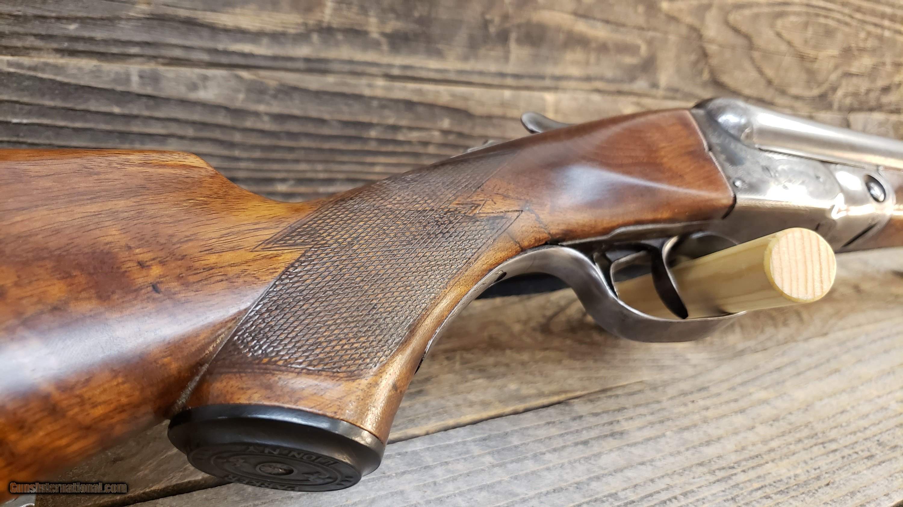 Description: Up for sale is a Parker GHE in 16 Gauge, featuring ejectors, made in 1917. Built on a Frame size 0. Barrels are made out of stunning damascus steel. This gun is in remarkable shape for being 106 years old. Full choke on left and right barrels LOP from rear trigger = 13 3/8" LOP from front trigger = 14 1/4" 46 1/4" OAL 30” Barrel Internet sales are managed 10am to 6pm MST M-F. Our inventory listed for sale is not live, meaning just because you click “BUY NOW” doesn’t mean you have purchased the firearm. We consider a sale final once we have received payment. All our listings are also available for sale in our retail store. Shipping starts at $75 for long guns and $50 for handguns No sales or shipping to California, Hawaii, New Jersey, New York SOLD Shotgun Gauge: 16 Gauge Manufacturer: Parker Bros Model: GHE Barrel Length: 30 Ejectors: Yes Barrels: 2 LOP: 14.25 Choke Left: Full Choke Right: Full Engraving: Yes |