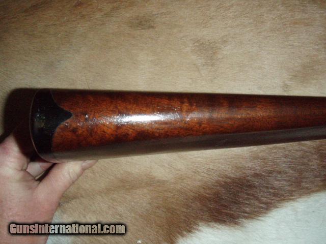 You are on a used Parker Bros Model PH very classy engraving, 30" solid rib fine damascus print with Full & Fulll fixed chokes, extractors, inside of barrels have light freckles as you would expect from a gun of this age. Trigger guard was replaced to go straight english style stock (#80076), LOP 14 1/8", stock has correct butt plate shows it had a live pigeon comb and had been lightened with correct medallion. Forearm matches the receiver. Overall condition 80% please see pictures, shows vintage petina and darkening, no pitting. Has a dog leg on the breech lever that we have seen several times from Parker's of this era (Parker upgrade or custom gun shop upgrade). Screws are in very good shape, with strong engraving for a gun of this vintage.