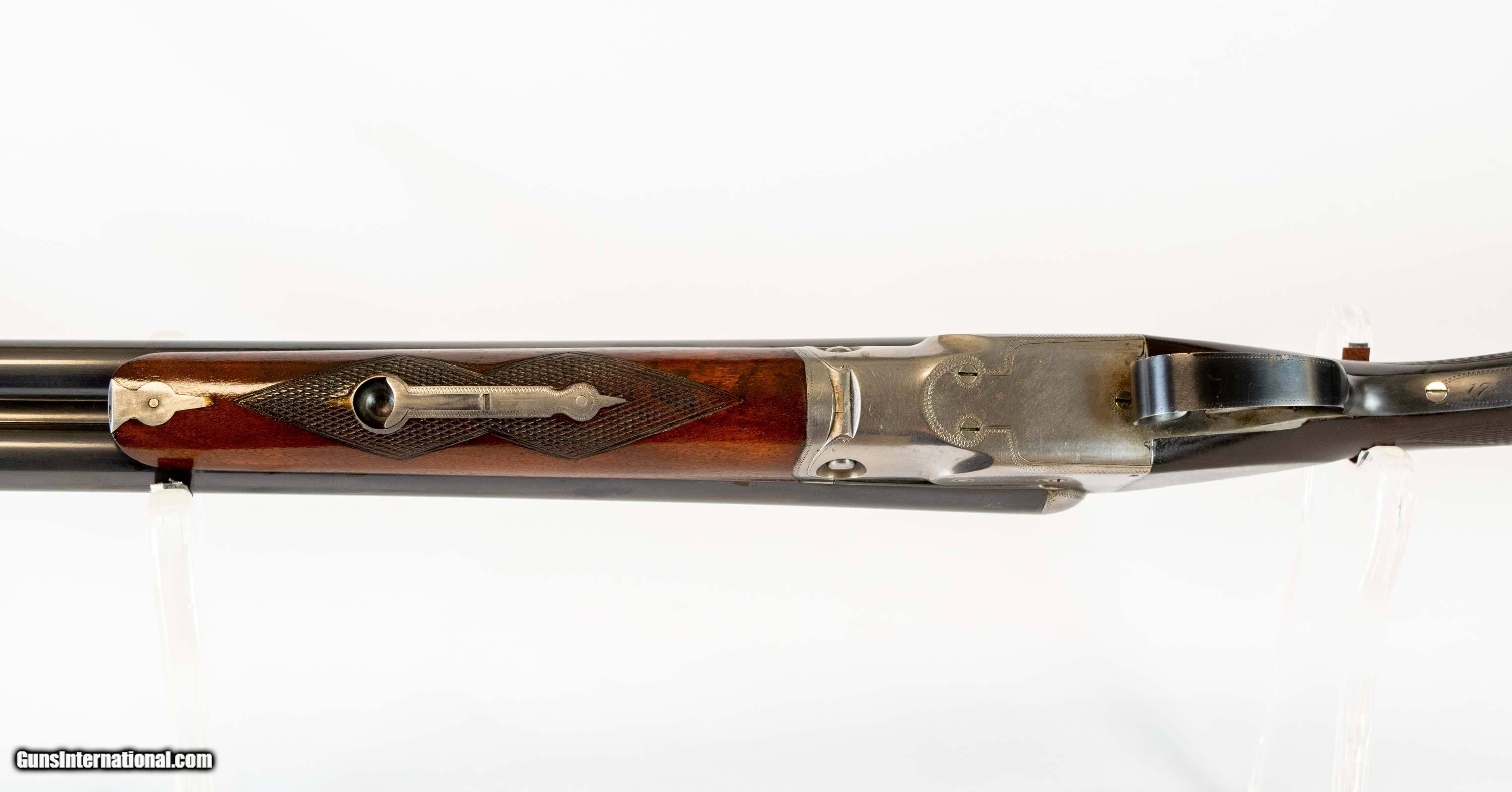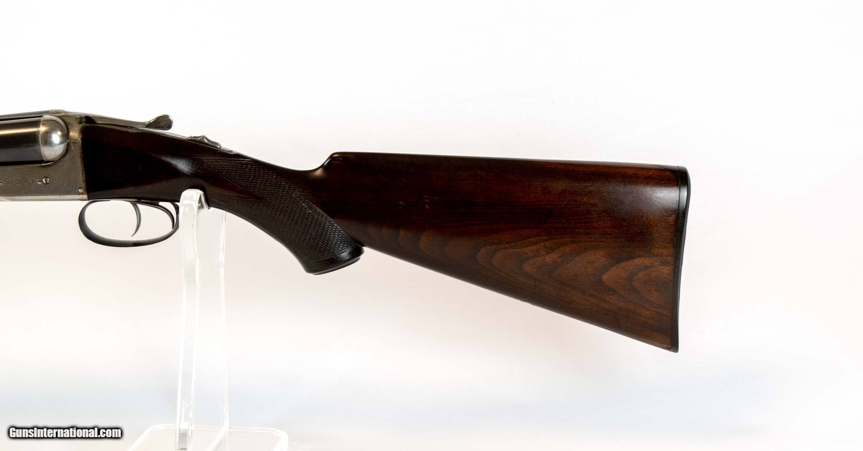 Manufacturer: Parker Bros., Meriden, CT Model: VH (Vulcan Grade) Serial Number: 172320 (c.1915 production) Gauge: 12 Gauge Chambers: 2 5/8″ (original) Barrel Length: 30″ Vulcan Steel barrels Frame Size: 1 1/2 Chokes: Fixed – Left Full (.030) / Right Extra Full (.040) Triggers: Double Ejectors/Extractors: Extractors Length of Pull (LOP): 14 1/4″ Drop at Comb: 1 1/2″ Drop at Heel: 2 5/8″ Weight: 7 lbs. 9 oz. Cast: Right-Hand Fore-end: Splinter with Deeley latch release Butt: Original Parker Bros. hard butt plate Markings: Rib marked “PARKER BROS. MAKERS MERIDEN CT. U.S.A. VULCAN STEEL” Patents: Watertable marked with U.S. Pat. dates (1887, 1905) and Grade “V” Condition: Very Good Consignment Questions? Call or text Don at 262-869-0002. All listings are subject to prior sale in our retail store. We make every effort to remove listings promptly if an item is no longer available. Shotgun Gauge: 12 Gauge Price: $1,800.00 Contact Seller |