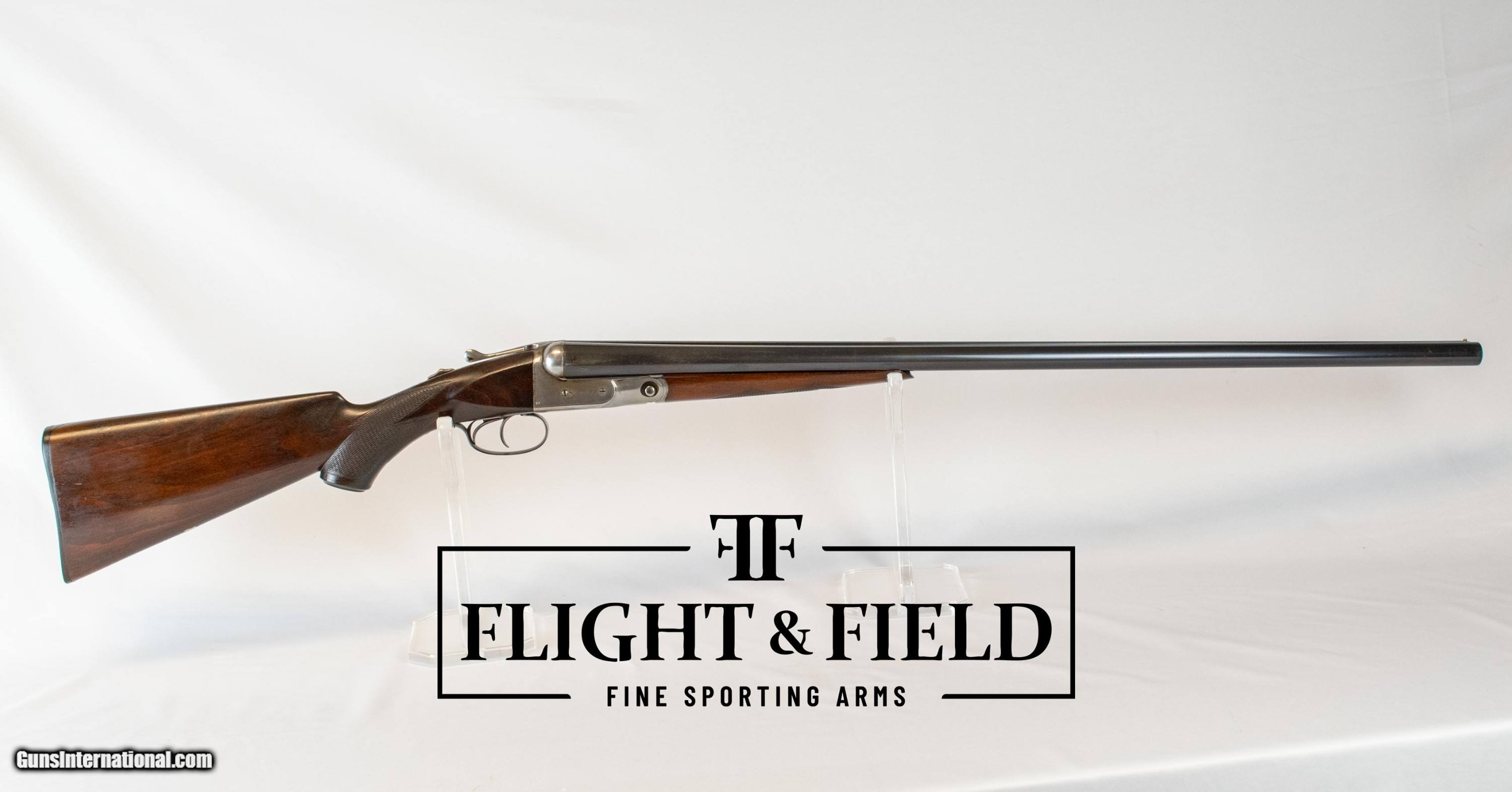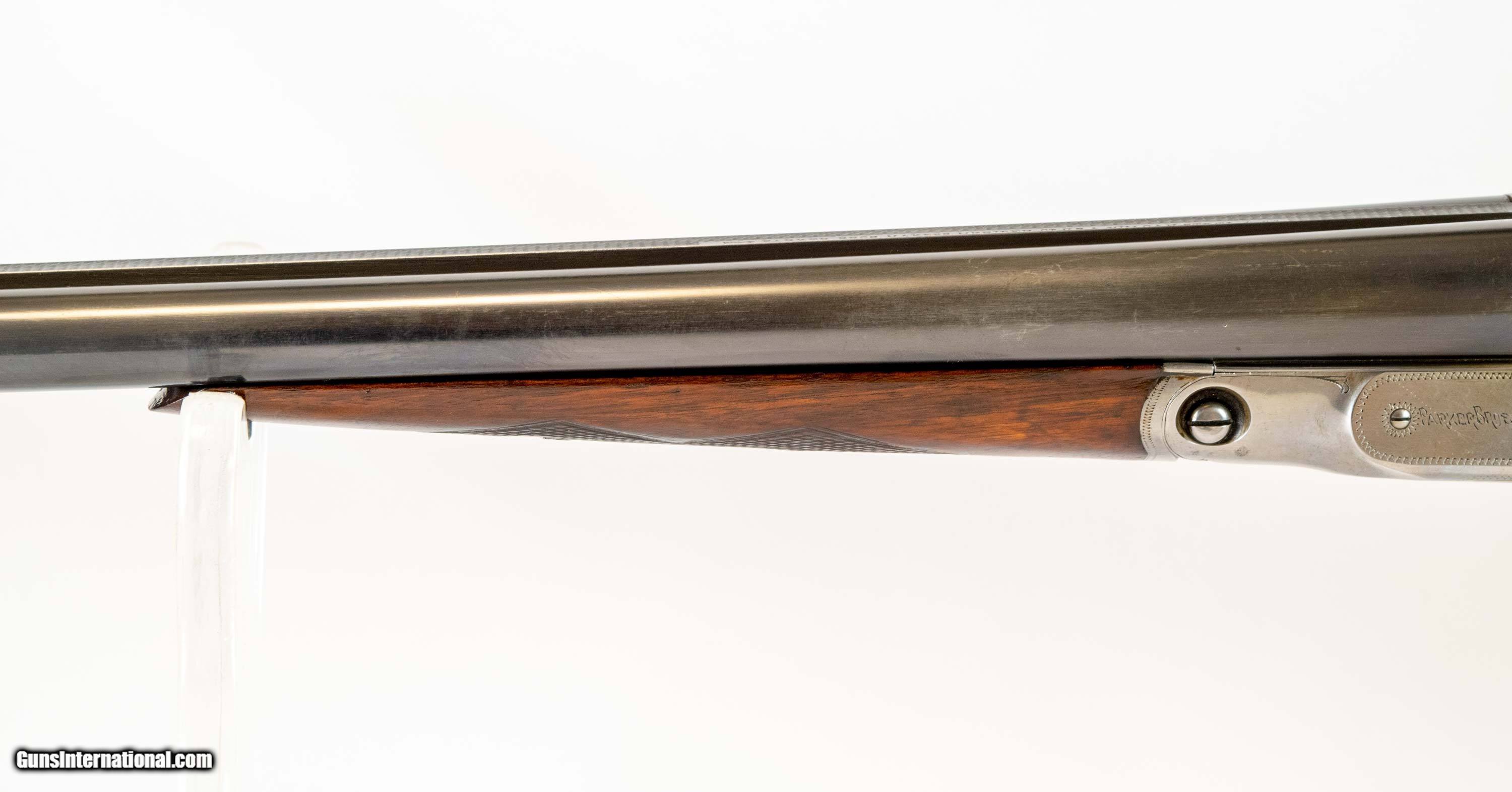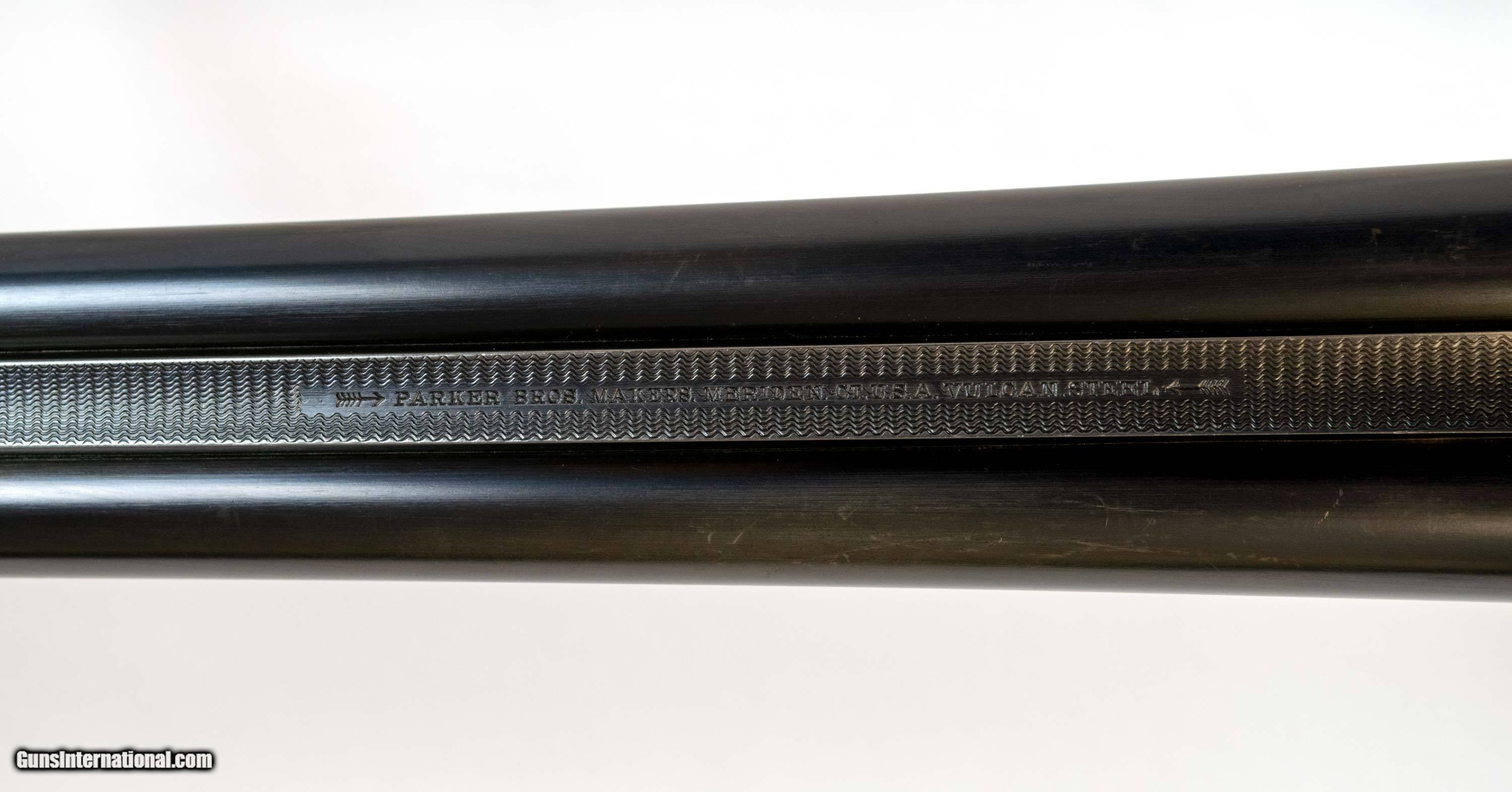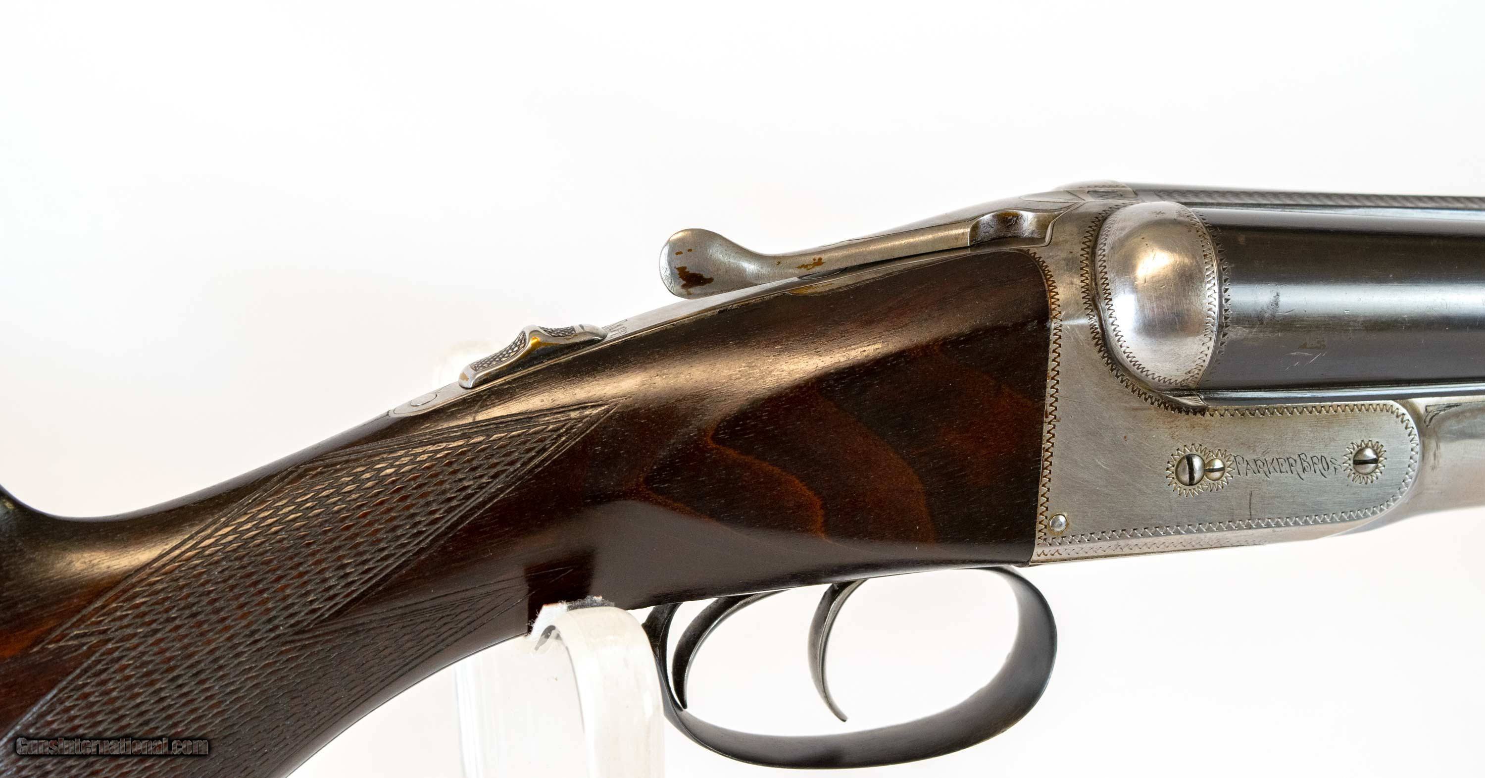 Description: Offered here is a fine Parker Bros. VH Grade 12 Gauge Side-by-Side, manufactured in Meriden, Connecticut around 1915. The VH (Vulcan Grade) was Parker’s most popular working-grade shotgun, valued for its durability, balance, and shootability while still featuring the quality fit and finish that made Parker “Old Reliable.” This example is built on the 1 1/2 frame, weighing in at 7 lbs. 9 oz. — a classic and desirable configuration for 12 gauge. It wears 30″ Vulcan Steel barrels choked Full/Extra Full, making it a capable option for trap, turkey, or waterfowl. The stock and splinter fore-end retain attractive walnut grain with original hand-cut checkering. The Parker Bros. butt plate remains intact. Case colors have faded with time, but engraving and markings remain sharp. The bores are clean and bright, the action locks up tight, and the mechanical function is solid. The watertable and barrel flats are properly stamped with serial number 172XXX, Grade “V,” Parker Bros. patent dates, and barrel steel proof marks. Condition Highlights
