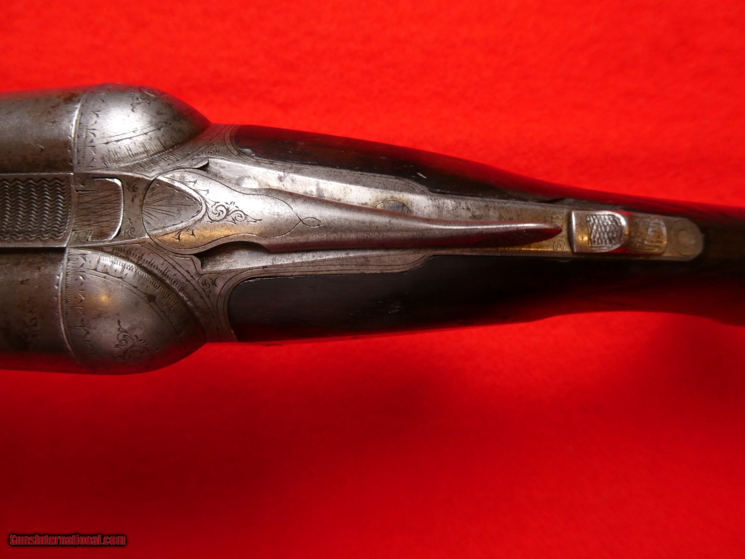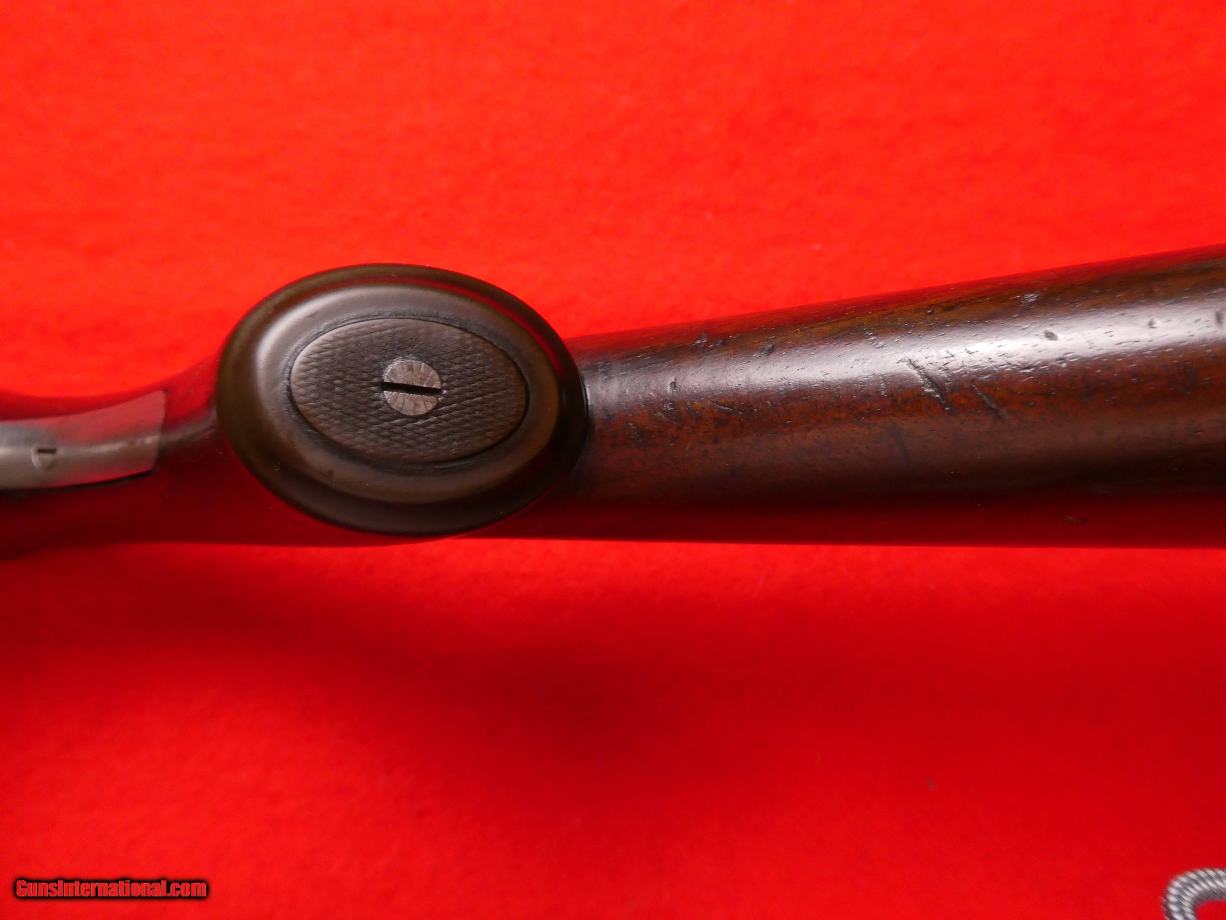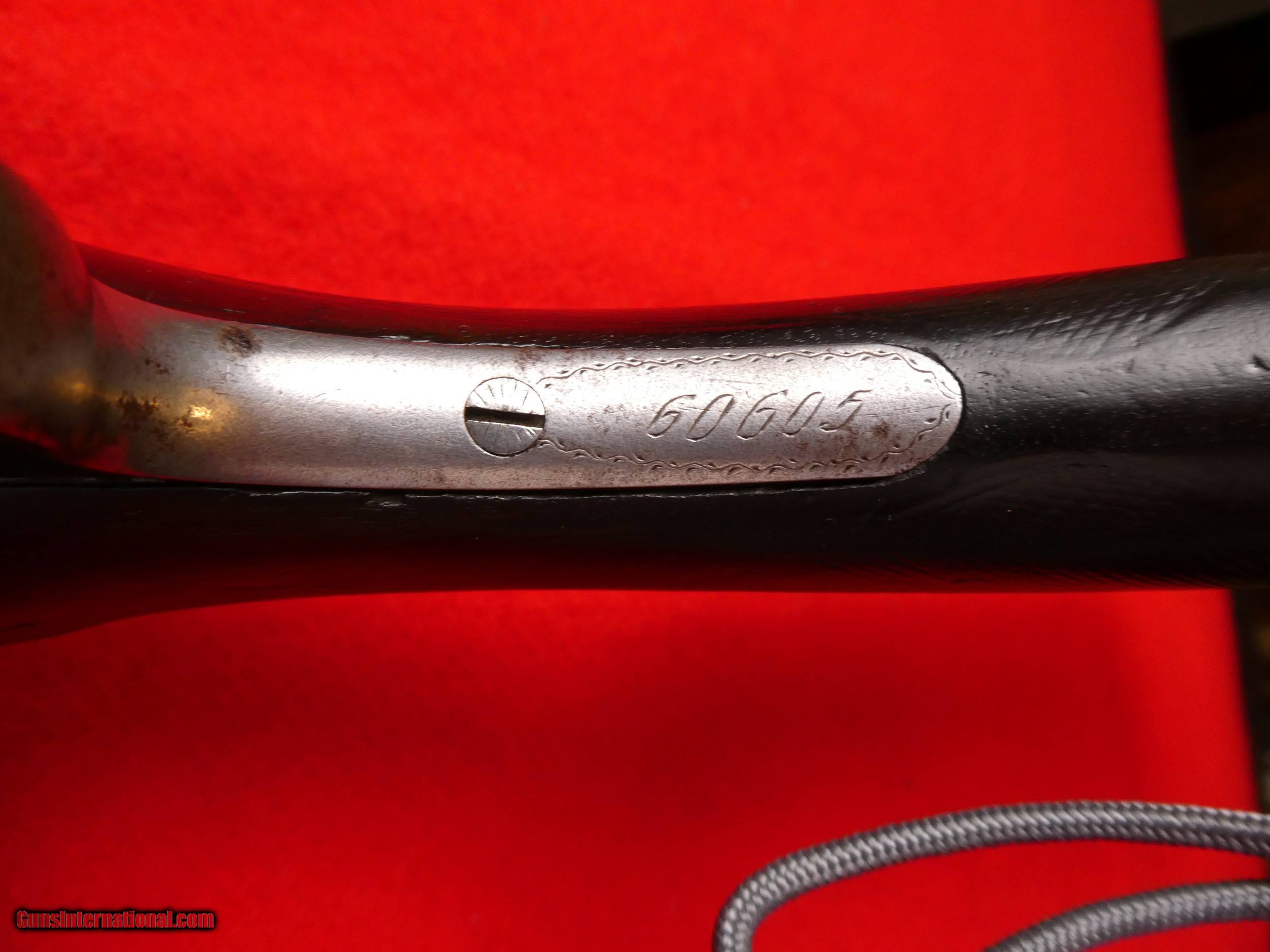 Description: Antique Parker Bros. model GH 12 ga. Frame engraving is standard GH pattern featuring phesants.Gun retains no case colors on frame and 30% + of damascus pattern on barrels. Wood finish is very worn with checkering still visible.Ser # 60605. Mfg in 1890. Action is top break boxlock #1 frame. Weight is 7#, Barrel lenght is 30",LOP is 14". Gun is Lightweight #1 frame. Damascus steel. Action locks up tight. Overall still a very nice old collectable shotgun. Antique can be shipped direct to purchaser no FFL needed. SOLD Antique: Yes |