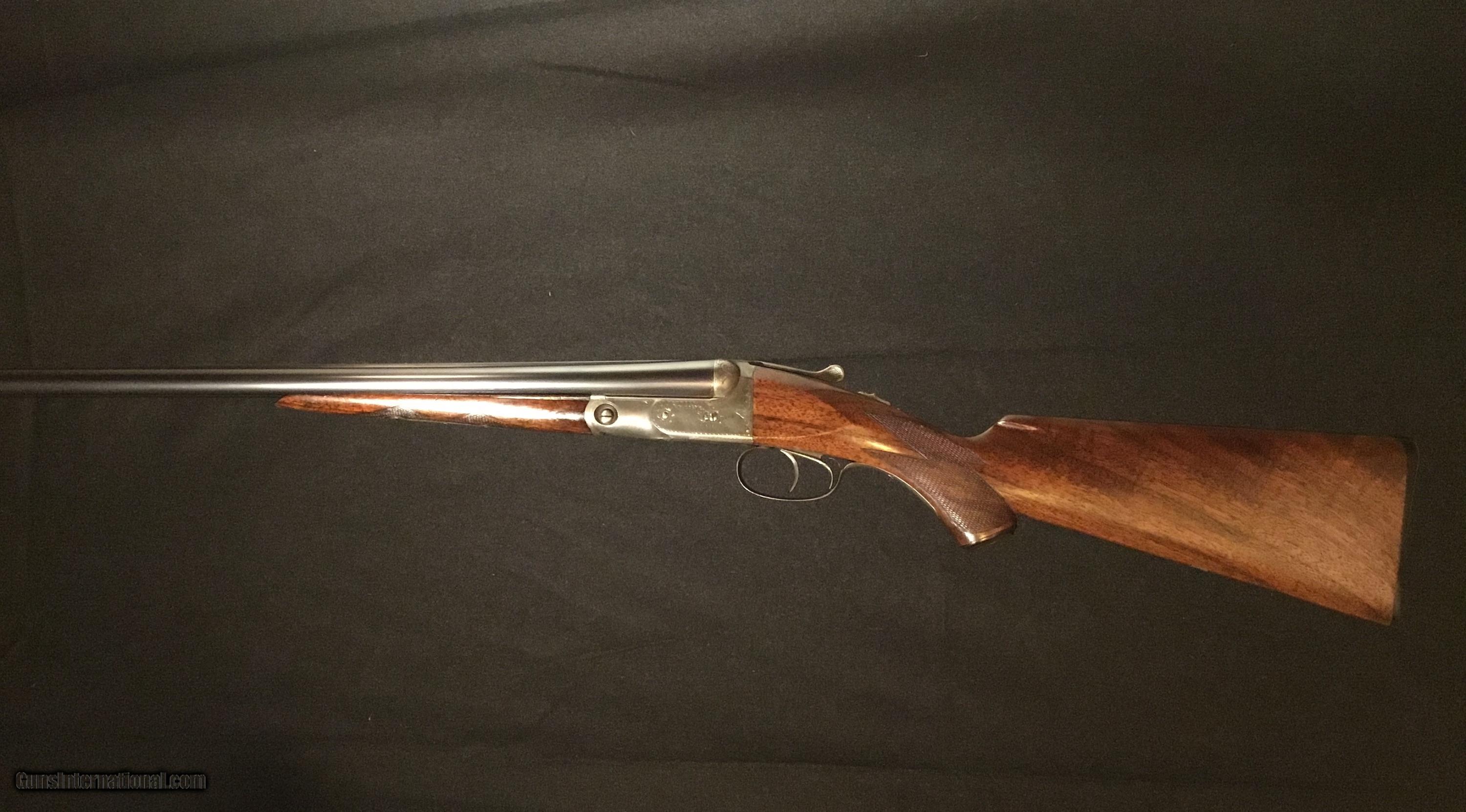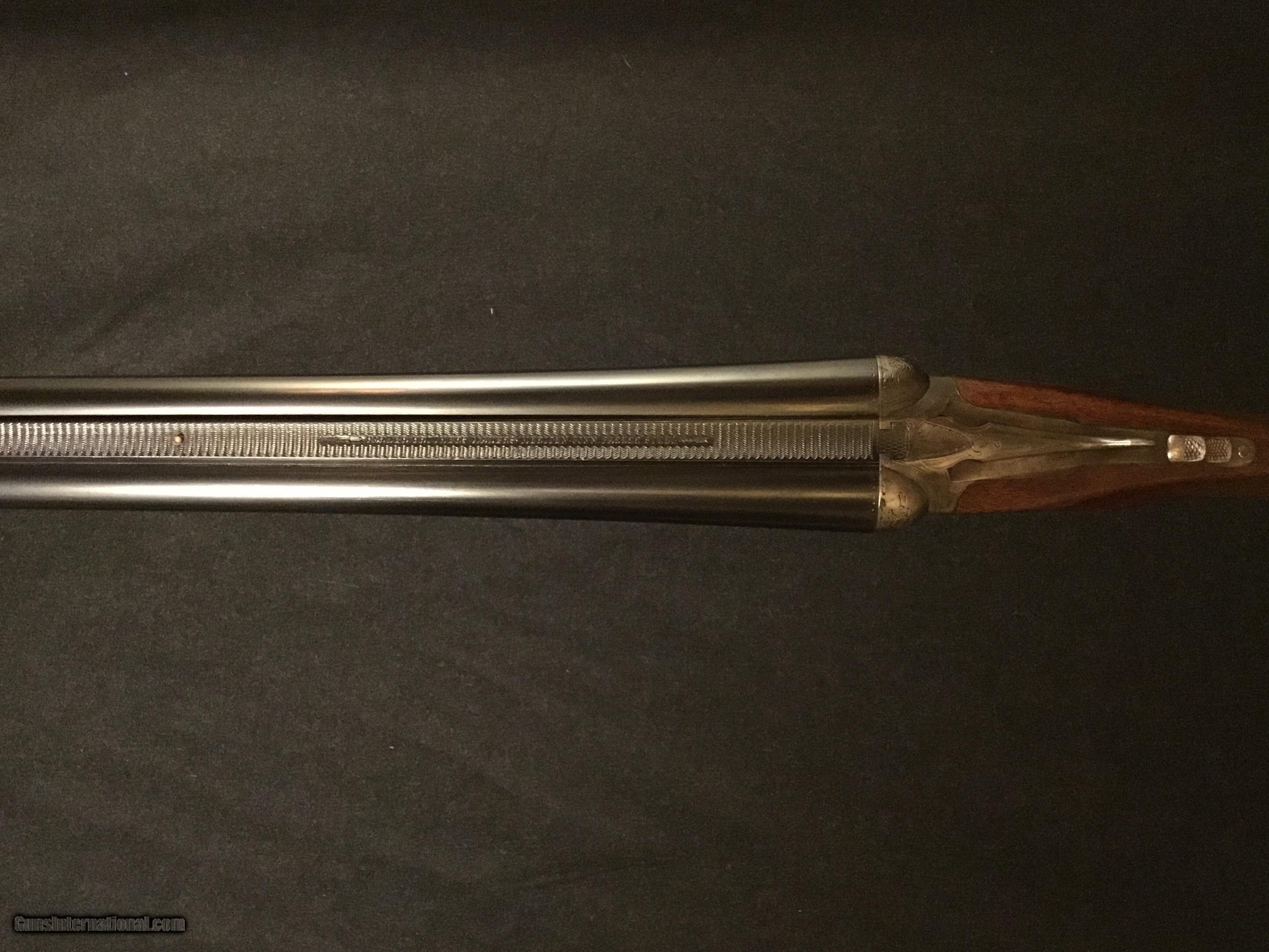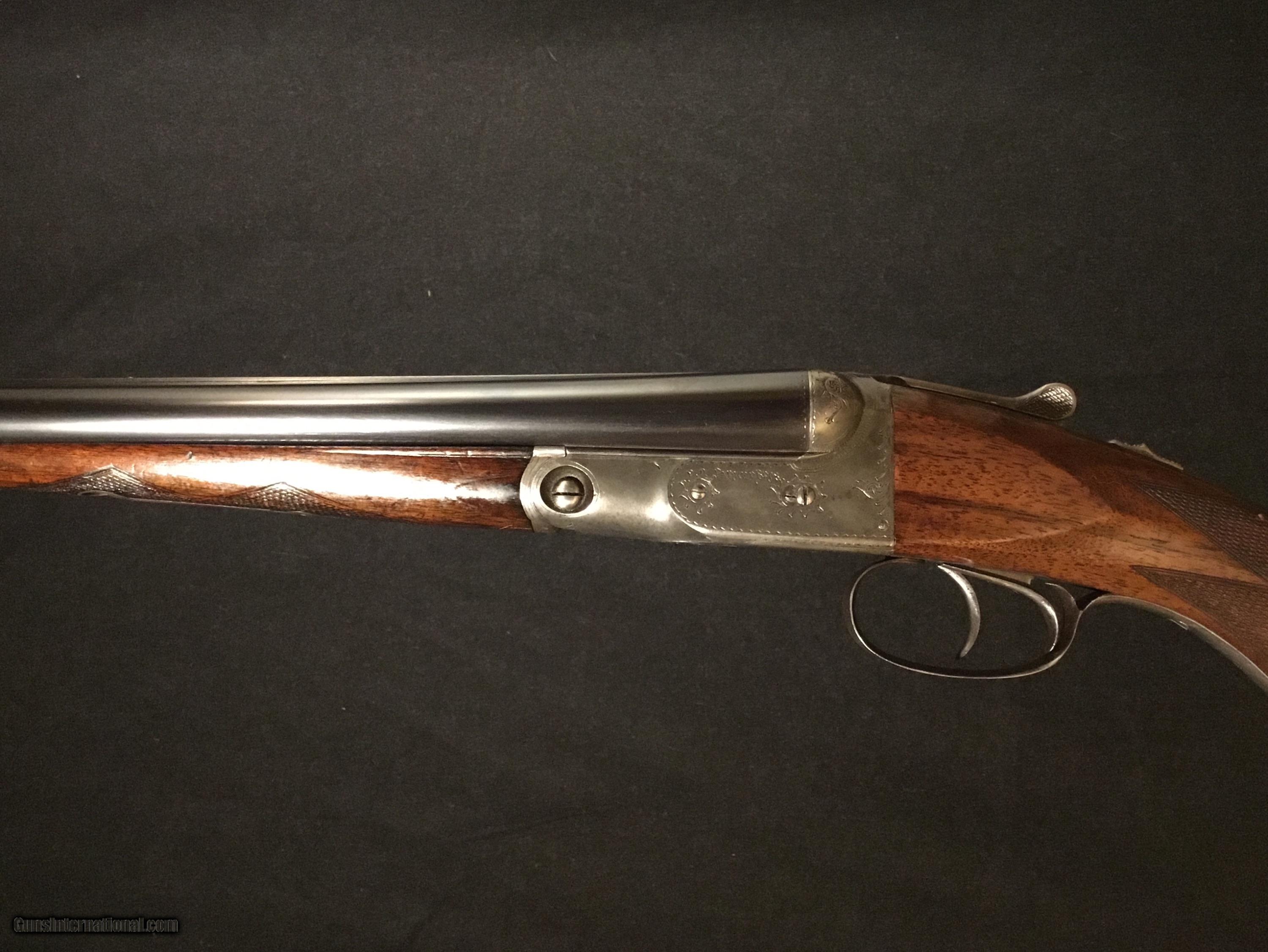 Description: Parker PHE in Rare Fluid Steel Barrels and 20ga. Make: Parker Bros. Model: PHE Gauge: 20 (rare) Action: Boxlock Trigger: Double Choke: .006 (IC), .019 (Imp.Mod.) Chambers: 2 9/16” Barrel Length: 28″ Fluid steel (rare for a P grade) Stock: Pistol Grip, splinter forend Length of Pull: 14 5/8” Drop Comb: 1 7/16” Drop Heel: 2” Cast: Zero Weight: 6lbs 6oz Price: $4,500 "REDUCED" $3,950.00 Additional Info: Less than 100 PHE 20ga. made, s/n 177xxx 1918 made gun, Frame size 0, Ejectors (rare), Bore diameters- .622 both barrels, Wall thickness- .032 both barrels, Twin beads, SOLD Curio/Relic: Yes Rib: Concave |