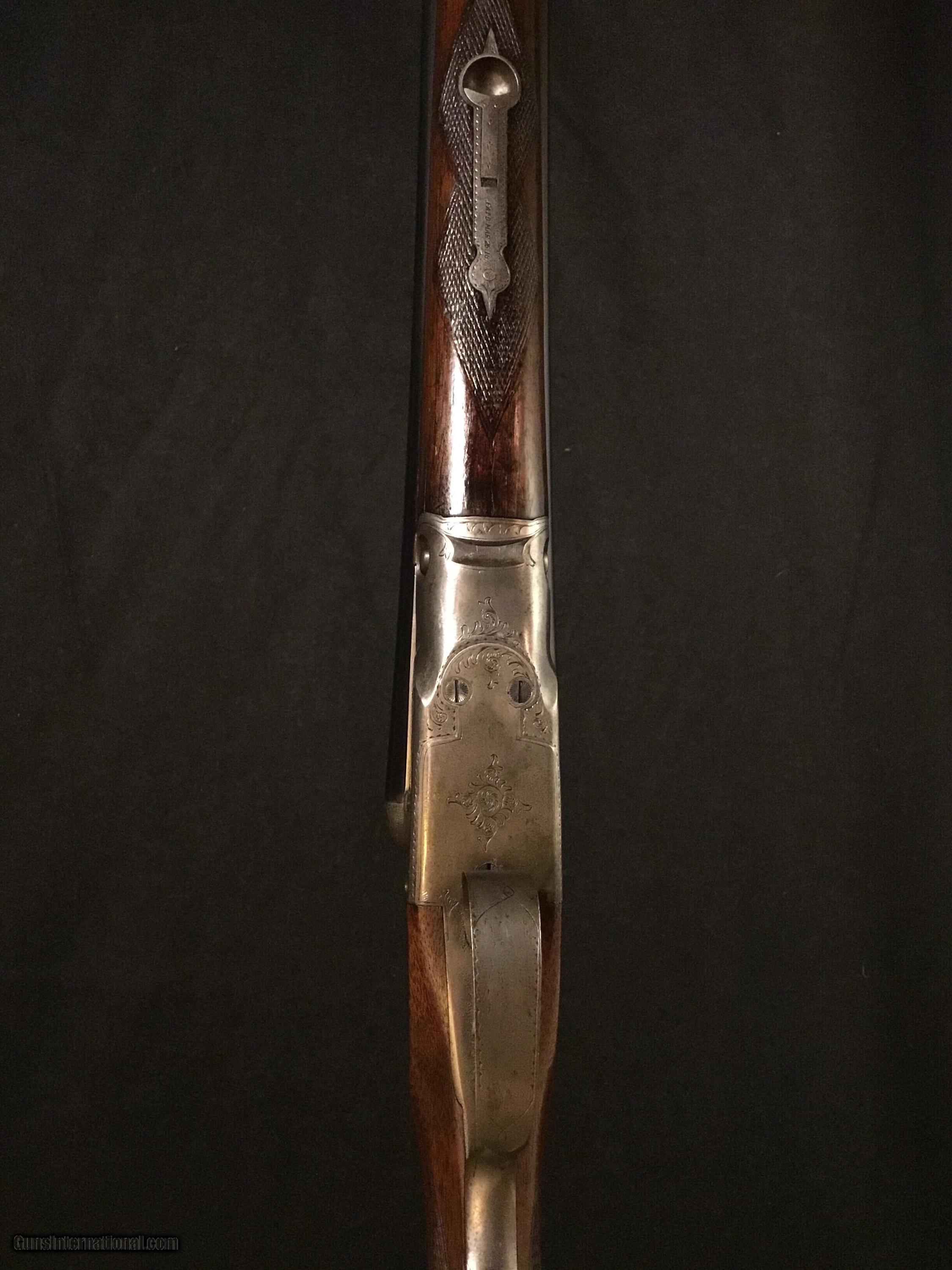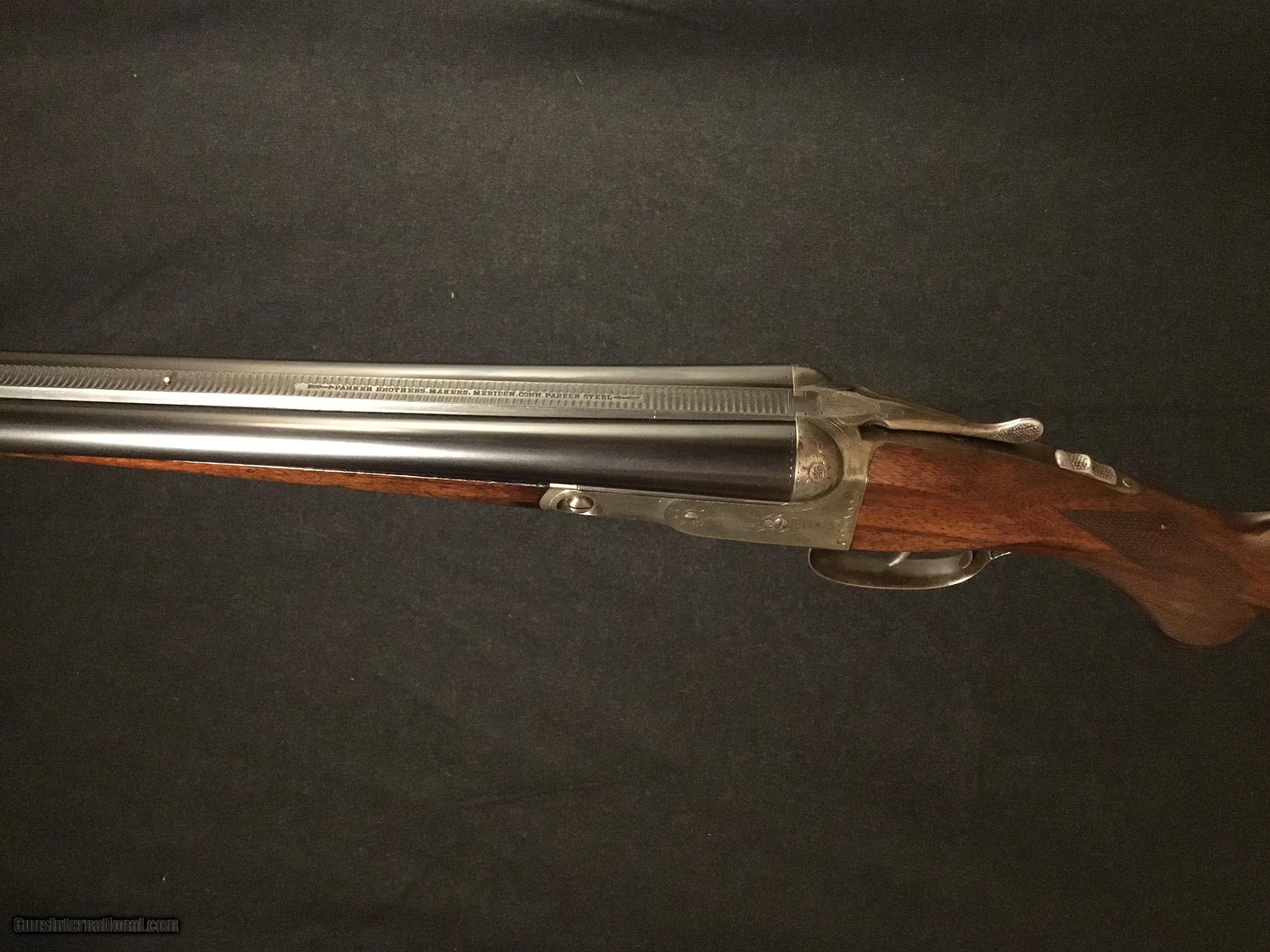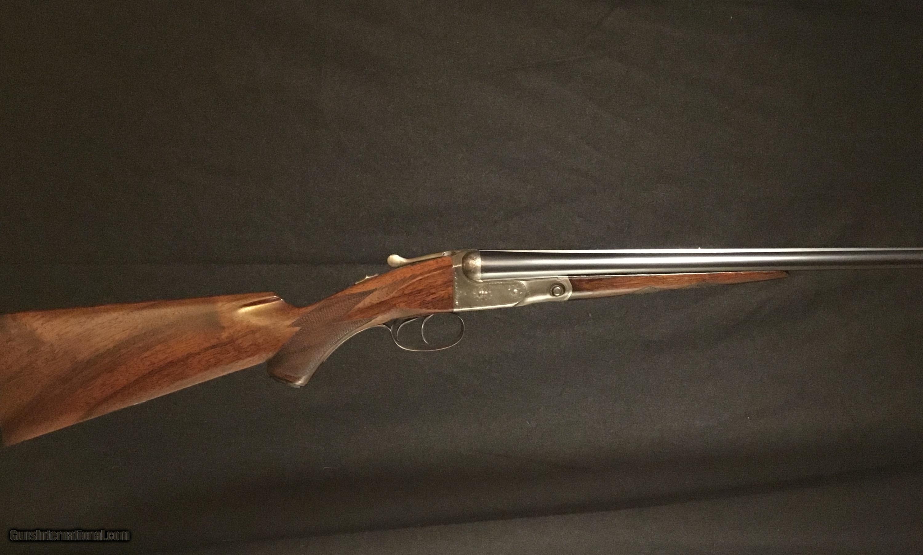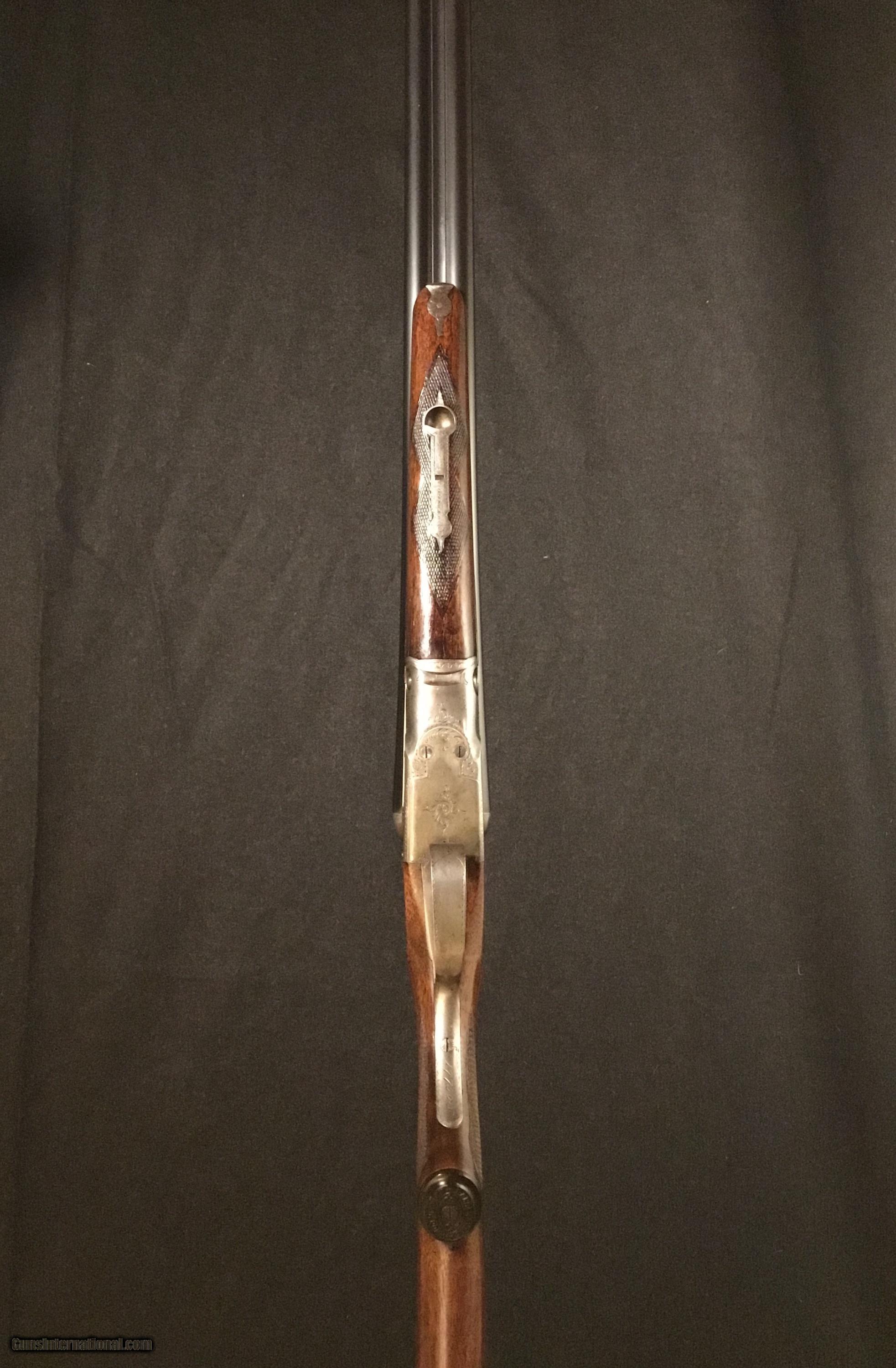 Description: Parker PHE in Rare Fluid Steel Barrels and 20ga. Make: Parker Bros. Model: PHE Gauge: 20 (rare) Action: Boxlock Trigger: Double Choke: .006 (IC), .019 (Imp.Mod.) Chambers: 2 9/16” Barrel Length: 28″ Fluid steel (rare for a P grade) Stock: Pistol Grip, splinter forend Length of Pull: 14 5/8” Drop Comb: 1 7/16” Drop Heel: 2” Cast: Zero Weight: 6lbs 6oz Price: $4,500 "REDUCED" $3,950.00 Additional Info: Less than 100 PHE 20ga. made, s/n 177xxx 1918 made gun, Frame size 0, Ejectors (rare), Bore diameters- .622 both barrels, Wall thickness- .032 both barrels, Twin beads, SOLD Curio/Relic: Yes Rib: Concave |