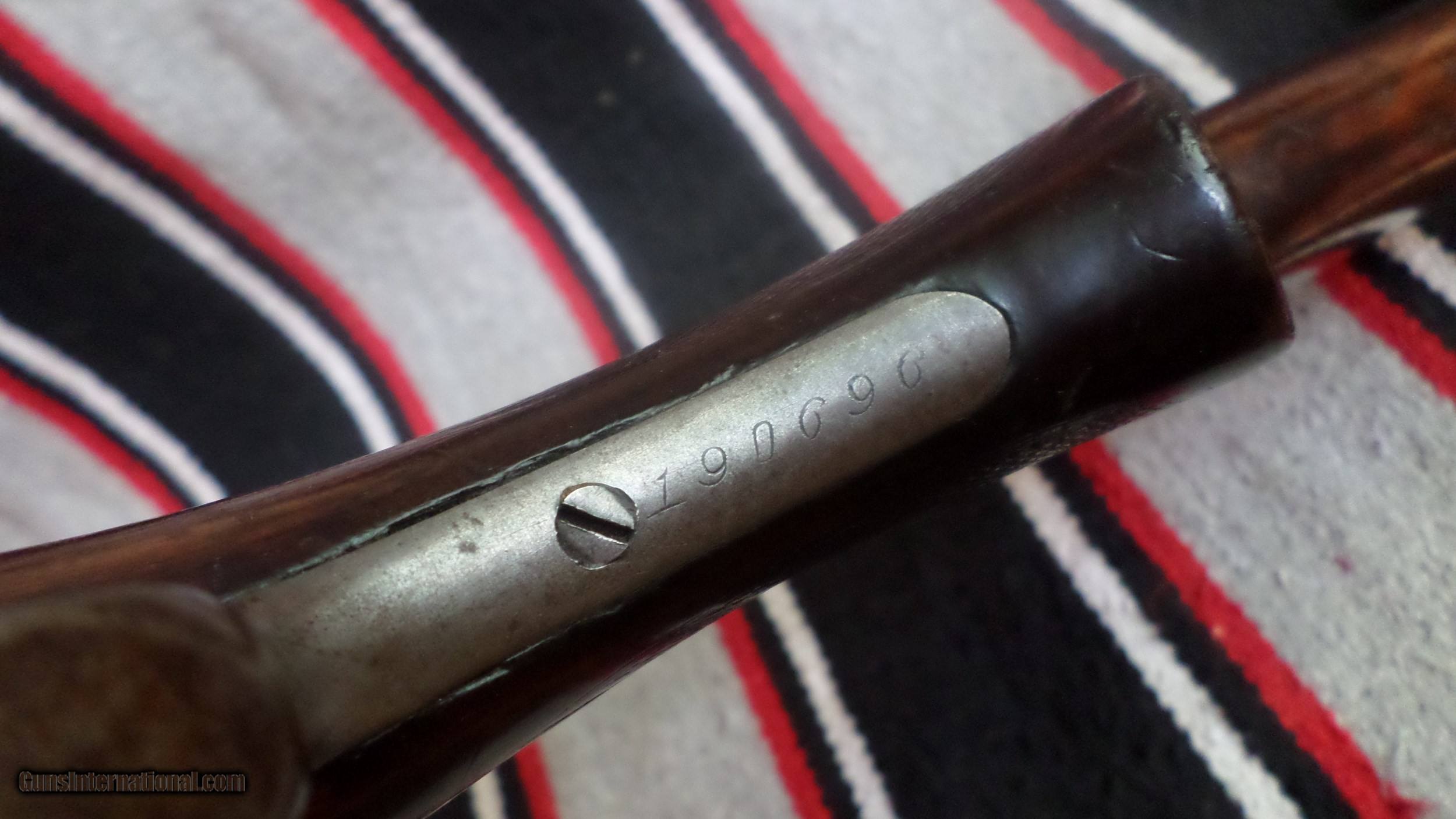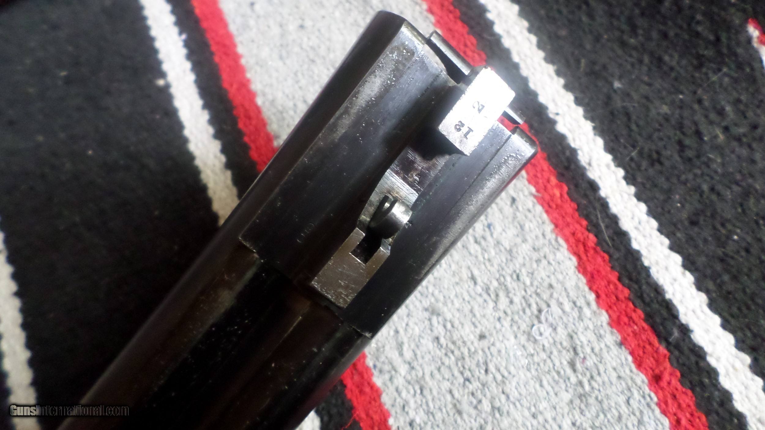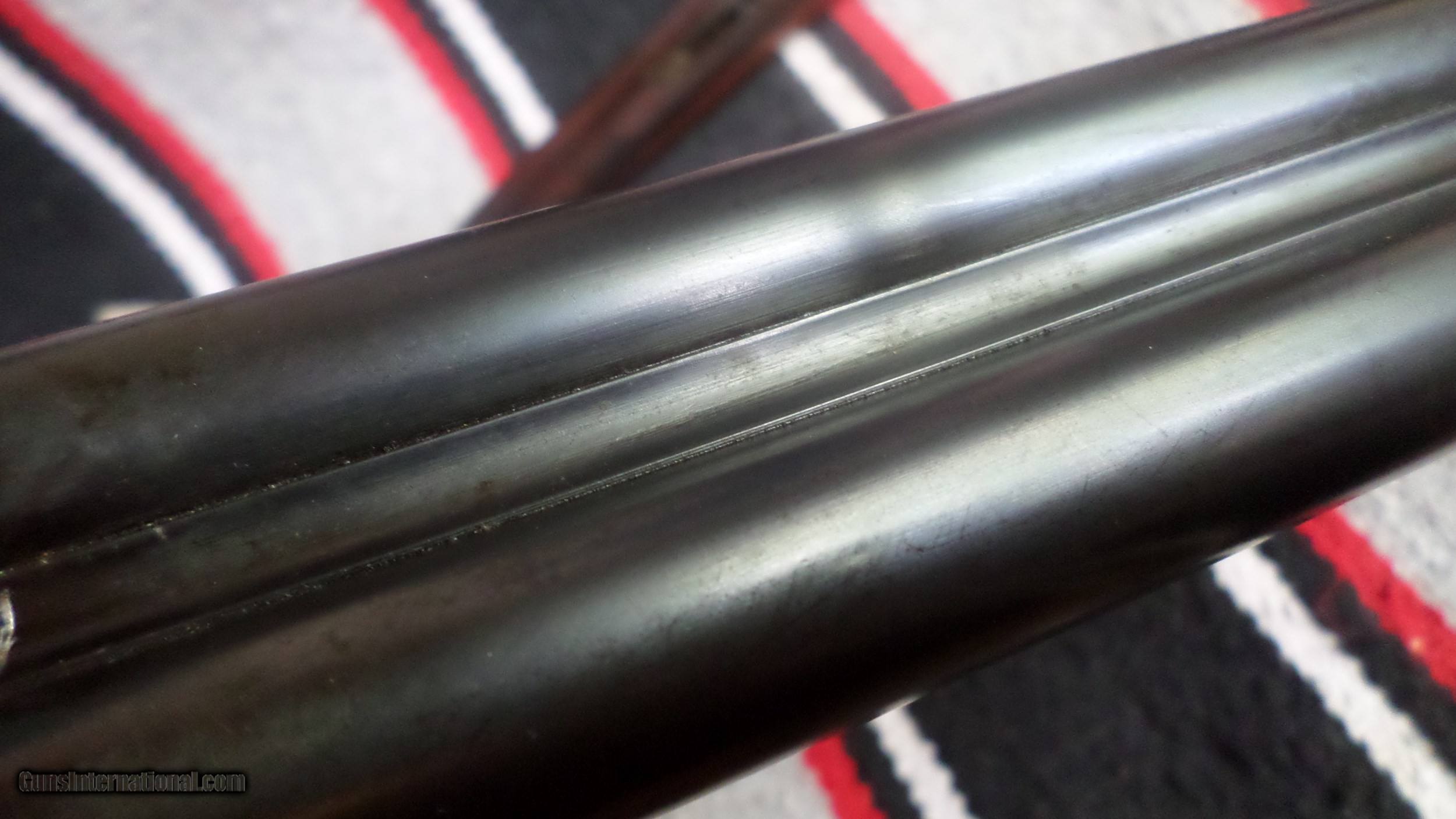 Description: Nice old parker double 12 gauge with 80% original blue and case color. Serial # 190696 circa 1920. An attractive and tight Parker, mechanically excellent. The barrel blue seems to be original and the case color has darkened but bright under the release lever. The wood is good with some dents but strong checkering. Important issues: The butt plate is broken and a chip off the stock at the butt. See pictures. Inside the right barrel, about half way out is a dimple that protrudes externally, about the size off a pencil erasure. In my opinion it is a factory (Trojan) defect and not SAFE to use. (see a qualified gunsmith on these issues) The left barrel is fine, both barrels are shiny, no pitting. These unfortunate issues on this fine gun are reflected in the price. Please ask questions. Buyer pays all shipping. $40 priority mail in the US. C&R OK. SOLD Curio/Relic: Yes |