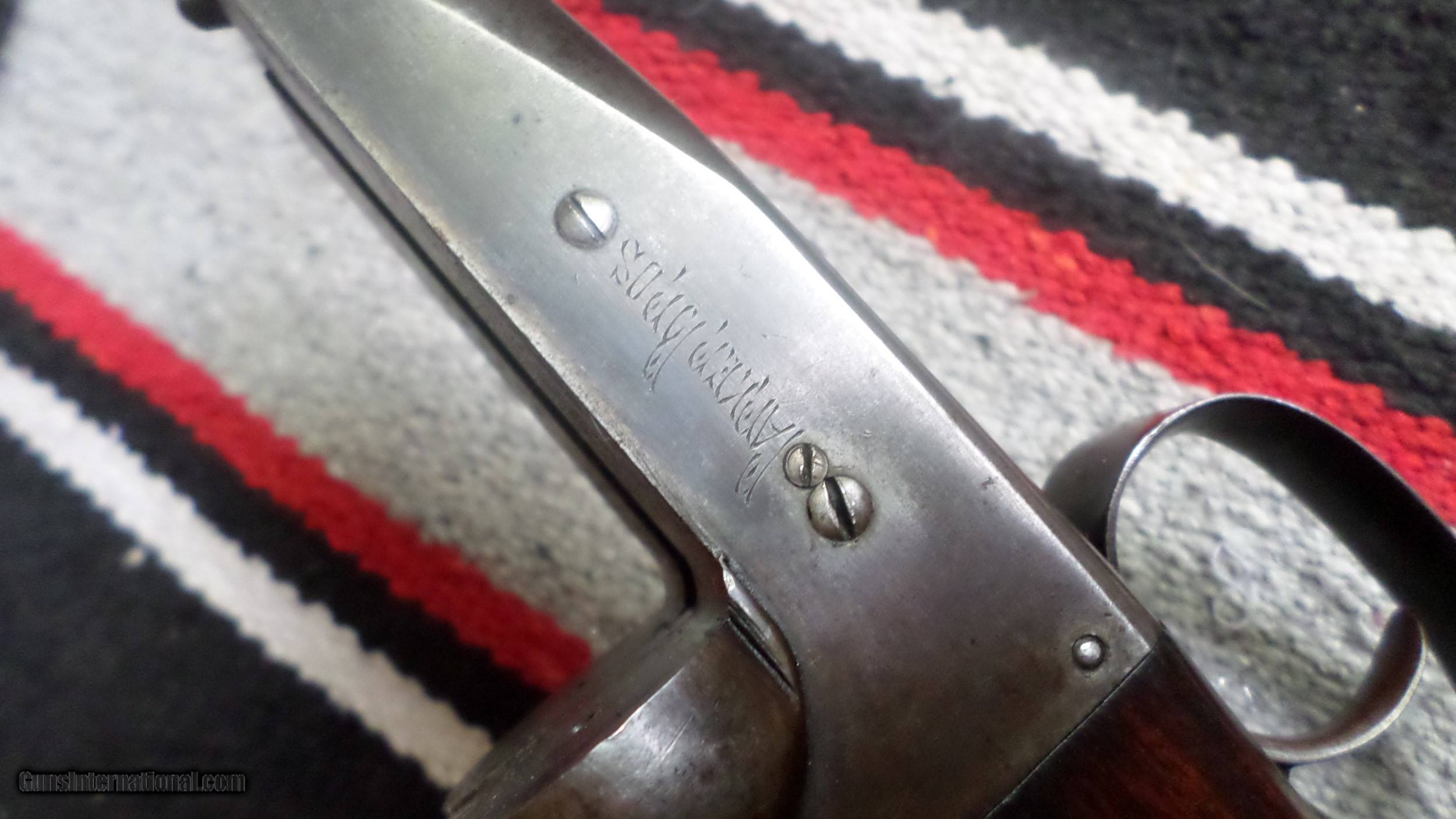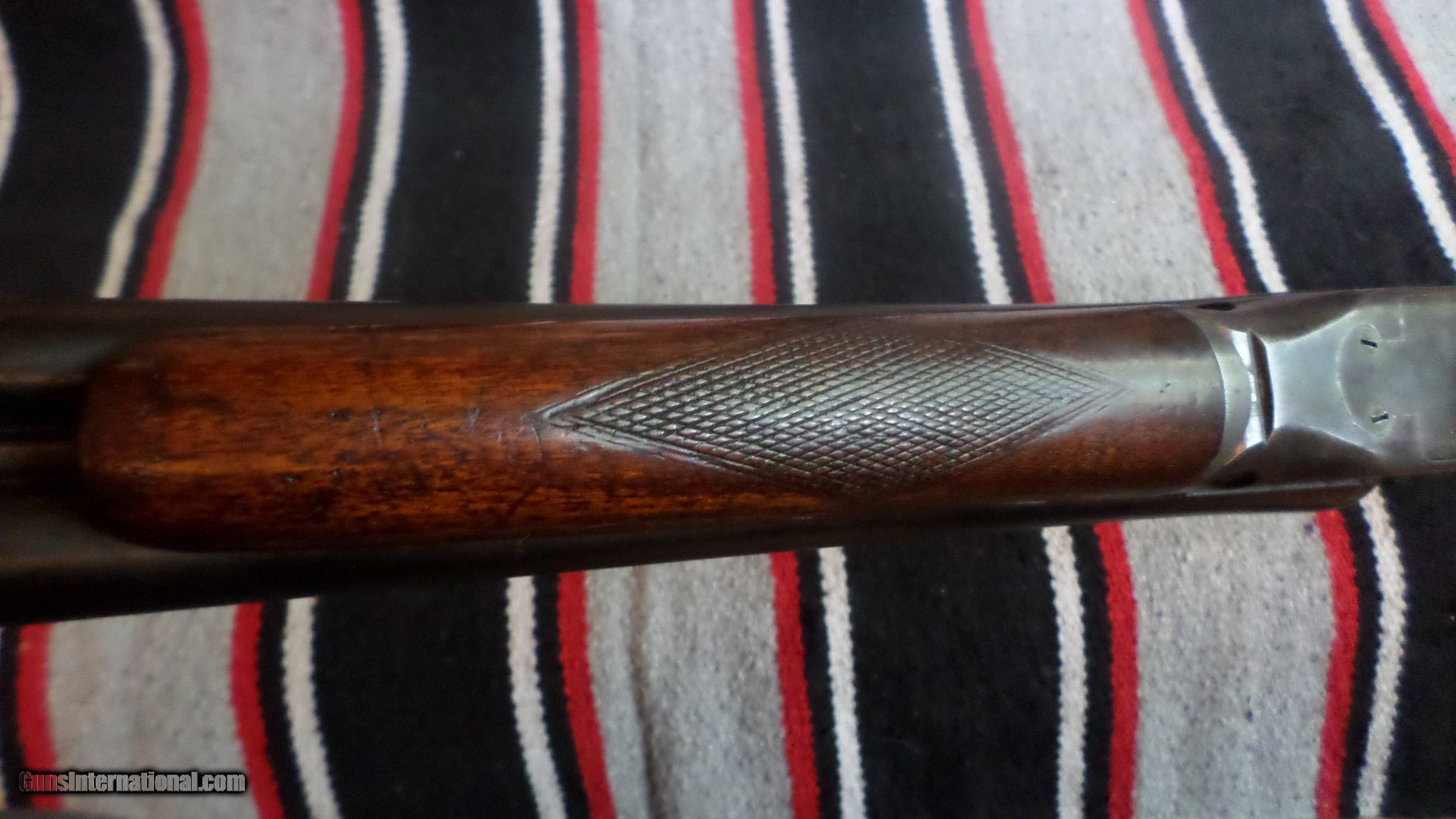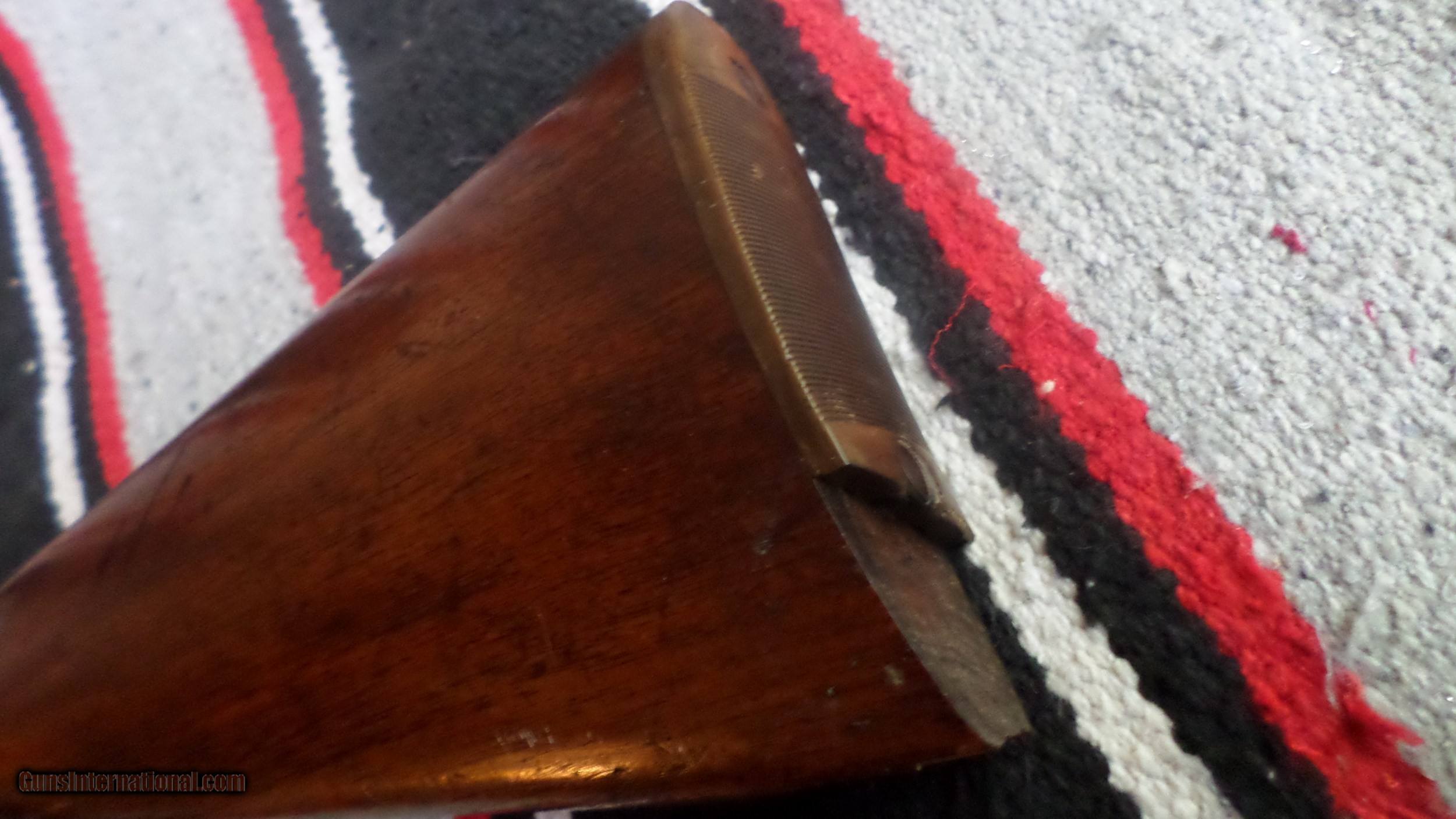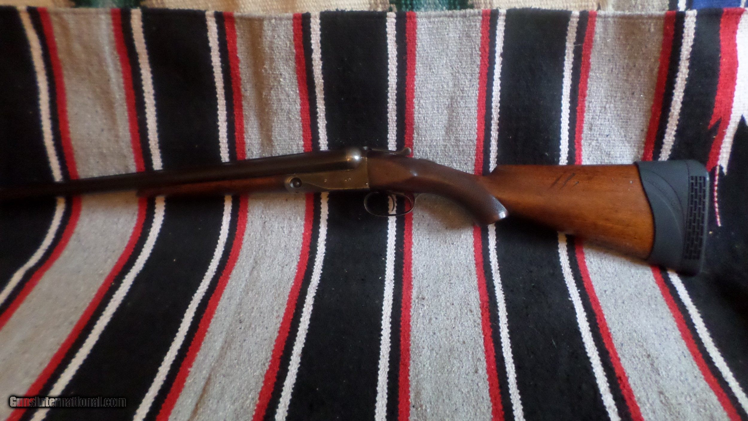 Description: Nice old parker double 12 gauge with 80% original blue and case color. Serial # 190696 circa 1920. An attractive and tight Parker, mechanically excellent. The barrel blue seems to be original and the case color has darkened but bright under the release lever. The wood is good with some dents but strong checkering. Important issues: The butt plate is broken and a chip off the stock at the butt. See pictures. Inside the right barrel, about half way out is a dimple that protrudes externally, about the size off a pencil erasure. In my opinion it is a factory (Trojan) defect and not SAFE to use. (see a qualified gunsmith on these issues) The left barrel is fine, both barrels are shiny, no pitting. These unfortunate issues on this fine gun are reflected in the price. Please ask questions. Buyer pays all shipping. $40 priority mail in the US. C&R OK. SOLD Curio/Relic: Yes |