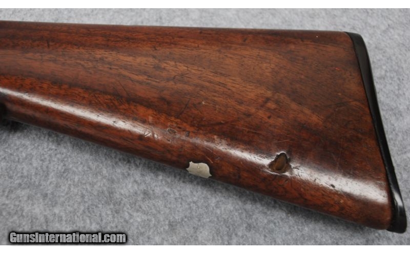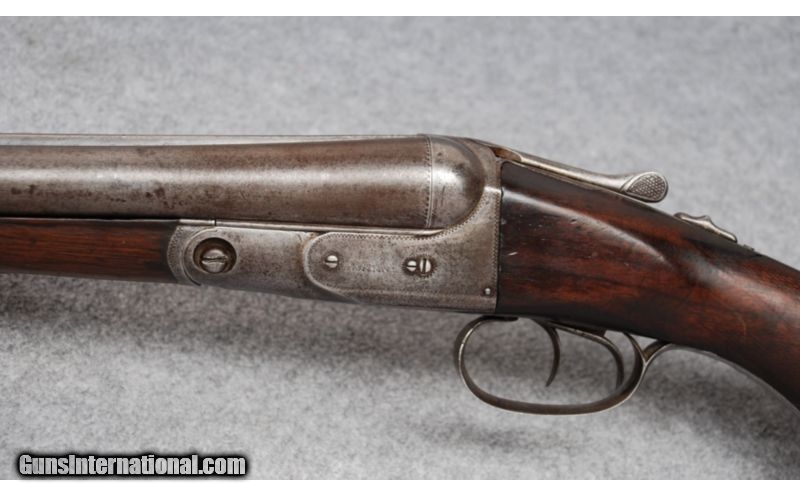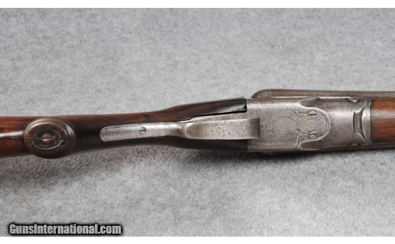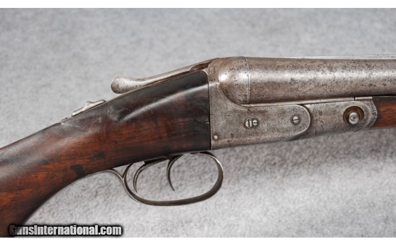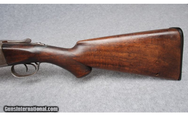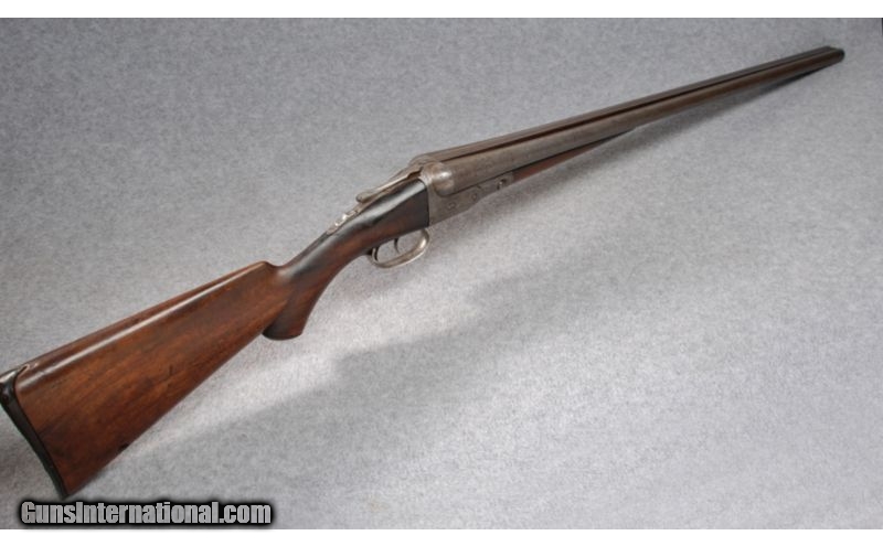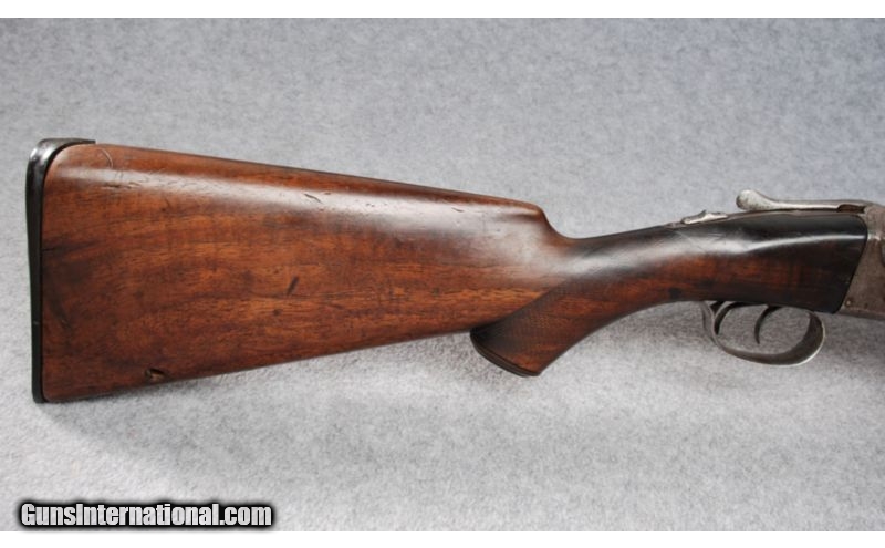 Description: SOLD Curio/Relic: Yes Manufacturer: Circa 1903 Caliber Info: 12 Gauge Chambers: 2 3/4 Metal Condition: Patina with contact and handling marks commensurate with age. Wood Condition: Scratches, contact, and handling marks commensurate with age. Bore Condition: Bright Barrels: 30". Solid rib Vulcan steel. Triggers: Double triggers Stock: Walnut with worn checkering on pistol grip. A hole has been bored through near butt that at one time probably accomodated a sling (pictured). Stock Dimensions: 14 1/4" LOP: 1 3/4" DAC: 2 5/8" DAH. Fore End: Splinter Butt Pad: Original Weight: 7 Lbs. 12 Oz. Sights: Brass bead Chokes: Fixed. Full and Full. Item Location: Billings, MT |
