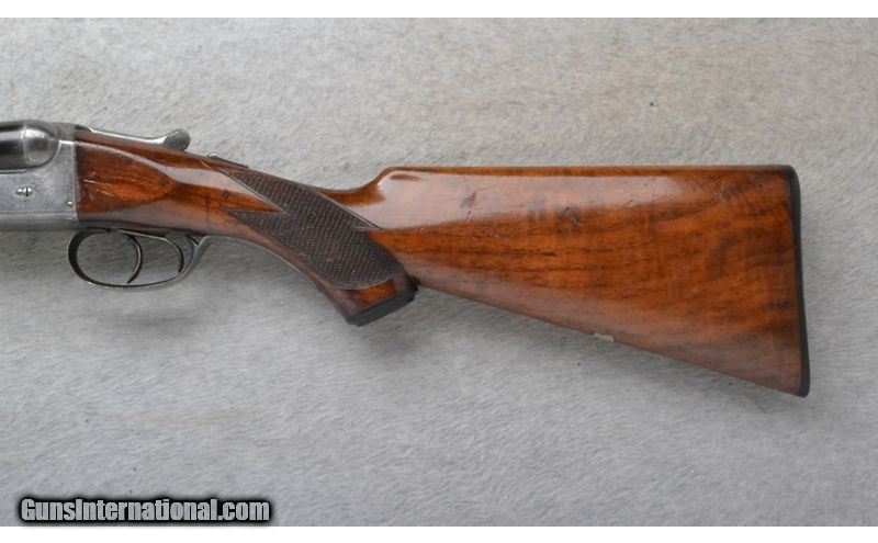 Description: This Parker Bros. Model VH is a side by side shotgun in 12 Ga. It has 28 inch barrels with extractors and a solid rib. A metal bead front sight. With 2 3/4 inch chambers it has fixed Full and Modified chokes. The butt stock is a checkered grip walnut pistol grip with a black cap. The forearm is a checkered grip walnut splinter. It has double triggers. The receiver is border engraved. 12 Gauge SOLD Chambers: 2 3/4 inch. Metal Condition: Fair. Has wear and freckling. Small dent left barrel side above front forearm. Wood Condition: Fair. Has many handling marks. Bore Condition: Bright and shiny. Barrels: 28 inch barrels with extractors and a solid rib. Triggers: Double. Stock Dimensions: LOP 14 inches. Fore End: Checkered grip walnut splinter. Butt Pad: Parker checkered black plate with bird in dog mouth. Weight: 7 lb. 4 oz. Sights: Metal front bead. Chokes: Fixed Full and Modified. Item Location: Richfield, WI |