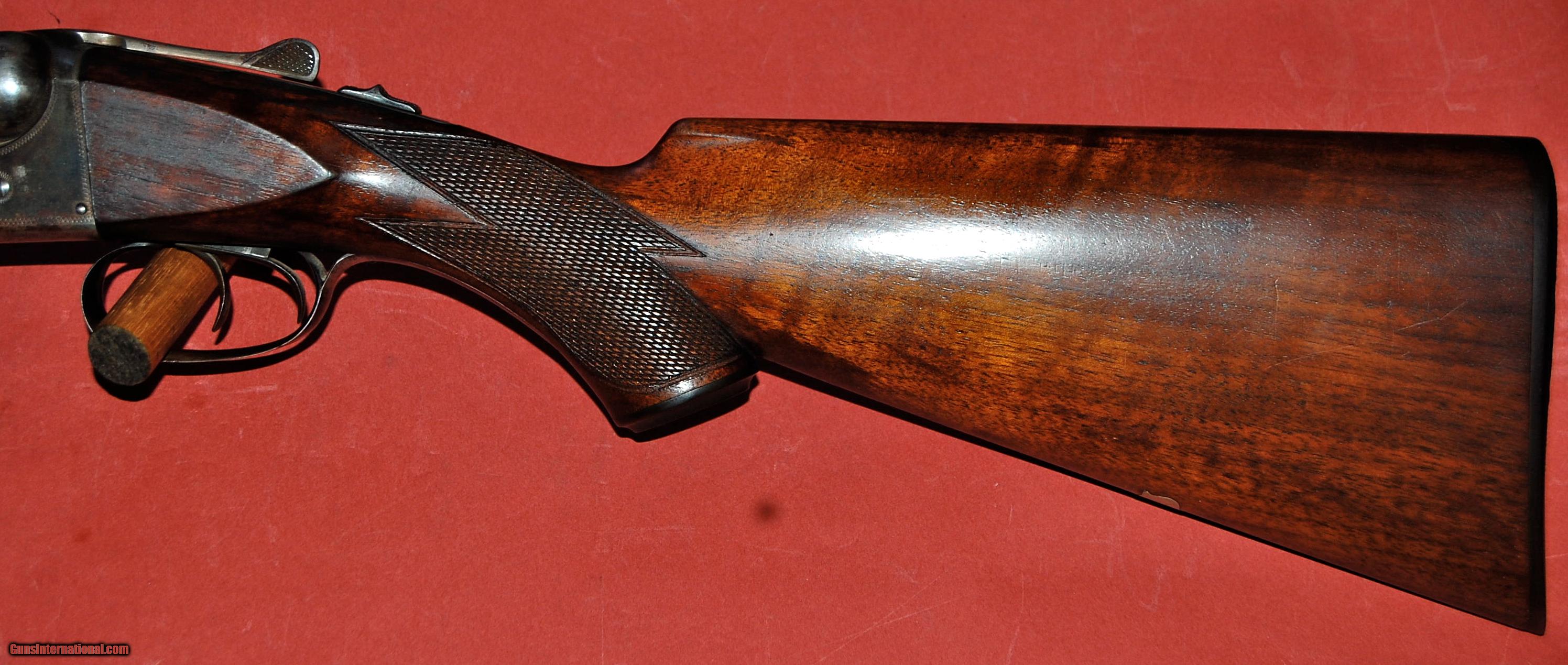 Description: Parker Bros. VH grade 12 gauge built in 1907.This gun has 28" vulcan steel barrels choked improved cylinder (.006") and full (.038").The gun is in excellent all original conditon retaining at least 60% of the original case colors,95% of the original barrel blue and 99% of the original wood finish.The bores are mint and free of rust,dents,or pitting.There is no play in the barrels at all.They lock up like a new gun.The wood is sound with no cracks or damage.The stock still retains the original dog's head buttplate with the early style widows peak inletting.All of the screws are still in time and are clean.It appears that there has never been a screwdriver on the gun.Built on a #2 frame the gun weighs 7-6.This is an honest all original Parker with strong condition and usable chokes.It would make an excellent gun for doves,pheasants.or vintager clays shootinges with a PGCA factory letter.C&r eligible. SOLD Curio/Relic: Yes Manufacturer: Parker Model: VH Serial Number: 140524 Chambers: 23/4 Ejectors: extractors Metal Condition: excellent Wood Condition: excellent Bore Condition: mint Barrel Type: Vulcan steel Action: double barrel Triggers: Double Gauge Info: 12ga Stock Dimensions: 14"x15/8"x27/8 Butt Pad: dog's head buttplate Manufacture Date: 1907 Choke Left: full (.038") Choke Right: IC (.006") |