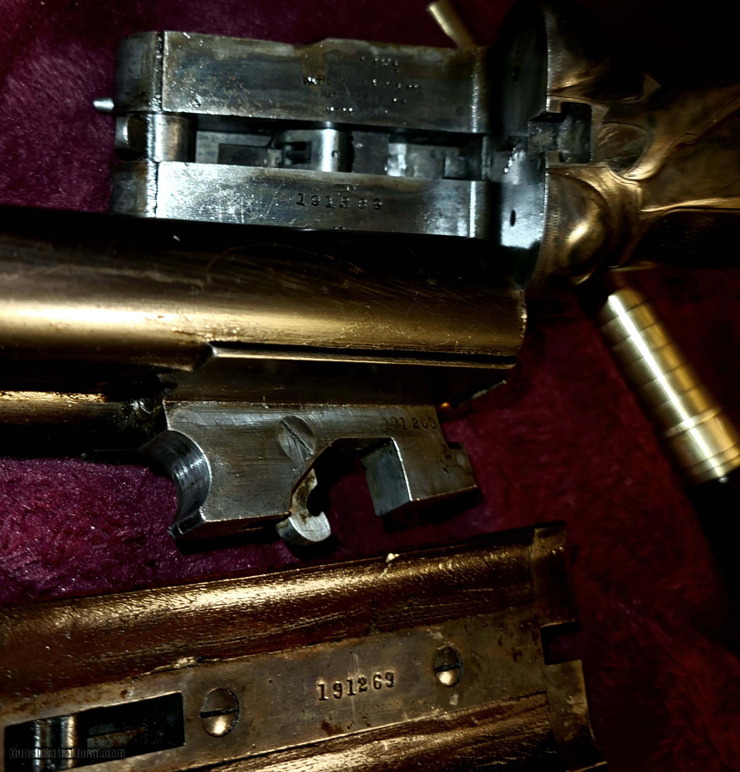 Description: ****SOLD, SOLD to Mark in GA***** This VH shows as a high condition Parker Brothers VH Grade. Serial Number 191,269 dates 1920 in Parker records as a #2 Frame. All numbers matching and factory timed screws as shown. The case hardened colors are still very strong and vivid as is all engraving The inlayed shield in buttstock is still blank. Triggers are crisp and the firing pins are very strong. Wood is in very nice shape for 102 years old. The barrel have no pitting or dents as they ring so true and have mirror bores. Barrels do have light thinning. There are only 2 or 3 few light handling marks in wood and checkering is very nice. The action is tight on face and the thumb latch is well right of center as shown. The overall condition of this gun is very nice and would make a nice example for anyone's collection as an honest 1920 made Parker. Should you select the "Buy Now" festure, please contact us to provide method of payment and your FFL Dealer details. Payment may be made by PayPal, Venmo, Zelle, US Dollar Certified Bank Check. We currently do not accept credit or debit cards. We offer Free Shipping and ask Buyers to Insure each item purchased based on their value at or around .50cents per $100.00. We ship to all 50 states. No foreign transactions are made at this time due to unexpected delays and delivery concerns. We apologize ahead of time for the inconvenience. Our "Buy It Now" price is our asking price. We may also entertain offers on most of our listed items, so simply as by inquiry. Should you have any questions after reviewing all pics,, please feel free to contact us anytime. SOLD Curio/Relic: Yes Manufacturer: Parker Brothers - Price Reduced 05/23/22 Model: VH Serial Number: 191,269 Bore: Mirror and Bright Chambers: 2 3/4in Ejectors: None Condition: Excellent Metal Condition: Excellent Wood Condition: Excellent Bore Condition: Excellent Barrels: Vulcan Steel Barrel Type: Side by Side Action: Break Action Triggers: Double Stock: Well Figured Walnut Stock Dimensions: 14 1/2 inches Stock Comb: 1 1/2 inches Stock Heel: 1 3/4 inches Stock Cast: Neutral for RH or LH shooter Fore End: Splinter Butt Pad: Factory LOP: 14 1/2 inches Rib: Factory Finish: Factory Weight: 6lbs, 12oz Sights: Front Bead, silver Manufacture Date: 1920 Chokes: Fixed Choke Left: Imp Cyl Choke Right: Cylinder Engraving: VH factory Extras: None Case: None Item Location: Georgia |