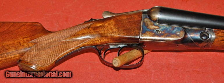 Description: Parker Bros VH grade 12ga.30" barrels choked modified (.015") and full (.035").Pistol grip stockdogs head buttplate,double triggers,extractors.Built on a number 2 frame,this gun weighs 7-10pletely restored to 100% case colors,blue,and wood finish.A great hunting gun or vintager clays gun.Serial number 90941Stock dimensions 14" x 15.8" x 25/8".C&R eligible. SOLD Curio/Relic: Yes |