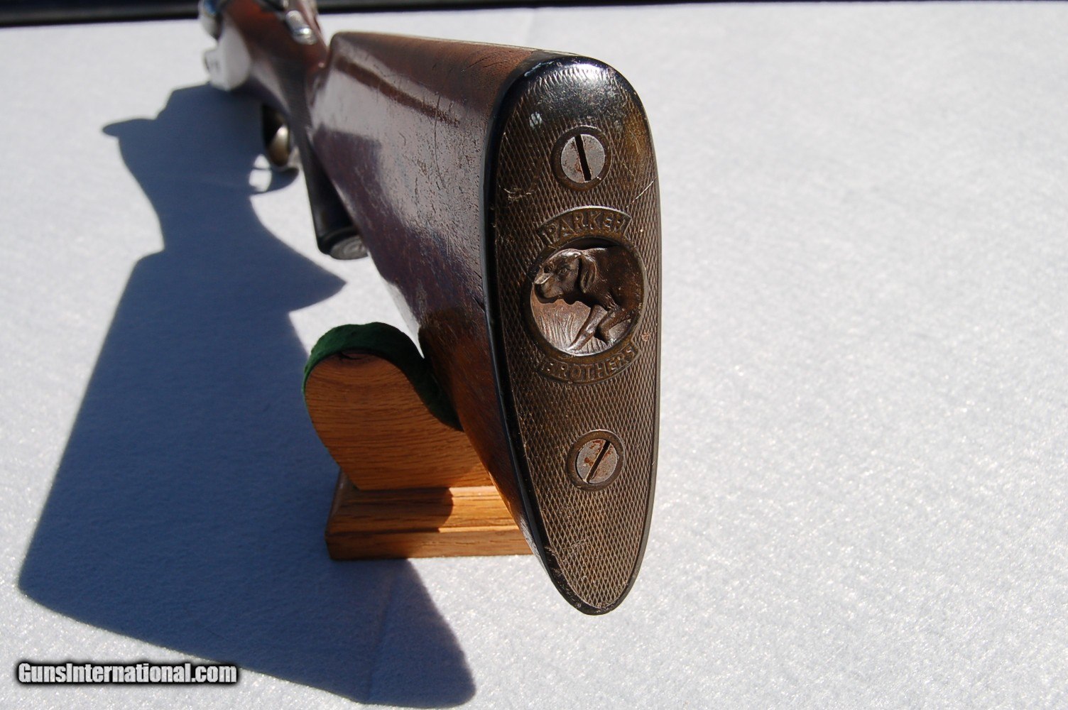 Description: Very Fine Parker Bros. VH on #2 frame with 32" Vulcan Steel barrels. This gun remains in very nice shape with quite a bit of case collor and bluing and wood finish. It has the Parker Dog head buttplate. The gun remains very tight and barrels in near perfect condition in and out. $1850.00 Shipped to your FFL dealer SOLD SOLD Curio/Relic: Yes Shotgun Gauge: 12 Gauge Manufacturer: Parker Bros. Model: VH #2 Frame Serial Number: 208123 Barrel Length: 32 Chambers: 90% Condition: VERY NICE Metal Condition: 85% Wood Condition: 80% Bore Condition: 90% Barrels: Vulcan Steel Action: Box lock Triggers: two Stock: American Walnut Butt Pad: Dogs Head |
