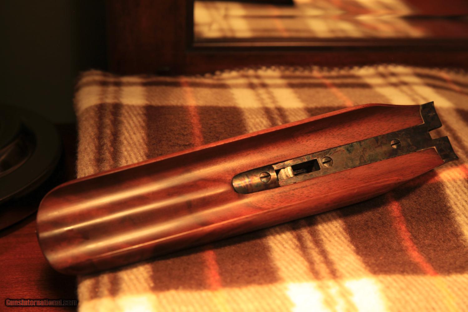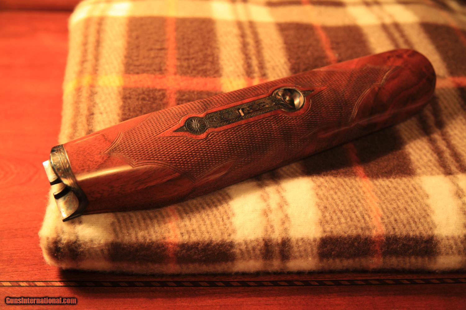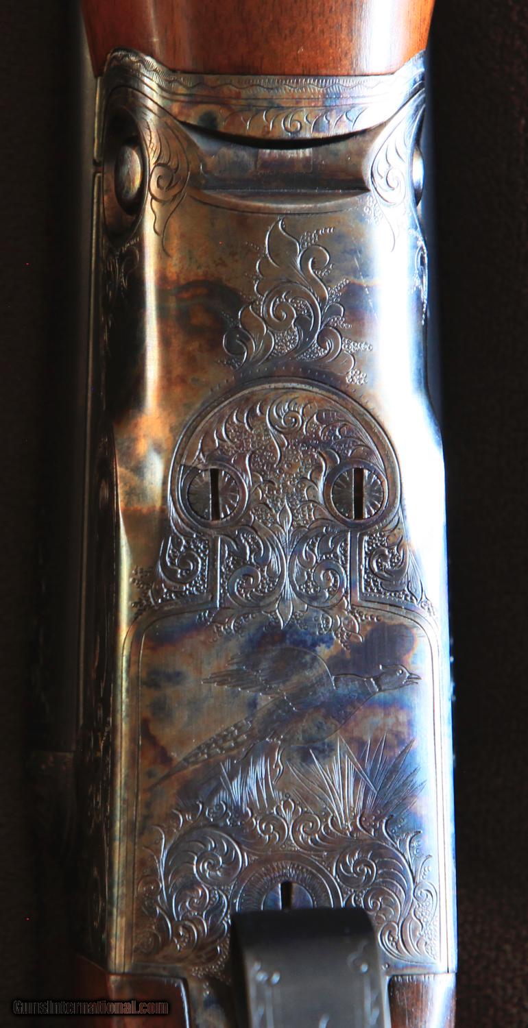 Description: Parker Bros. VH - 20 Gauge - Side by Side Collector Quality Shotgun Serial No. 170564 Model: VH Frame Size: O Trigger: Double Stock: English (Straight) Bore: 20 Gauge Barrel Length: 28" Barrel Material: Vulcan Steel Barrel Weight: 2 lb. 15 oz. Engraving: Hand-engraved game birds with highly detailed scrollwork including owner monogram on gold stock insert Butt Plate: Original Skeleton Butt Plate The beautiful figuring of the stock and the coloration of the metalwork on this 100 year old Parker Bros. 20 gauge make it one of the most stunning guns you'll ever see. The colors present in the wood as the gun is turned to catch the light are a testament to the fineness you would expect of even the highest grades of Parker shotguns. Note the higher grade of stock, including owner monogram on gold insert, and detailed barrel and receiver engravings that make this VH one of a kind and possibly the finest VH 20 gauge on the market. Made in 1915, this gun is as beautiful today as it was the day it left the Parker factory. Approximately 5% of all VH models made by Parker were produced with a straight stock. With 20 gauge, 28" barrels, this "O" frame side by side is ideal for a full day of shooting, though the incredible condition makes it more suited for a collection than to be used as a hunting gun. If you have any questions, please get in touch with me. This is an excellent piece for any collection and would make a wonderful gift! Note from Seller: I am not a gun dealer, and you are not paying any type of dealer mark-up. I purchased this shotgun for my own personal collection more than 25 years ago and I hope to pass it on to someone who can appreciate its beauty and status as an American icon for many years to come. I am listing two other Parker shotguns from my collection and would love to see them all go to the same home. Please let me know if you are interested in buying any of the other three guns individually or as a set. SOLD Curio/Relic: Yes Manufacturer: Parker Bros. Model: VH Serial Number: 170564 |