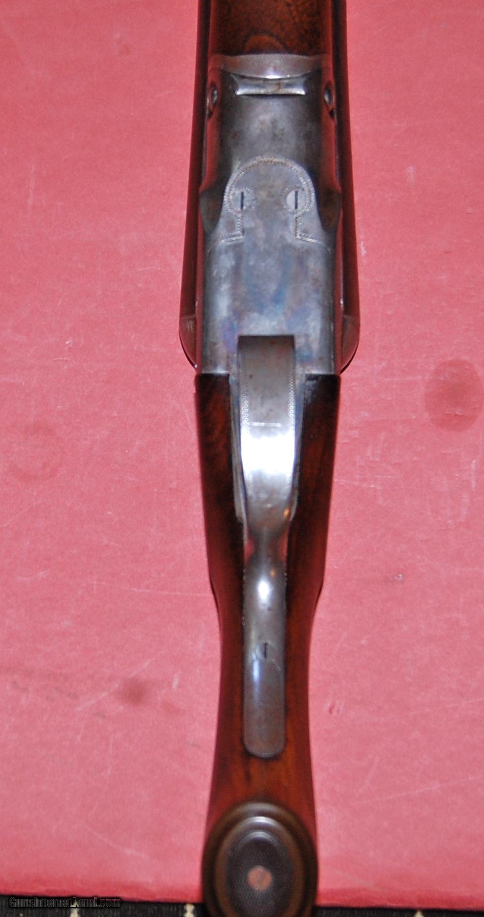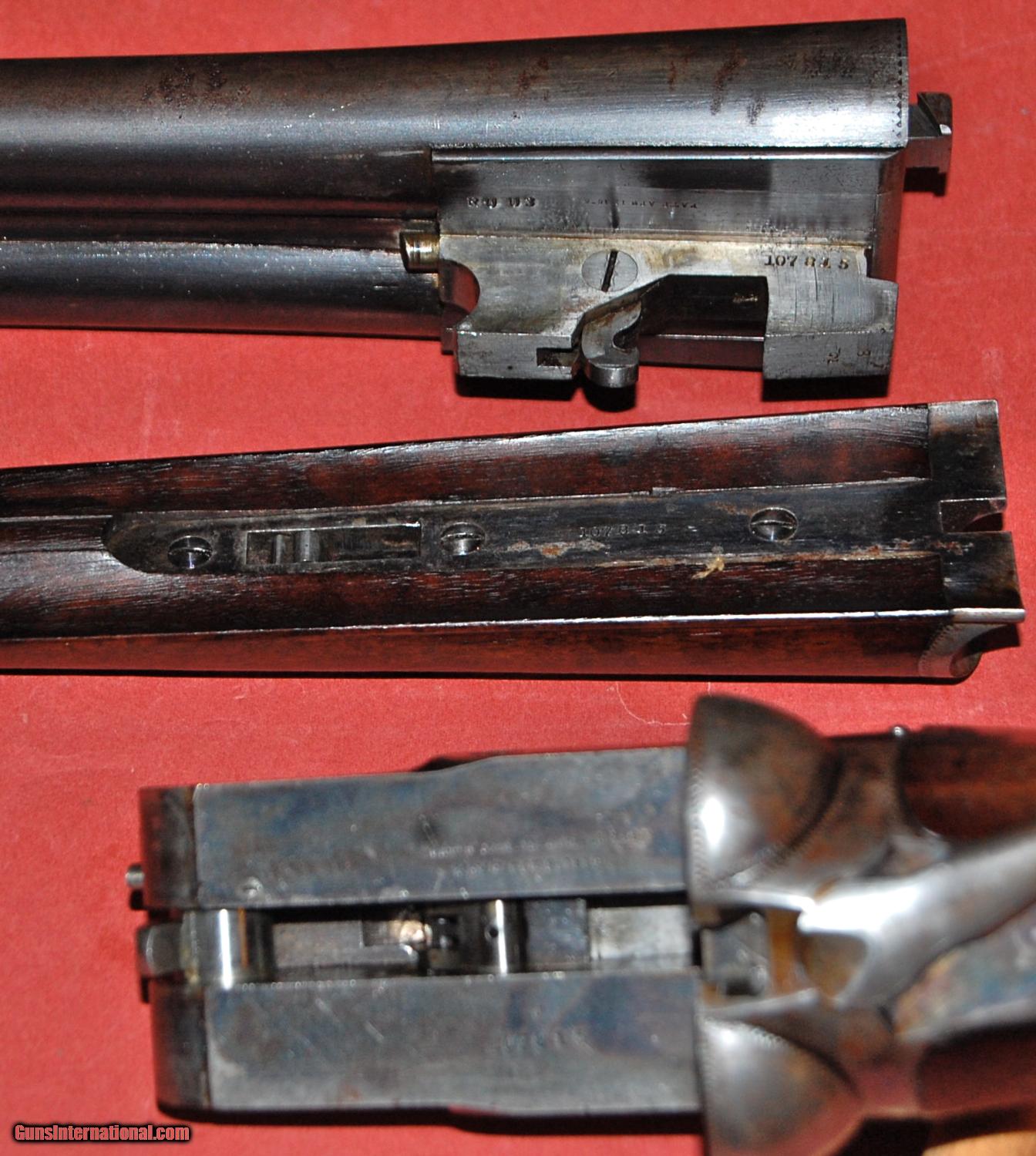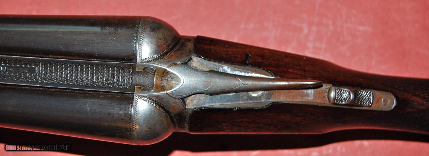 Description: Parker Bros. 12ga VH grade.Built on a #2 frame,this gun has 30" Vulcan steel barrels choked full (.038") and full (.038").It has a pistol grip stock,double triggers,extractors,and a splinter forend.The stock retains the original dogs head buttplate and the original grip cap.The wood is very sound with no cracks or damage.The action retains traces of the original case colors in the exposed areas and lots of vivid color in the protected areas.The barrels retain around 85% of the original blue.The bores are excellent with no rust or pits.The action has one small surface rust spot on the left side of the action that is 1/8".The screws are all clean and in time.It appears that no one has ever opened up the action.The barrels are tight and on face and they lock up very tight to the action.The top lever is slightly to the right of center as it should be.A classic Parker that would make an excellent hunting gun or a clays gun for vintage shoots.C&R eligible. SOLD Curio/Relic: Yes Manufacturer: Parker Model: VH Serial Number: 107815 Chambers: 23/4 Condition: used Bore Condition: excellent Barrels: 30 Gauge Info: 12 Stock Drop: 23/4 Stock Comb: 13/4 LOP: 141/4 Weight: 7-8 Chokes: full/full |