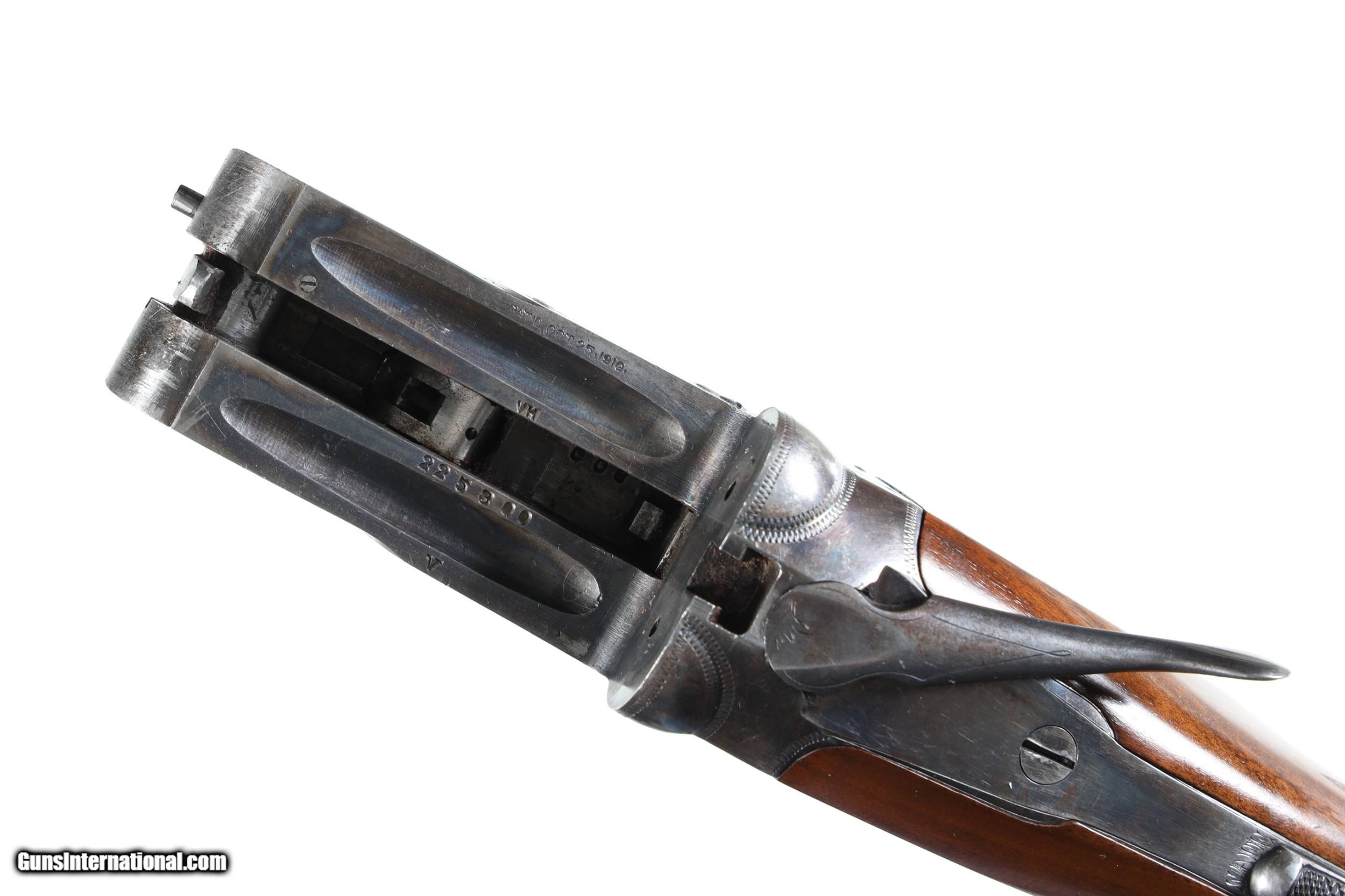 Description: Manufactured in 1928 on the desirable 000 frame, 2 1/2 inch chambers with single extractor, and choke constrictions of .010/.009 inches (modified/modified). The above configuration is confirmed on page 564 of "Parker Gun Identification and Serialization" by Price and Fjestad. According to the chart on page 258 of "The Parker Story" by Gunther, Mullins, Parker, Price, and Cote, only 463 guns were ever built with this combination of barrel length and gauge, making this quite a rare gun. Stock measurements: 1 3/8 inch drop at comb; 2 1/4 inch drop at heel; 14 3/8 inch length of pull; weight 6 lbs 2 oz. SOLD Curio/Relic: Yes Manufacturer: Parker Bros. Model: VH Serial Number: 225800 Barrel Length: 26 |