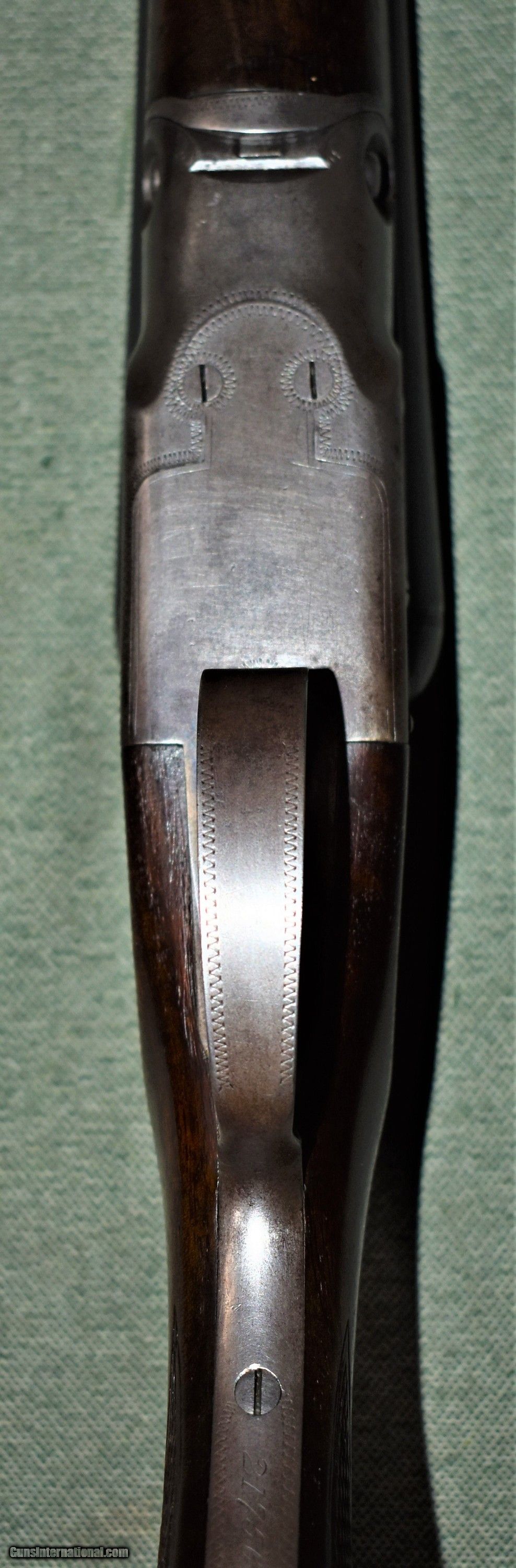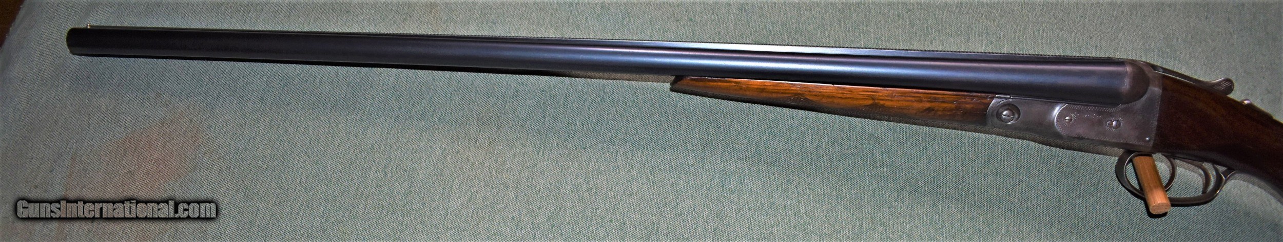 Description: Parker Bros. 16 gauge VHE grade built in 1926. This gun is in excellent original condition. It retains 40%of the original case color, 95%of the original barrel blue,and 95% of the original wood finish. The gun has 28" Vulcan steel barrels choked improved modified (.023") and full (.032"). The bores are mint and free of any rust or dents. The ejectors are timed and strong. The stock and forend are free of cracks or damage. The stock retains the original dogs head buttplate. The barrels are on face and lock up tightly with the top lever slightly to the right. built on a #1 frame,the gun weighs 6-4. The stock dimensions are 141/4"x11/2"x25/8". A great all around Parker for the collector or shooter. Comes with a leather leg-o-mutton case. C&R eligible. SOLD Curio/Relic: Yes Shotgun Gauge: 16 Gauge Manufacturer: Parker Bros. Model: VHE Serial Number: 217568 Barrel Length: 28 Chambers: 25/8 Ejectors: yes Condition: Excellent Metal Condition: Excellent Wood Condition: Excellent Bore Condition: mint Barrel Type: Vulcan Steel Action: Double Barrel Triggers: doauble Stock Dimensions: 141/4"x11/2"x25/8 Fore End: Splinter Butt Pad: Dogs Head Buttplate Weight: 6-4 Manufacture Date: 1926 Choke Left: Full (.032") Choke Right: IM (.023") |