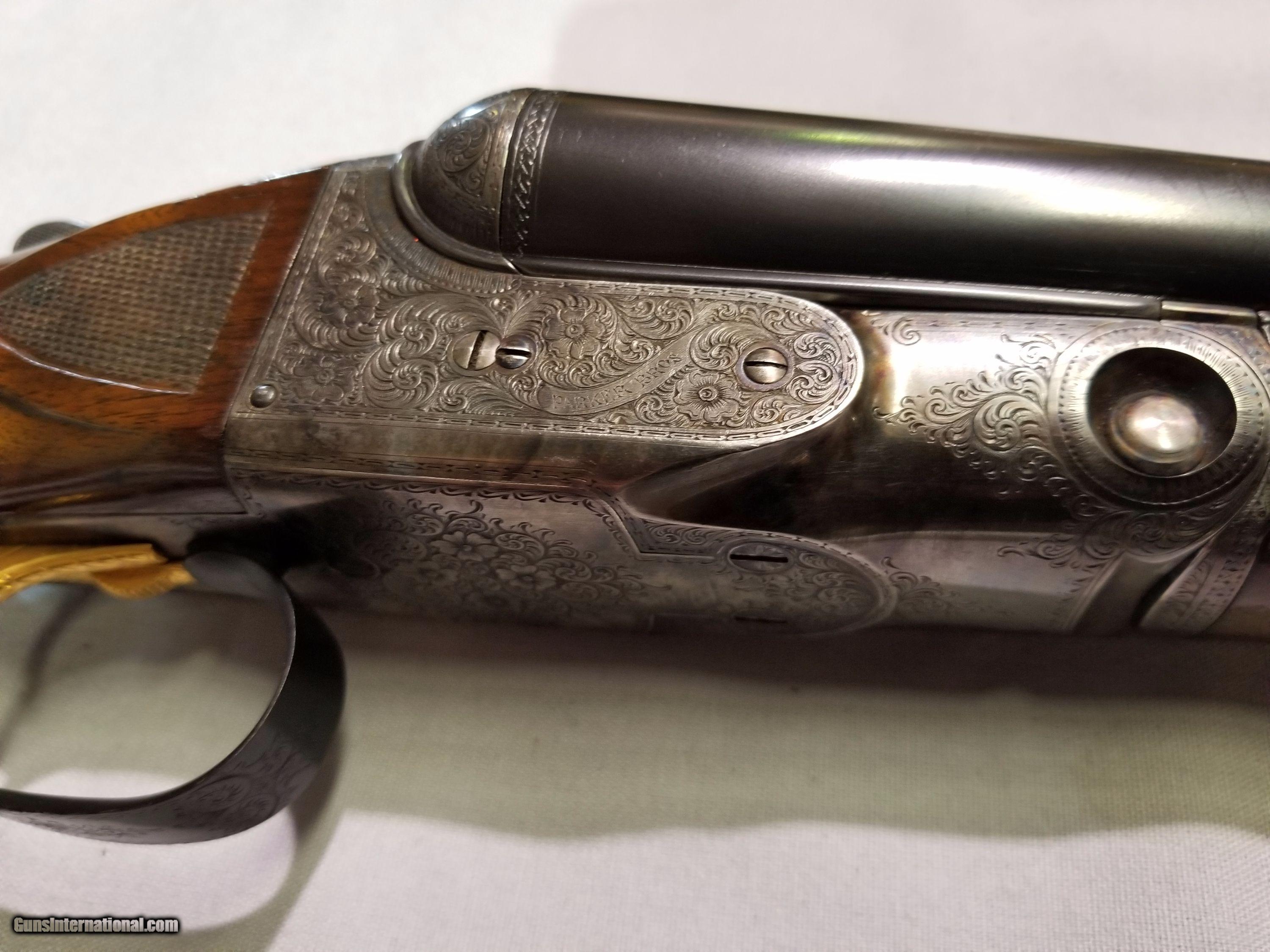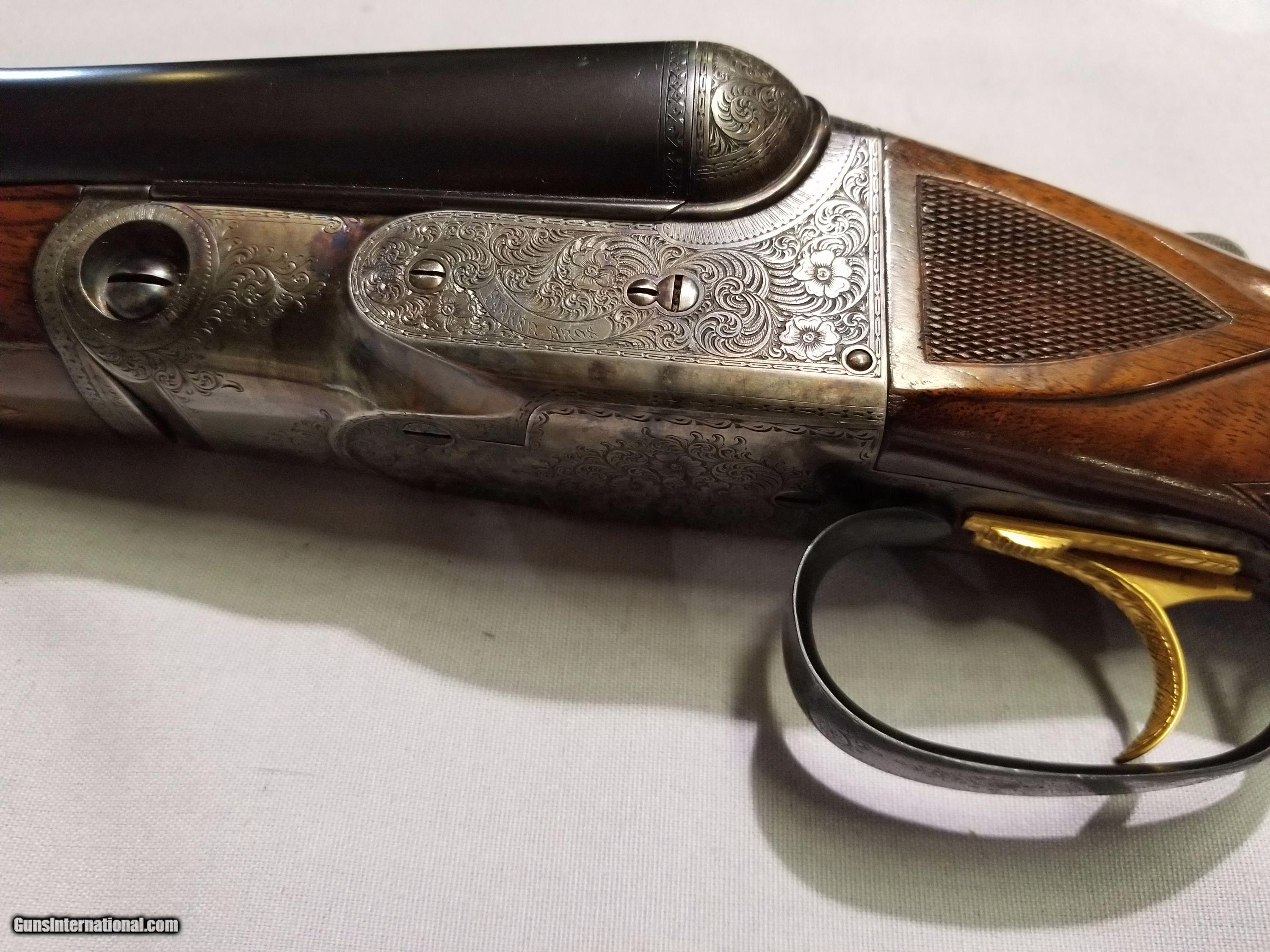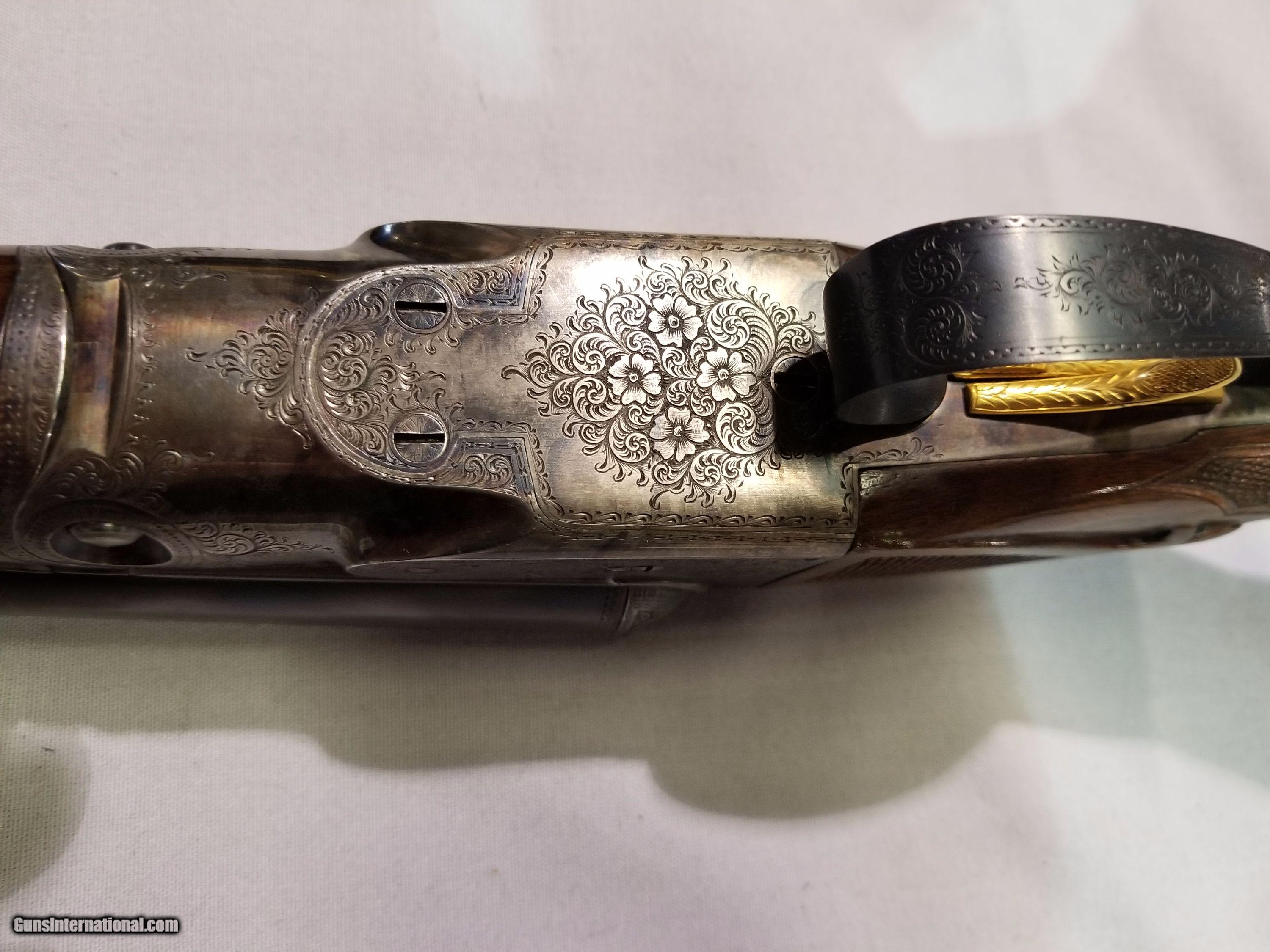 Description: Parker Bros BHE 12Ga., 30" Acme steel m&f,DT, SST, AE, pistol grip with gold cap, Skeleton Butt. Beautiful Wood, ALL SCROLL VARIATION. Gun has been Beautifully re finished. Ex condition throughout. Lots Of C/C. Gun is on a #2 frame, perfect balance, 7lbs 14oz. Lop14&1/2"×1&1/2"×2&1/4". EXC $11,500. SOLD Curio/Relic: Yes Manufacturer: Parker bros Model: BHE Serial Number: 130577 Bore: 12ga. Chambers: 2&3/4 Ejectors: Yes Condition: Exc Metal Condition: Exc Wood Condition: Exc Bore Condition: Exc Barrels: Acme steel Barrel Type: Solid rib Action: Box lock Triggers: Double Gauge Info: 12 Stock: Original Stock Dimensions: 14 & 1/2x 11/2× 2 1/4 Stock Cast: Neutral Fore End: Splinter Butt Pad: Skeleton steel Finish: Exc Weight: 7lbs 14oz Sights: Dual ivory Manufacture Date: About 1912 Choke Left: F Choke Right: Mod Engraving: Scroll variation Case: No Item Location: Arizona Proof:Nitro: Yes |