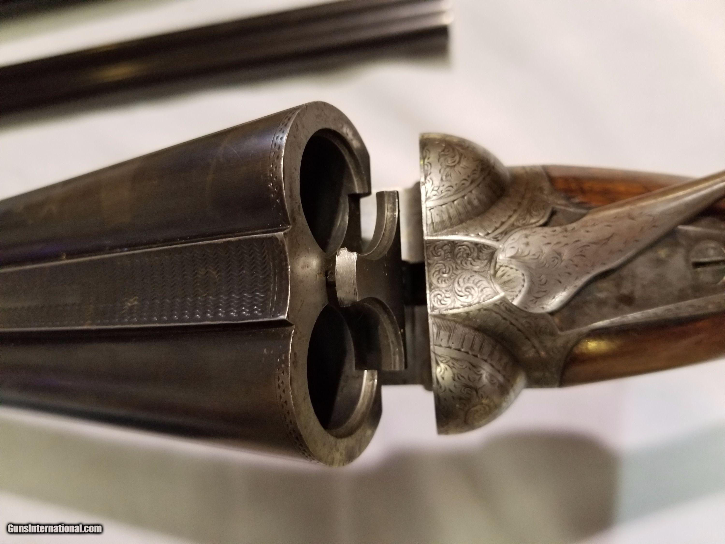 Description: One of 2 known graded Parker guns made WITHOUT DOLLS HEAD. This gun is a DH grade 12 ga. Serial # 110275 is 30" F&F, 2&3/4", straight grip, splinter FE, DT, hawkins pad, #2 Frame. Approx 8lbs. Gun is all Original with traces of color. Original Titanic steel Bbls have anout 60% orig blue. G-vg $12,000.00. 14&5/8"×1&1/2"×2&3/8" SOLD Curio/Relic: Yes Manufacturer: Parker bros Model: DH Serial Number: 110275 Bore: 12ga. Chambers: 2&3/4 Ejectors: No Condition: VG Metal Condition: VG Wood Condition: Good Bore Condition: VG Barrels: Titanic steel Barrel Type: Fluid steel Action: Box lock Triggers: Double Stock Dimensions: 14 & 5/8" x 1& 1/2"× 2& 3/8 Stock Cast: Neutral Fore End: Splinter Butt Pad: Yes Hawkins Rib: Matted Finish: Original Weight: 8lbs 2oz Sights: Single bead Manufacture Date: About 1906 Choke Left: F Choke Right: F Engraving: D grade Extras: Made without Dolls head Case: No Item Location: Arizona Proof:Nitro: Yes |