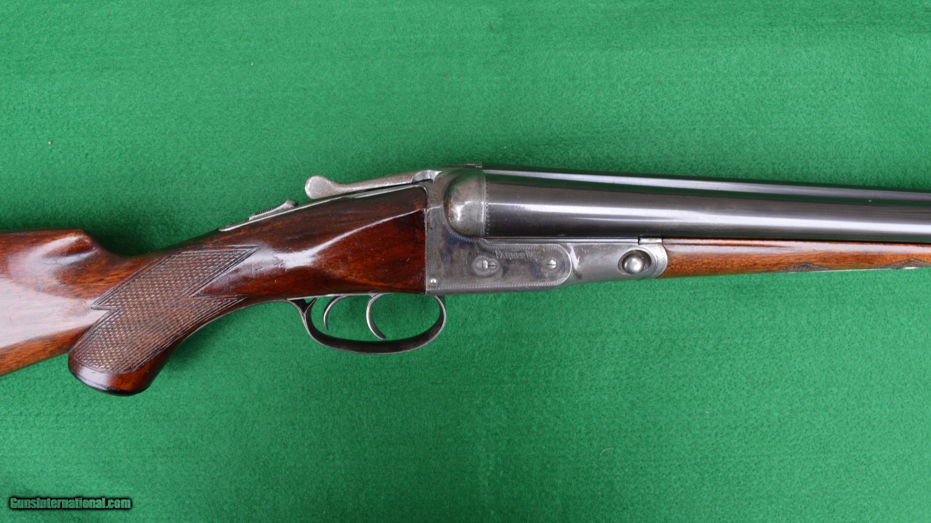 Description: This high condition Parker Brothers 16-gauge VH was manufactured in 1925. As shown in the pictures, this gun retains substantial original case color. The 28” Vulcan Steel barrels are choked Improved Light Modified (.012) and Modified (.018). The gun, which is on a number 1 frame, weighs 6 lbs. 7 oz. The barrels have no pitting, dents, or scratches, and the bores are bright. The wall thickness (top/side/bottom) for the right barrel at 9” from muzzle is 026/.025/.023 and at the middle of the barrel is .028/.028/.026; the left barrel is .029/.028/.025 and .032/.032/.029, respectively. Bores 9” from the breech are both .665 inches. Chambers are 2-5/8 inch. Length of pull is 14-1/4 inches. The drop at the comb is 1-1/2 inches and at the heel 2-1/2 inches. The stock is reconditioned by removing the oil finish, drawing out accumulated petroleum-based oils, and restoring the natural oils through the application of a hand-rubbed stock-oil finish. The wood is in excellent condition, both the exterior and the interior of the stock head. The gun locks up tight and on face. All serial numbers, 207355, match. The listed price of the gun does not include shipping costs paid by buyer. The inspection period is 7 days from receipt. This shotgun has been fired on a numerous of occasions. However, as for any vintage shotgun almost a hundred years old, it is recommended that the new owner have it inspected by his or her gunsmith before firing. The gun carries a 30-day warranty during which seller will have any mechanical problems documented by a professional gunsmith repaired or accept the return of the gun and refund the price of the gun and the return shipping cost. Please do not hesitate to call with questions Steve at Doublegun Preservation, LLC (703-625-4830). SOLD Curio/Relic: Yes |